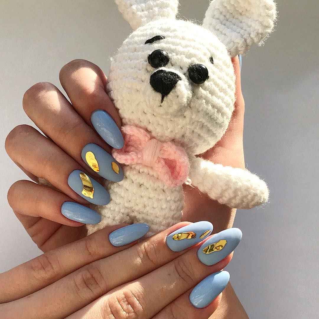 Для создания нежного, легкого образа прекрасно подойдет нежный голубой маникюр. Он уместен для ногтей любой длины – коротких и длинных, а также форм – от квадрата до стилета.