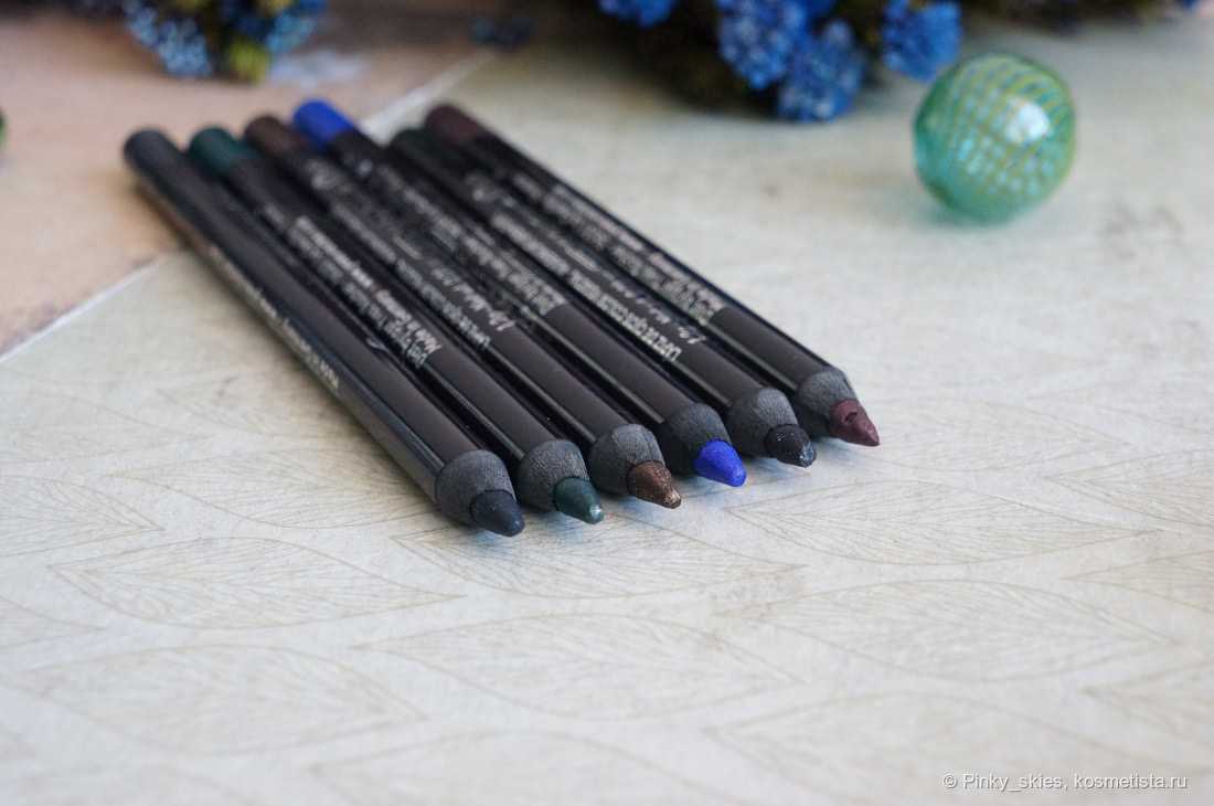 Итак, чем же так примечательны эти карандаши? Во-первых, у них действительно мягкая кремовая текстура, что позволяет использовать их не только для подводки верхнего и нижнего века, но и в качестве подложки под тени. Несмотря на наличие шиммера в большинстве карандашей, он абсолютно не чувствуется на глазах, а грифель буквально скользит по веку. Во-вторых, это пигментированные цвета — с одного касания и без усилий получается ровная и насыщенная линия.