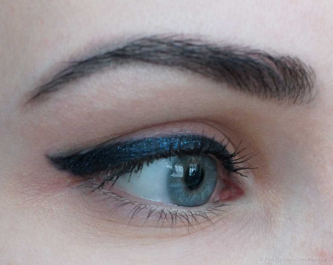 При близком знакомстве у меня было полное ощущение, что я рисую стрелки обычным маркером: первый слой получился полупрозрачным и полосился. Чтобы линия стала однородного черного цвета, пришлось пройтись по ней несколько раз — в итоге все получилось, но времени я потратила много. Еще перед макияжем я воспользовалась праймером для век, чтобы убрать лишнюю жирность с кожи. Даже несмотря на это, подводка размазывалась и постоянно отпечатывалась на веке — мне приходилось подправлять снова и снова. Но плюс того, что она очень долго сохла, в том, что неудачно нарисованная стрелка стиралась в два счета обычной ватной палочкой без мицеллярной воды.