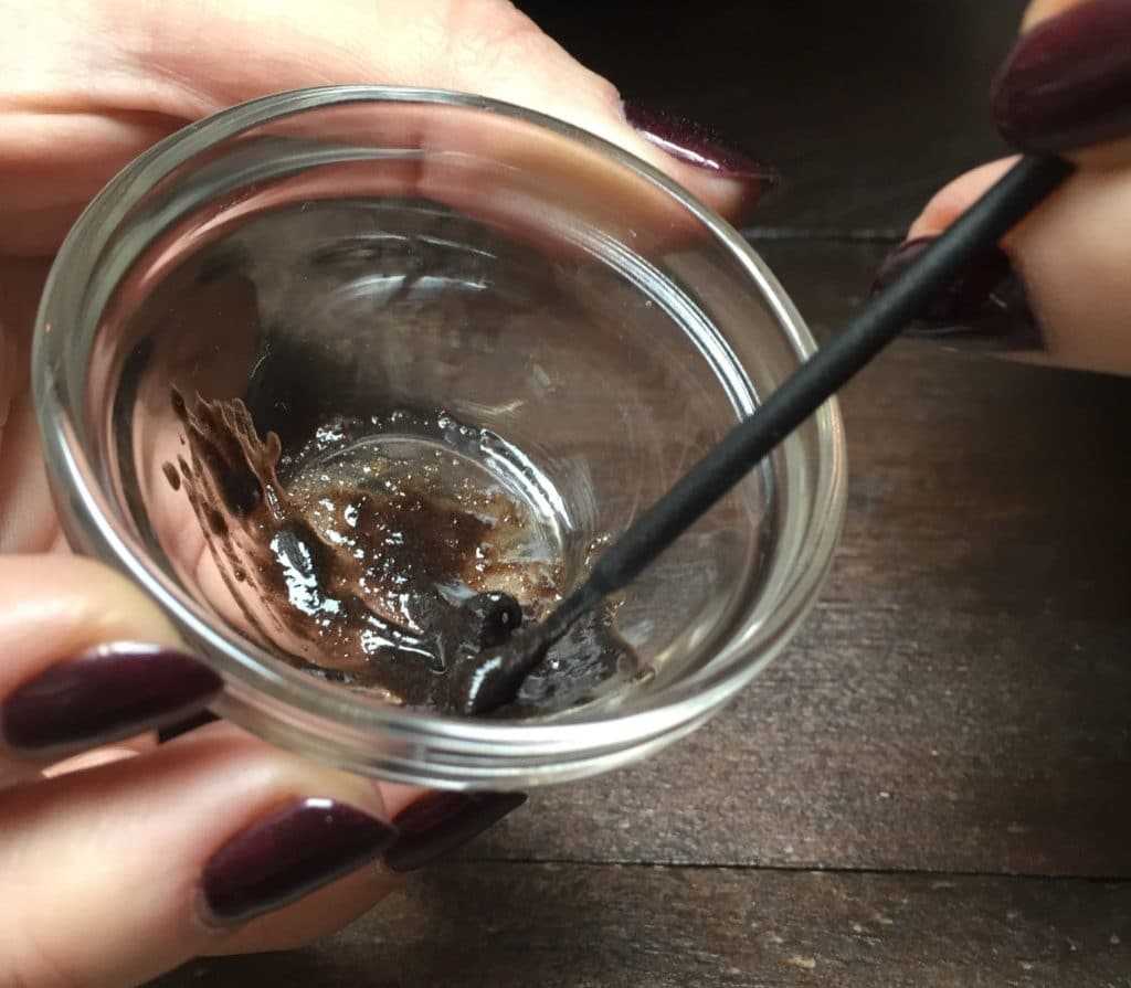 Чайную ложку порошка хны нужно смешать с водой или лимонным соком и перемешивать до тех пор, пока смесь не станет однородной. Должна получиться гладкая паста без комочков и пузырьков воздуха. Она ни в коем случае не должна быть слишком жидкой, иначе есть риск получить желтовато-зеленый цвет. Консистенция должна напоминать густую сметану. Пасте нужно некоторое время настояться, минимум час, а лучше оставить на ночь. Для приготовления пасты из хны ни в коем случае нельзя использовать металлическую посуду – только стеклянную или керамическую. Пластиковую использовать можно, но будьте готовы к тому, что отмыть ее уже не удастся.
