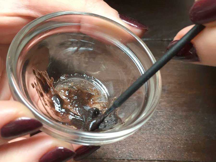 Чайную ложку порошка хны нужно смешать с водой или лимонным соком и перемешивать до тех пор, пока смесь не станет однородной. Должна получиться гладкая паста без комочков и пузырьков воздуха. Она ни в коем случае не должна быть слишком жидкой, иначе есть риск получить желтовато-зеленый цвет. Консистенция должна напоминать густую сметану. Пасте нужно некоторое время настояться, минимум час, а лучше оставить на ночь. Для приготовления пасты из хны ни в коем случае нельзя использовать металлическую посуду – только стеклянную или керамическую. Пластиковую использовать можно, но будьте готовы к тому, что отмыть ее уже не удастся.