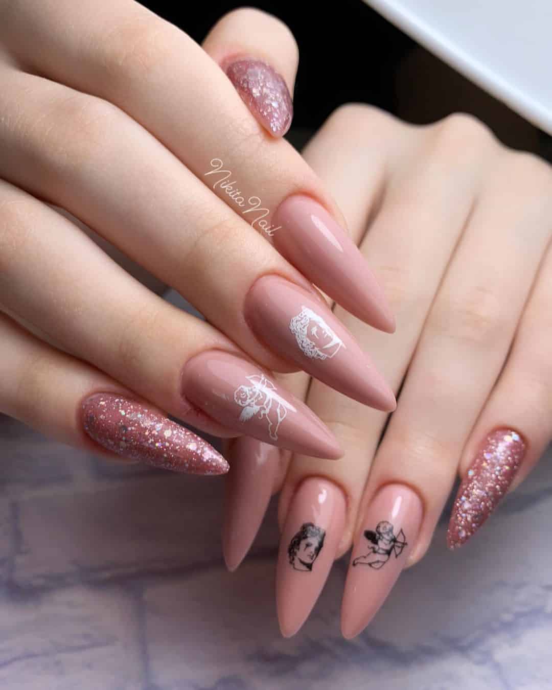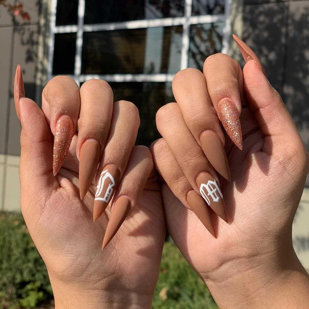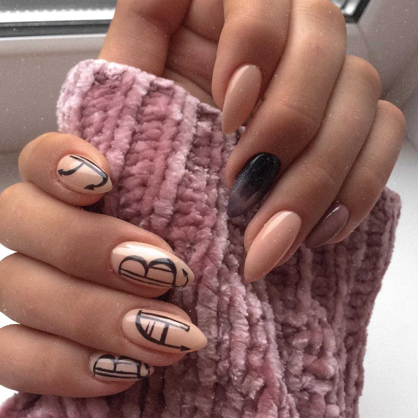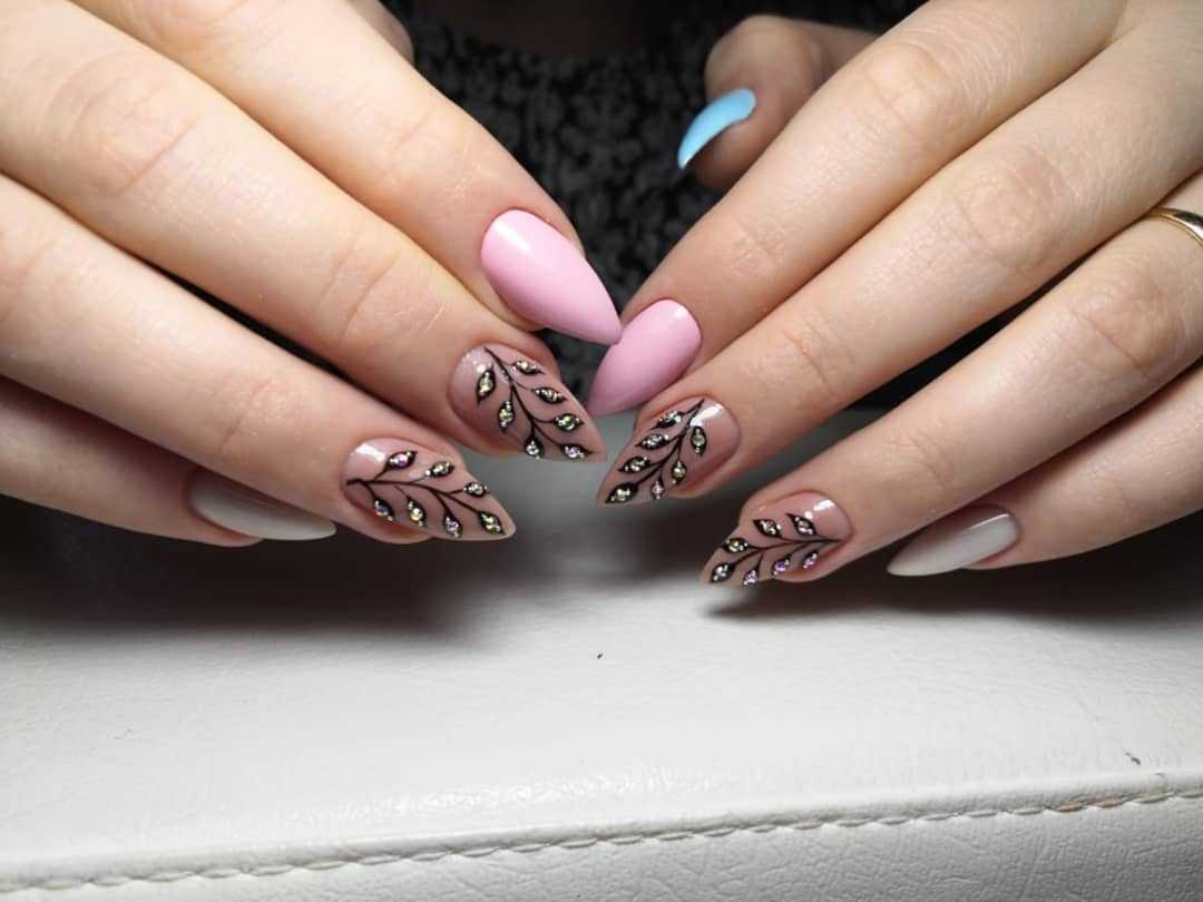 Маникюр на острые ногти 2022-2023 года с дизайном: рисунки и принты
