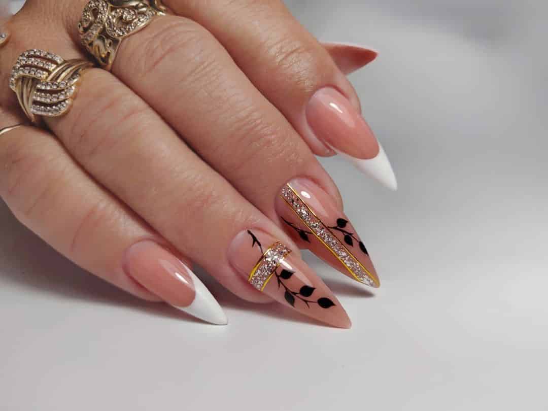 Острые ногти 2022-2023 с маникюром в традиционной стилистике