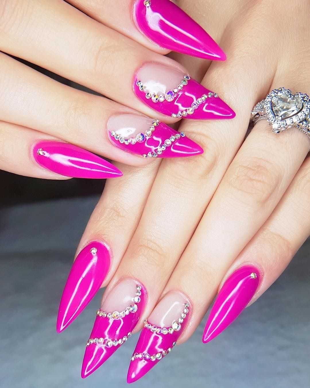 Выбирая дизайн острых нарощенных ногтей, помните, что от правильного стиля зависит ваш образ в целом. Слишком яркие тона лака и большое количество украшений не подойдут под спортивный стиль. Тогда как к вечернему они будут в самый раз.
