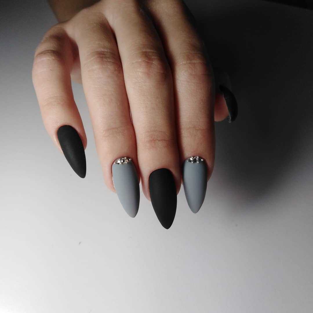 Бархатный матовый острый дизайн ногтей будет соревноваться по актуальности с монохромным глянцем, ведь и первый и второй тип интересен для того или иного случая.
