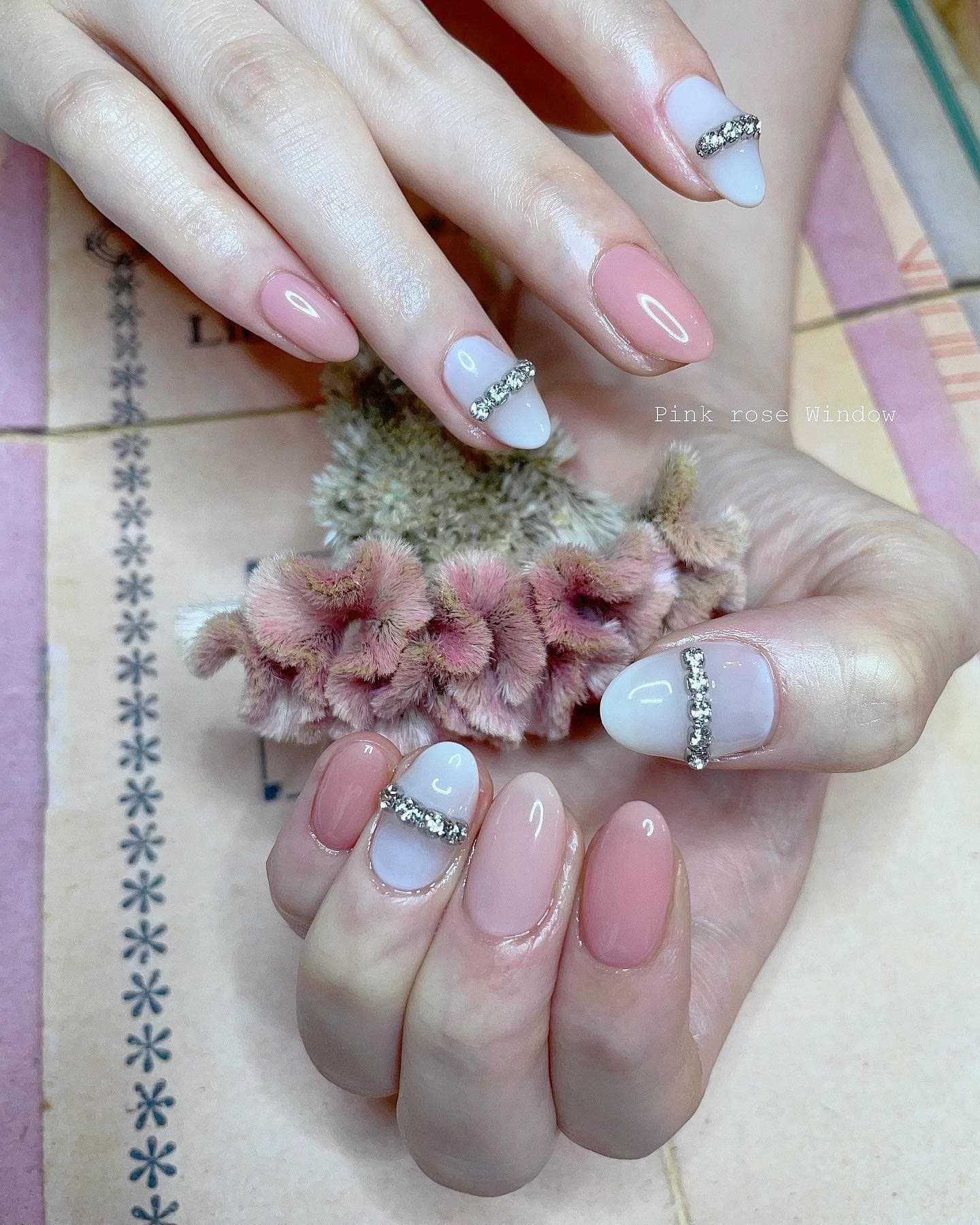 Для ногтей бледных оттенков можно добавить украшения в виде стразов, цветочных узоров, линий, посыпки или перламутра. Красивые однотонные оттенки, совпадающие с цветом кожи максимально зрительно удлиняют пальцы.