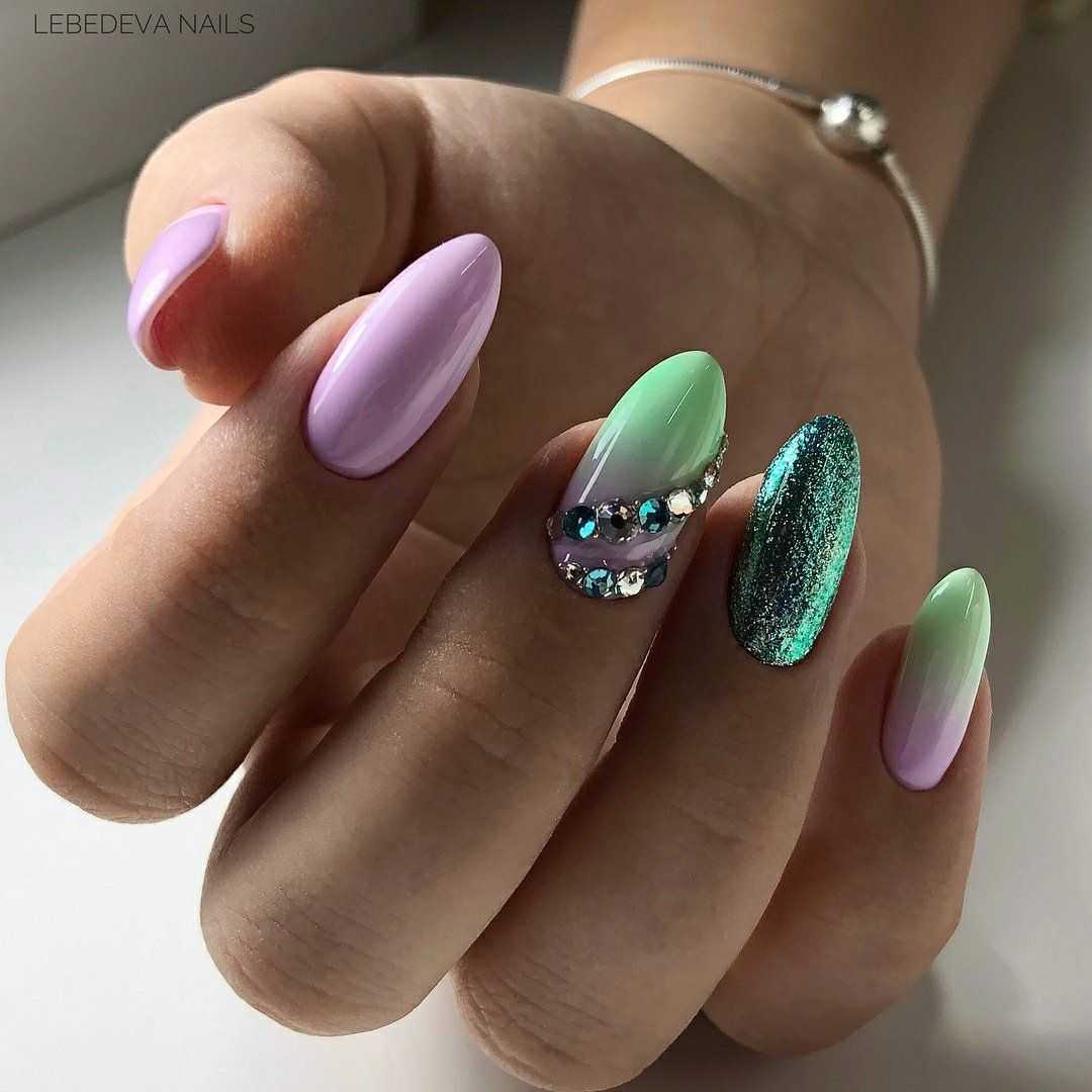 Комбинировать маникюр с зелёным нужно осторожно. Тон уместно сочетать в качестве акцентов