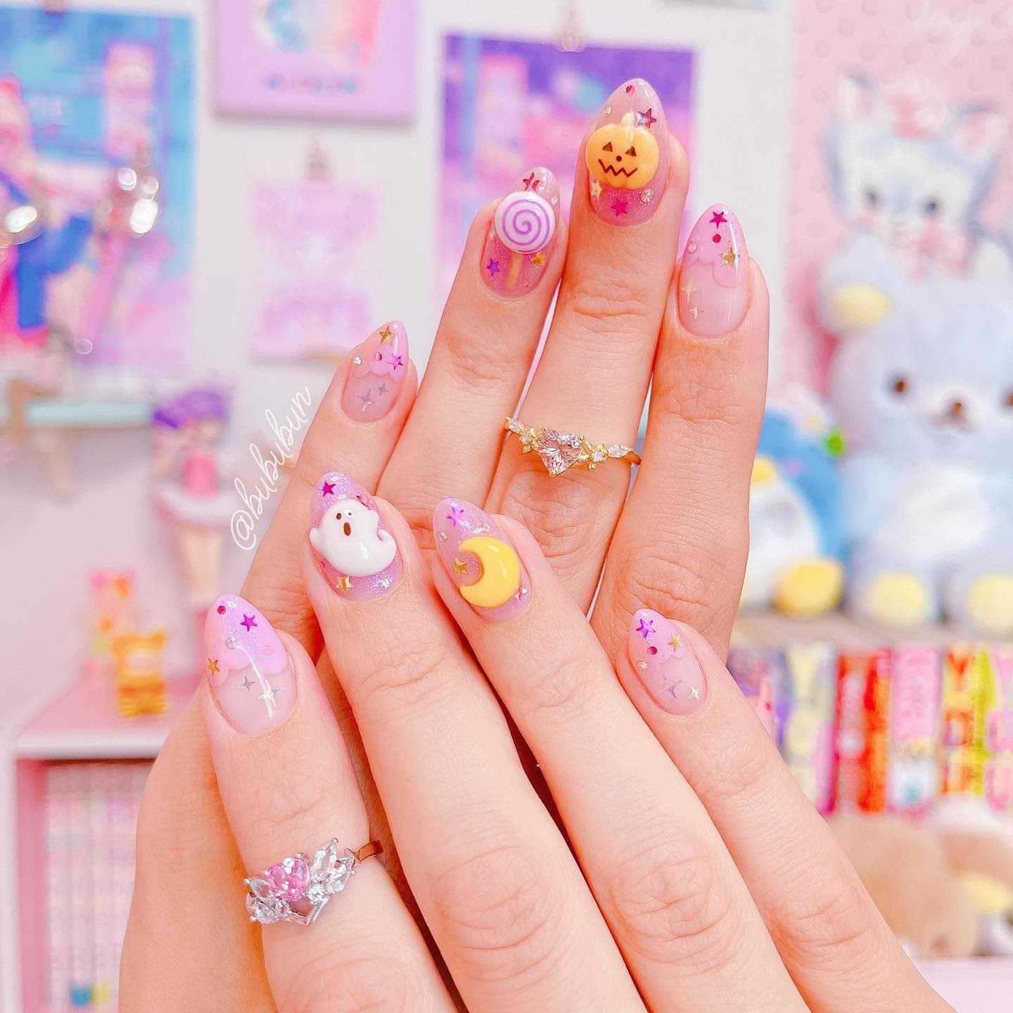 В лунном дизайне — с прозрачными, либо треугольными лунками, из страз или блесток,
