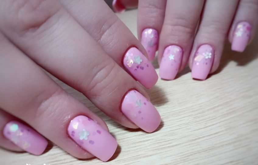 В этом пошаговом руководстве мы покажем вам, как сделать маникюр с камифубиками, чтобы они не «стекали» с ваших ногтей в процессе дизайна. Мы возьмем за основу красивый розовый оттенок гель-лака и сделаем модный декор, напоминающий технологию растягивания пайеток на ногтях, только в нашем случае это будет крупное конфетти.