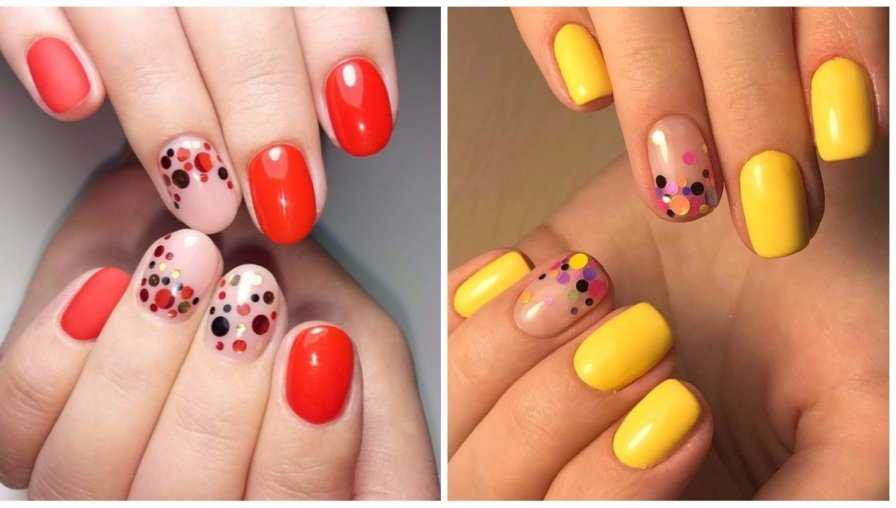 Важный нюанс – маникюр с конфетти делают с гель-лаком. Секрет в том, чтобы декор оказался в прочно запечатанном «стекле». Конечно, с обычным лаком это почти невозможно.