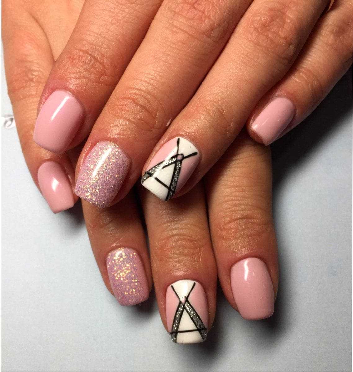 Модная геометрия так полюбилась многим девушкам, что останется в тренде еще на один сезон. В 2019 году будут актуальны такие виды геометрии, как минимализм, полоски, рисунки, заполненные блестками, матовые текстуры. Также можно создавать геометрические рисунки быстро и легко с помощью уже упомянутой выше паутинки. Да! Это настоящее спасение для девушек, пока не овладевших техникой начертания на ногтях ровных тонких линий.