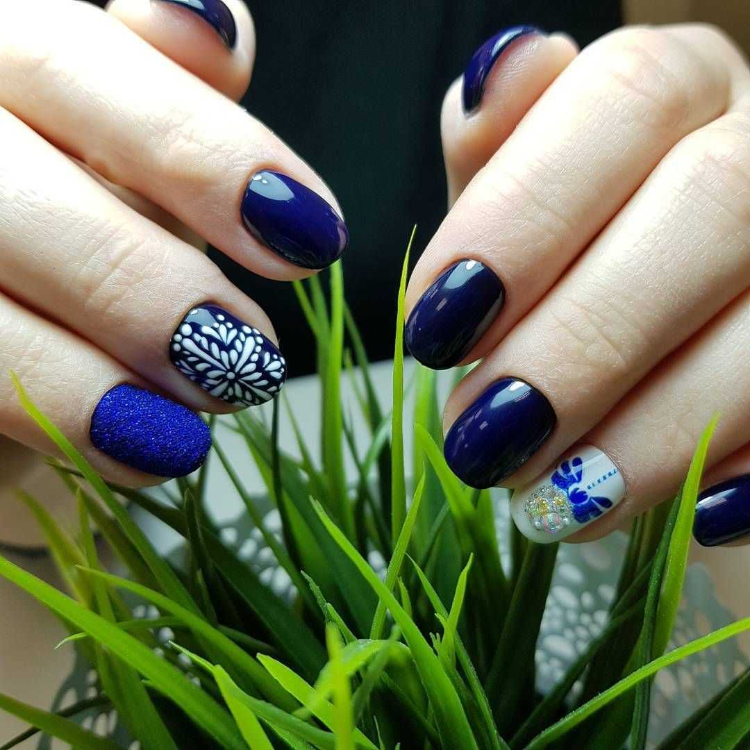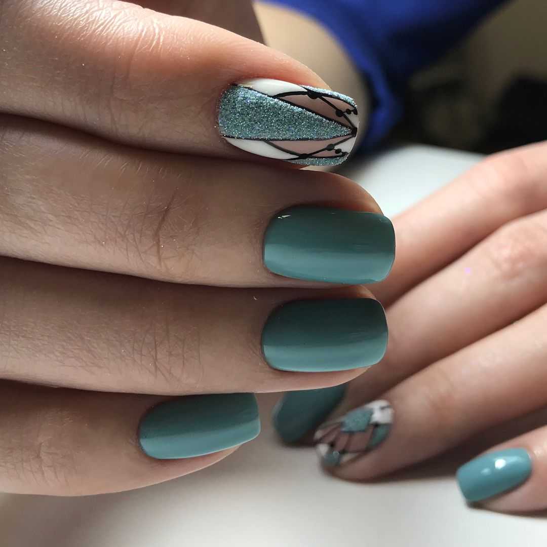 Не стоит перегружать сложные интенсивные оттенки дизайном. Но если очень хочется. остановитесь на минимализме — выбирайте контрастный цвет, небольшие рисунки (например, геометрия), заполните декором один или два пальчика на руке.
