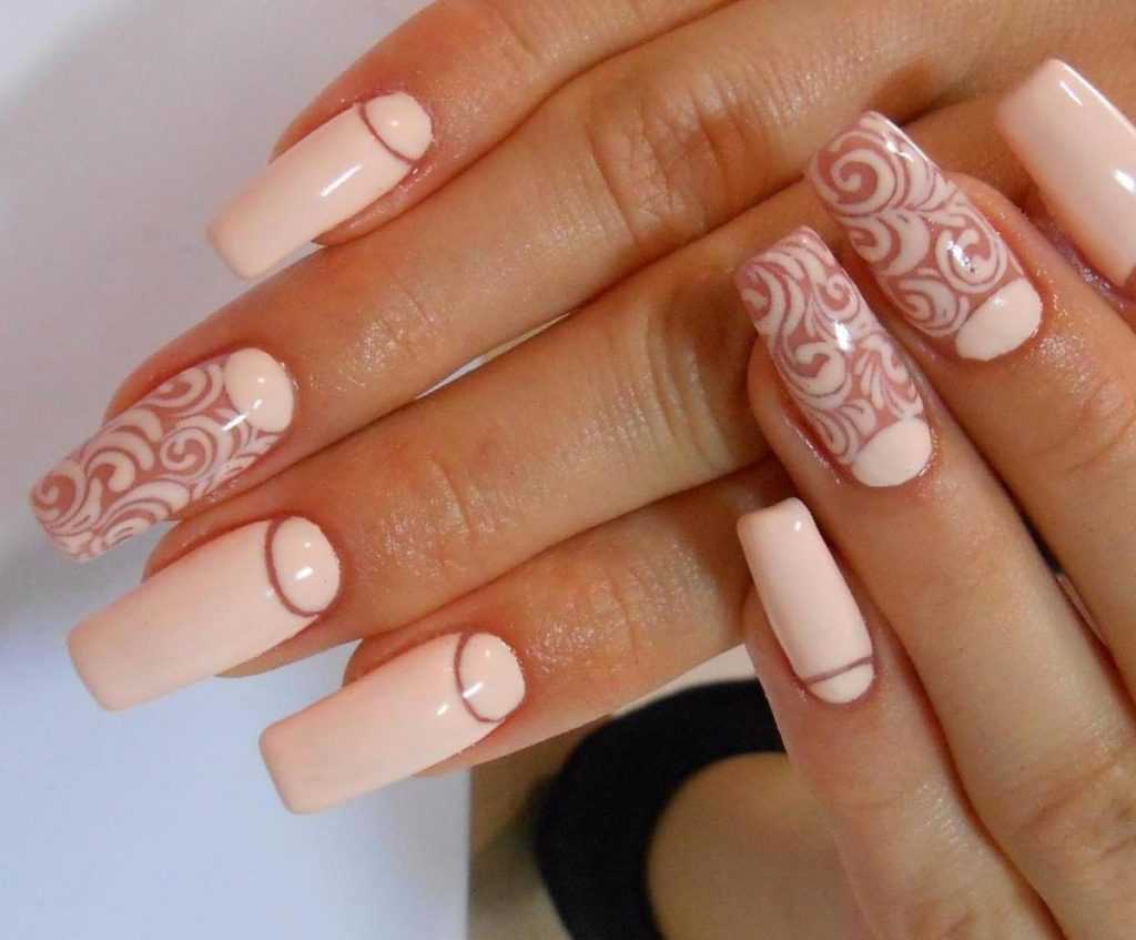 Нежные нюдовые и сливочно-клубничные тона как нельзя лучше впишутся в нежный, простой и изысканный дизайн, не перегруженный обилием декора. Эти цвета незаменимы для свадьбы, офисных будней и тех женщин, кто хочет получить максимально естественный маникюр.