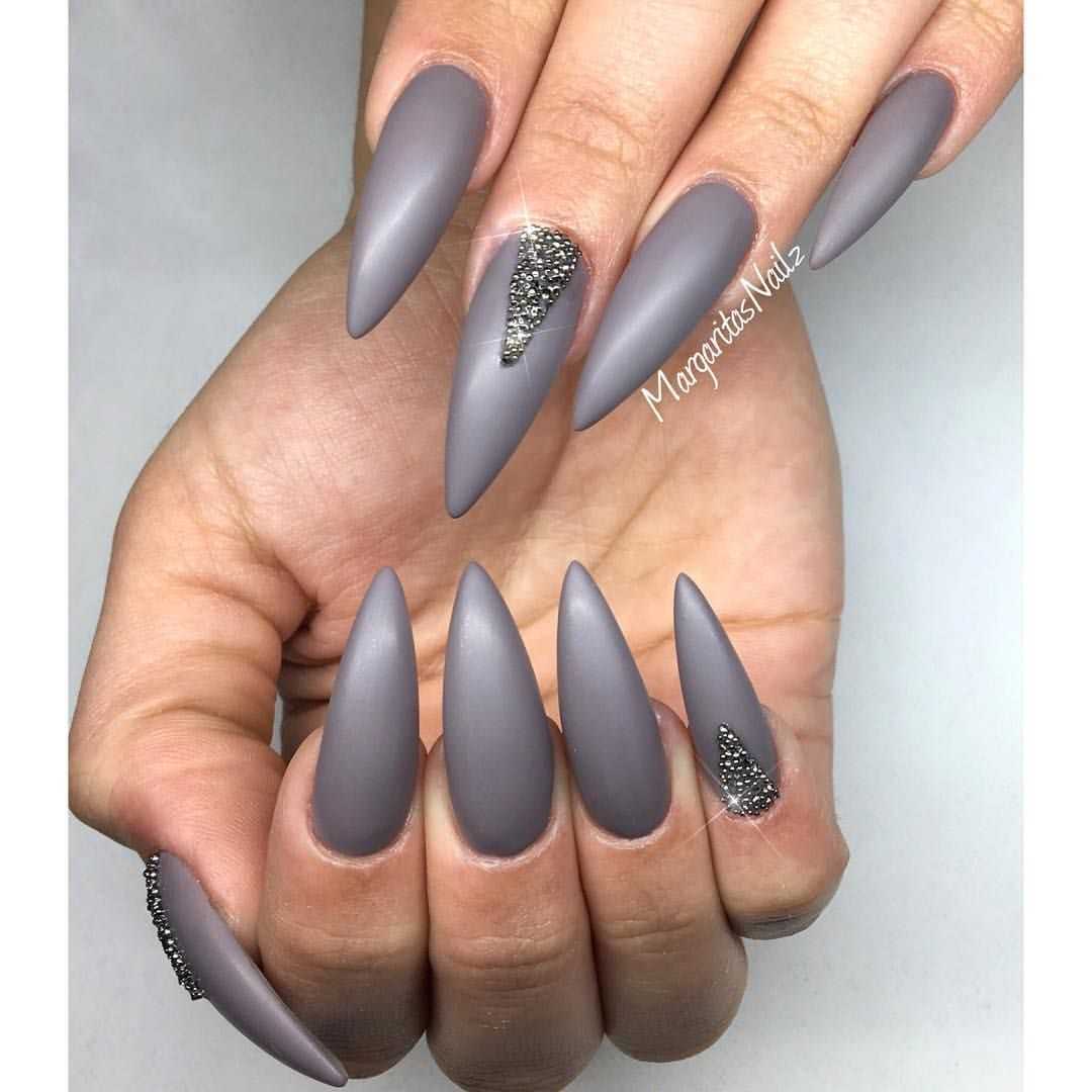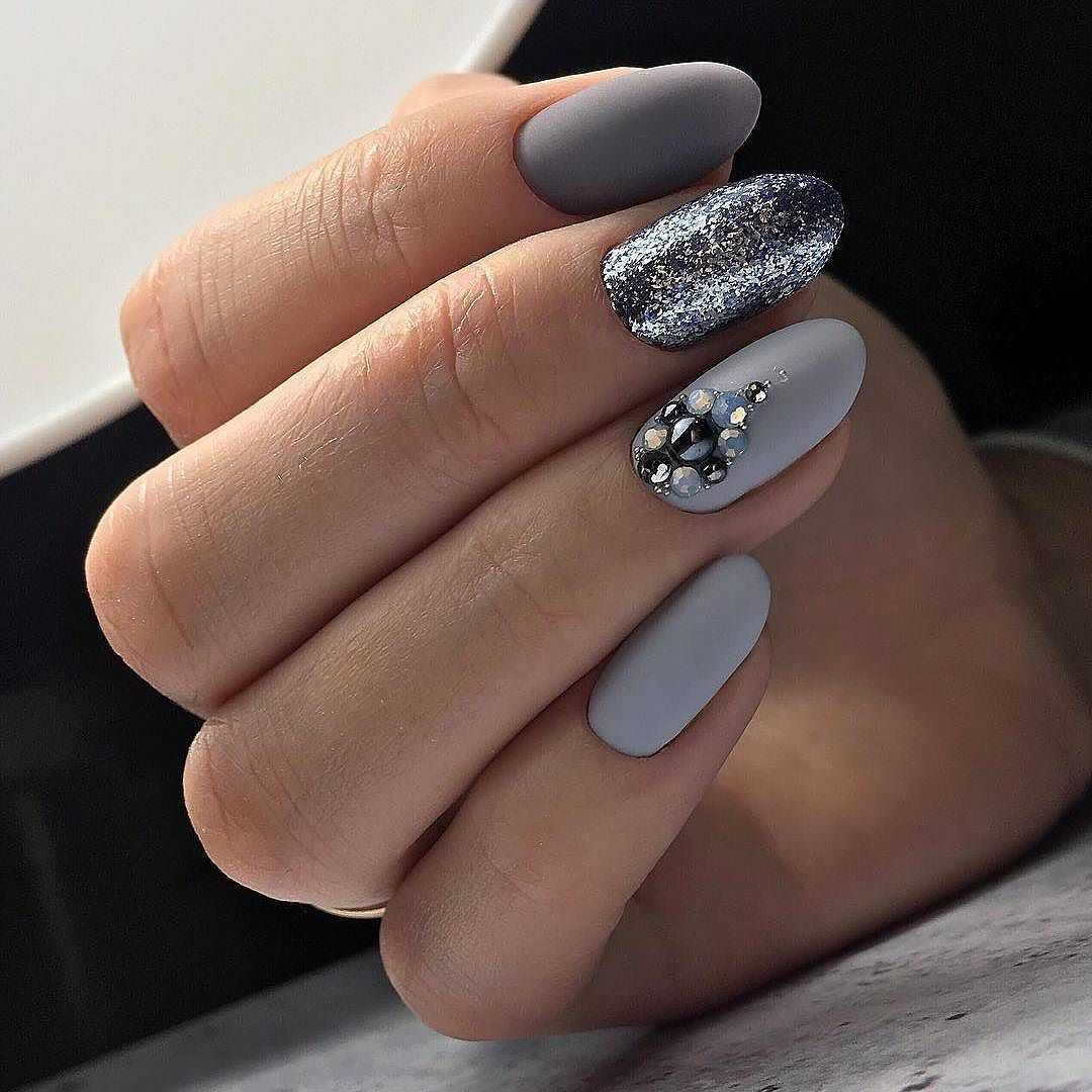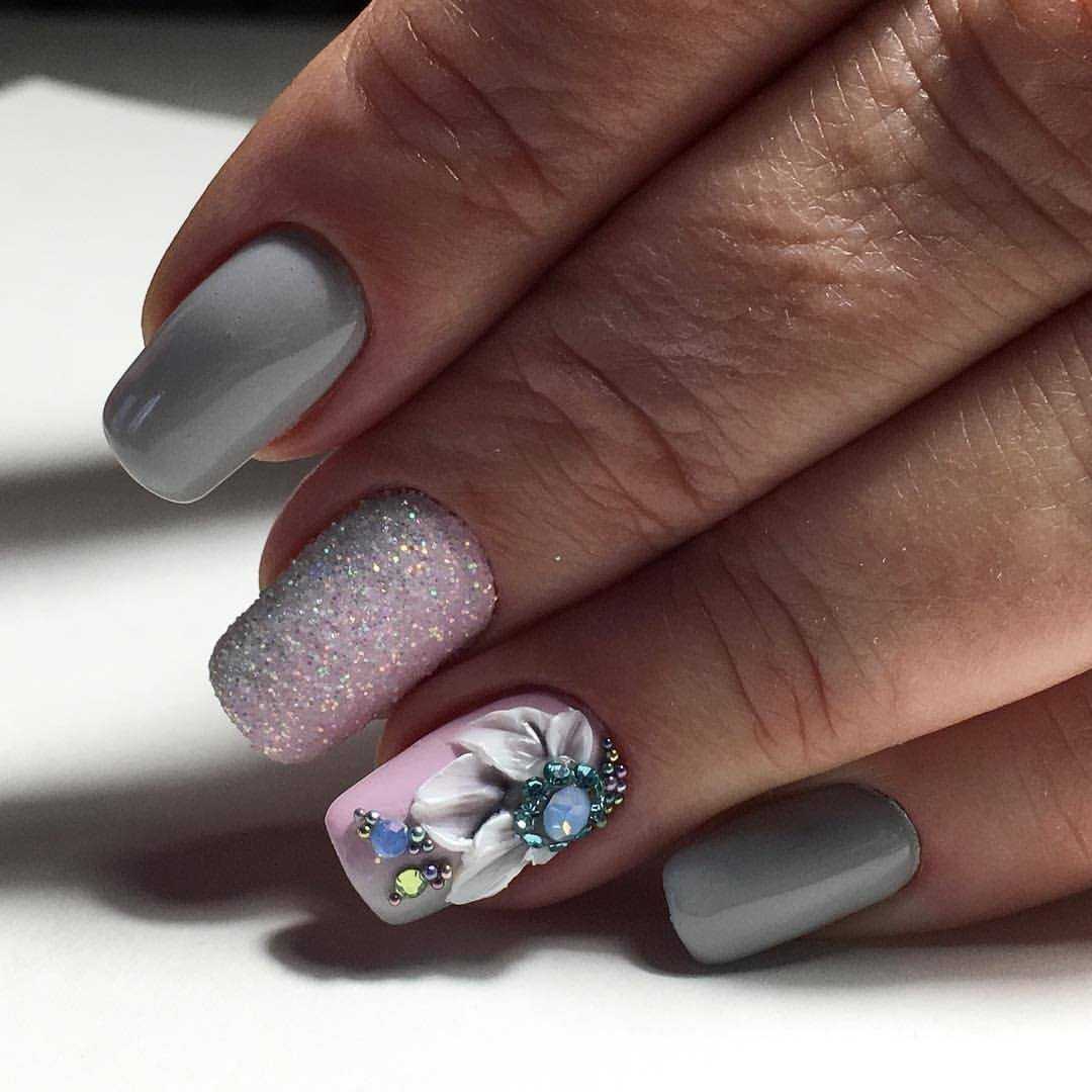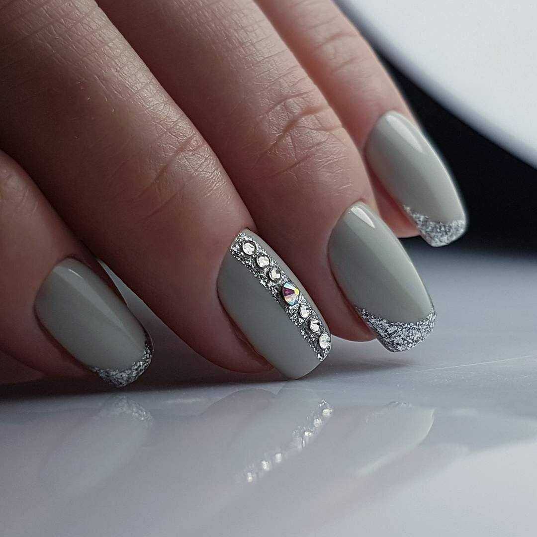 Маникюр в серых тонах с блёстками и стразами