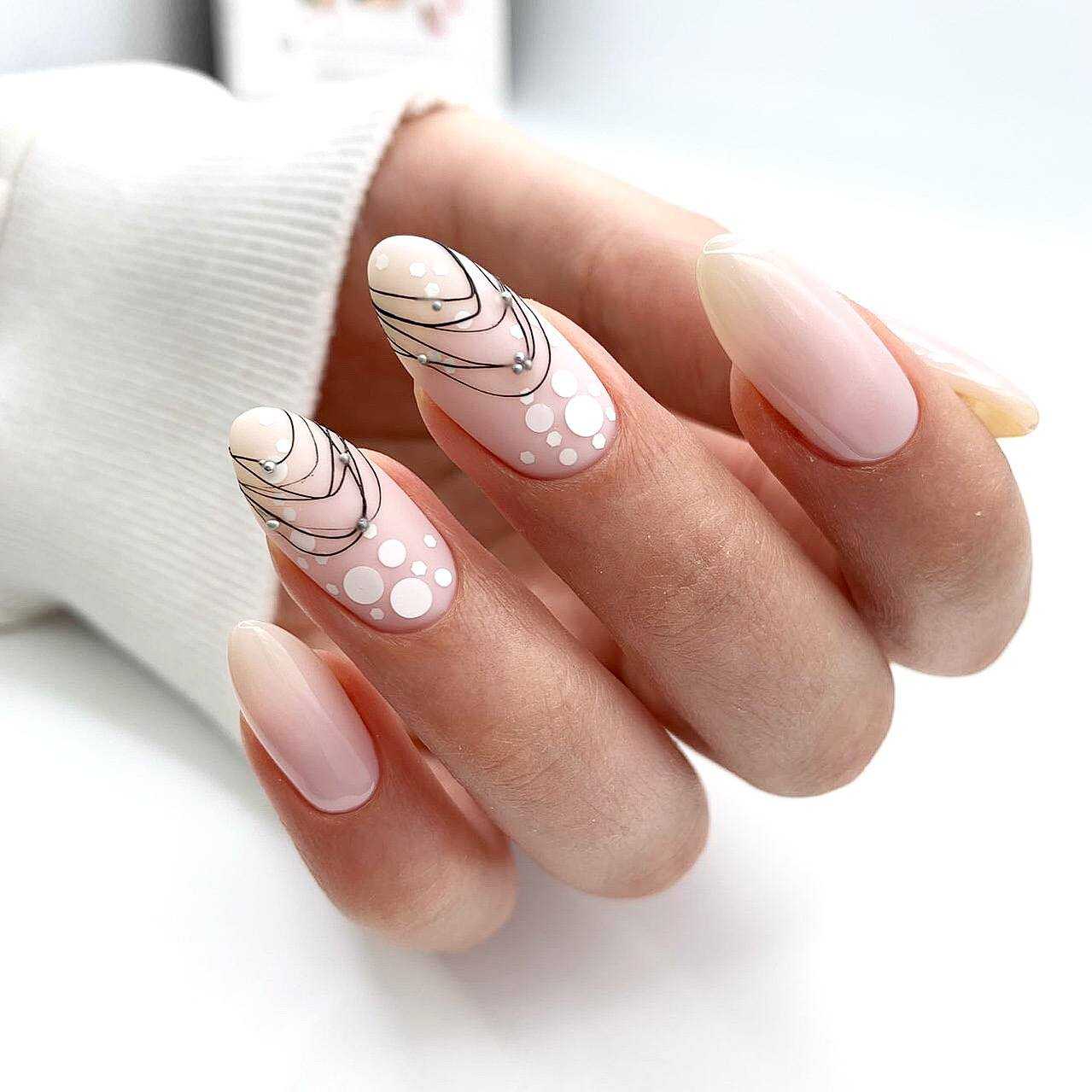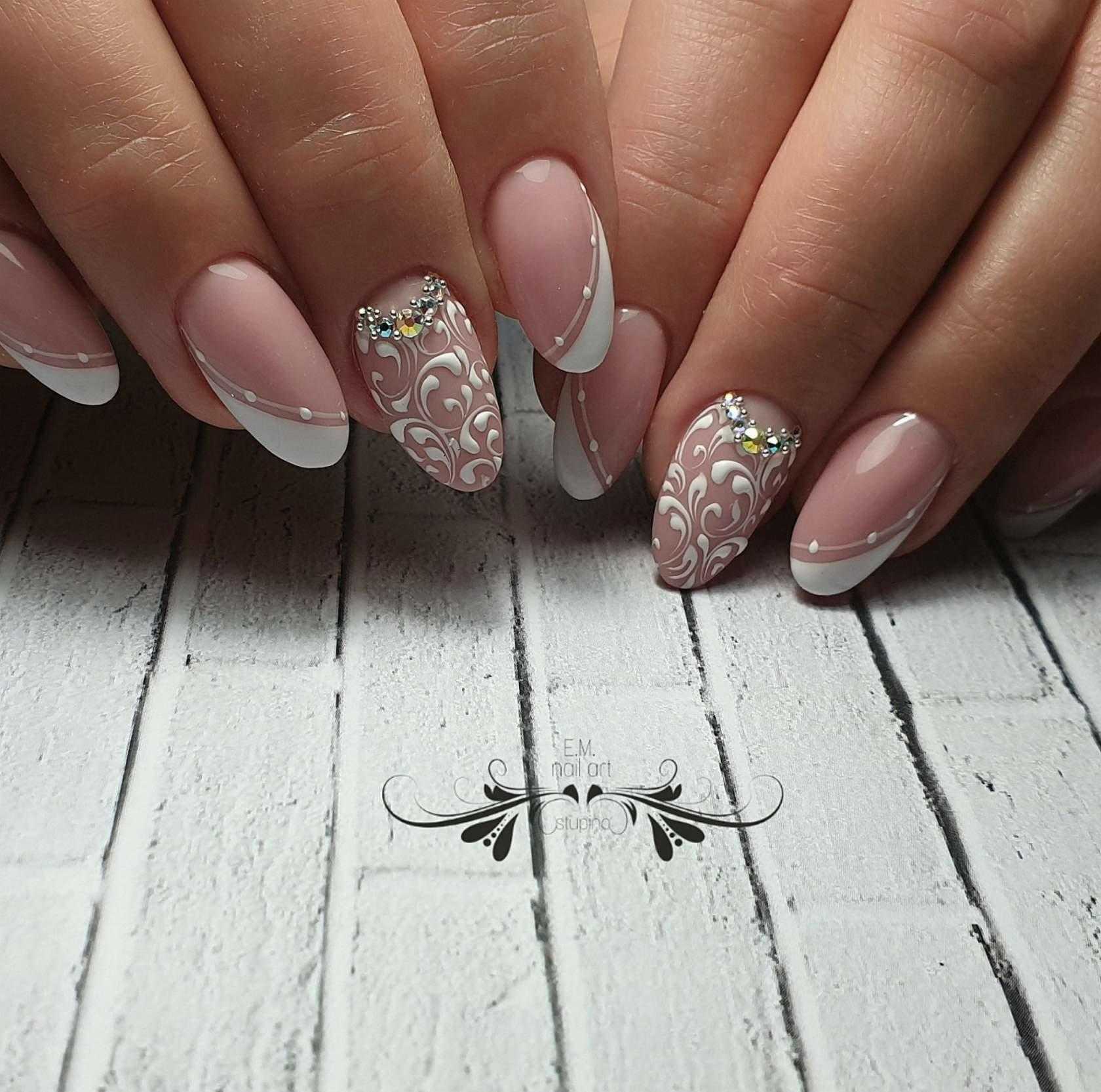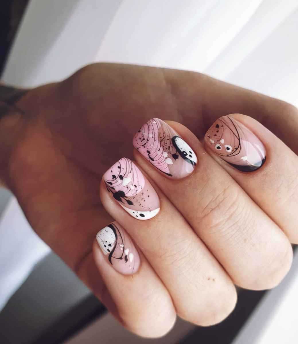 В классическом варианте это белые разводы на розовом фоне. Еще эффектнее и глубже мраморный дизайн смотрится на нюдовых оттенках.