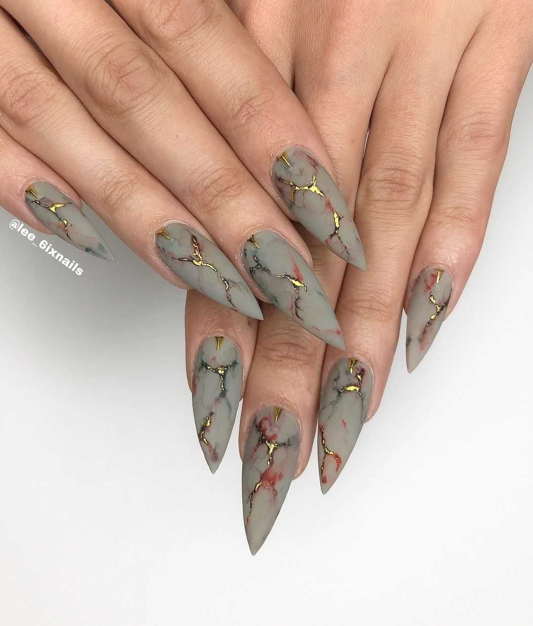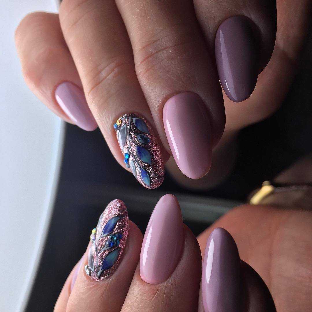 Пространство миндальных ноготков позволяет расположить на них интересный и содержательный декор. Именно на миндальных ногтях наиболее эффектно смотрится мраморный дизайн, маникюр с фольгированными полосками, дизайн с морской волной или дымкой.