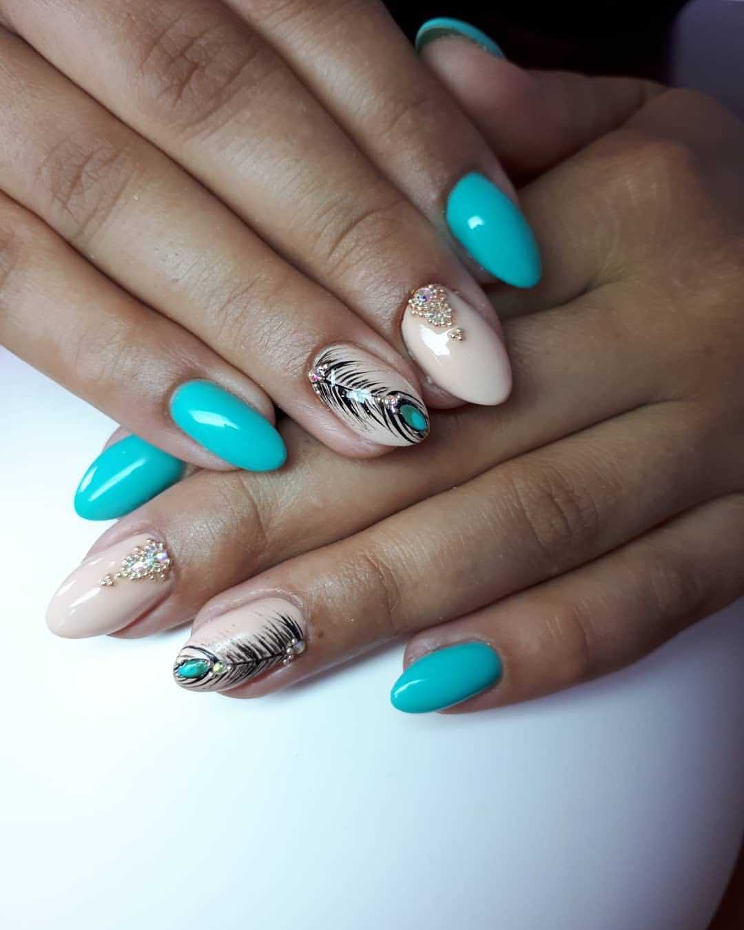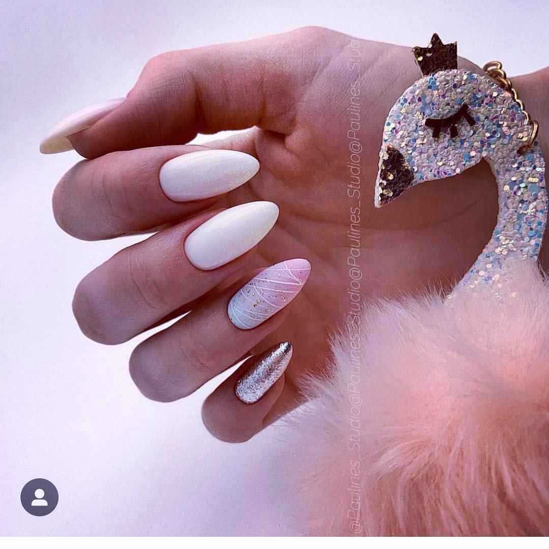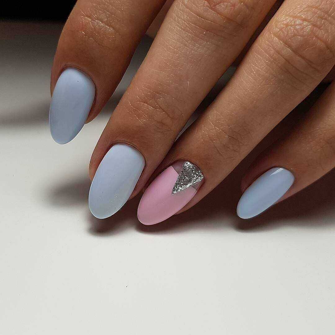 Что касается нежного маникюра на миндальных ногтях, то можно использовать цвета поярче. Например, красиво выглядят нейл-арты в сером, бежевом, бирюзовом, голубом, ярком розовом цветах. Если вы все же хотите получить нежный дизайн ногтей, то выбирайте молочный цвет, полупрозрачные и прозрачные текстуры.