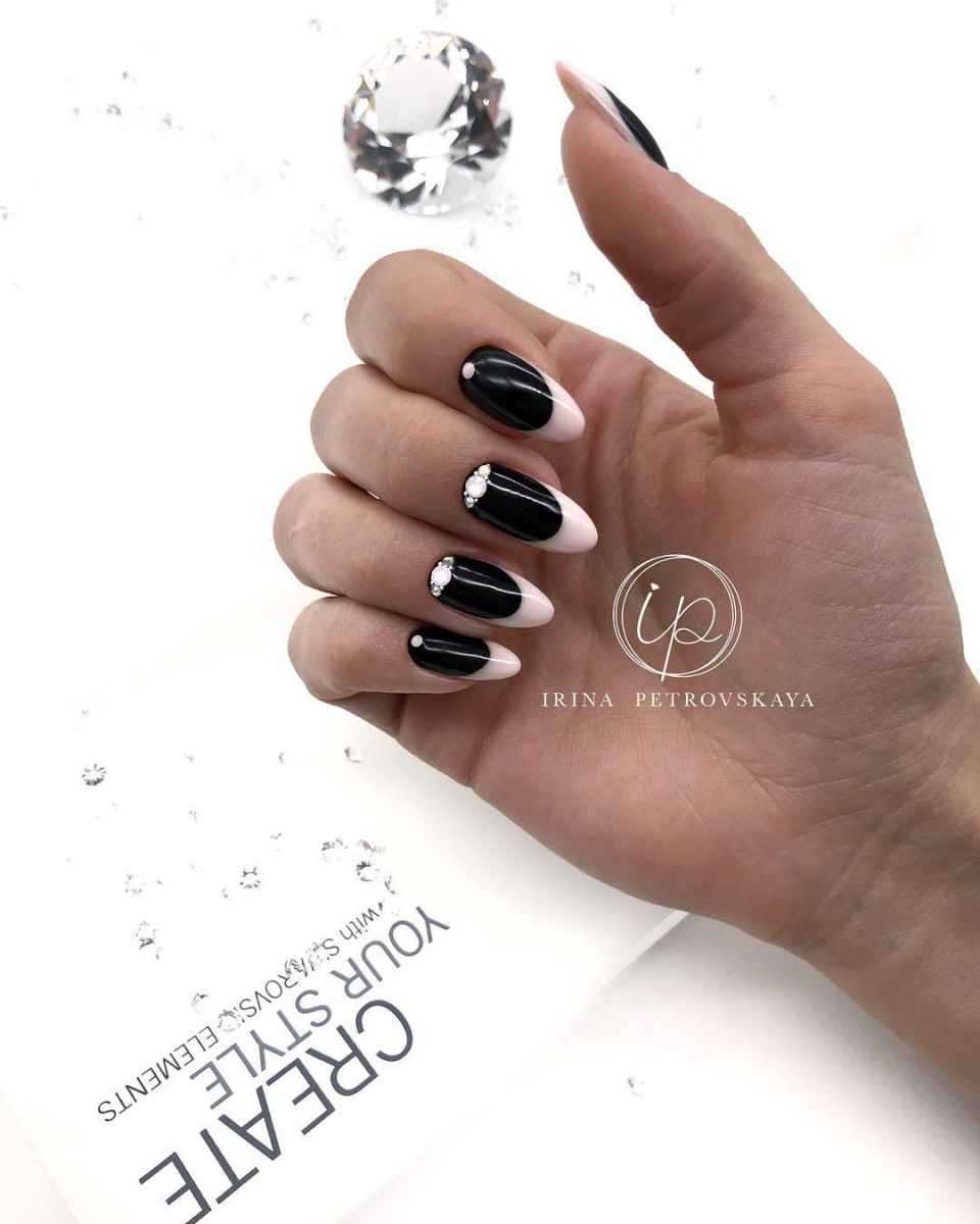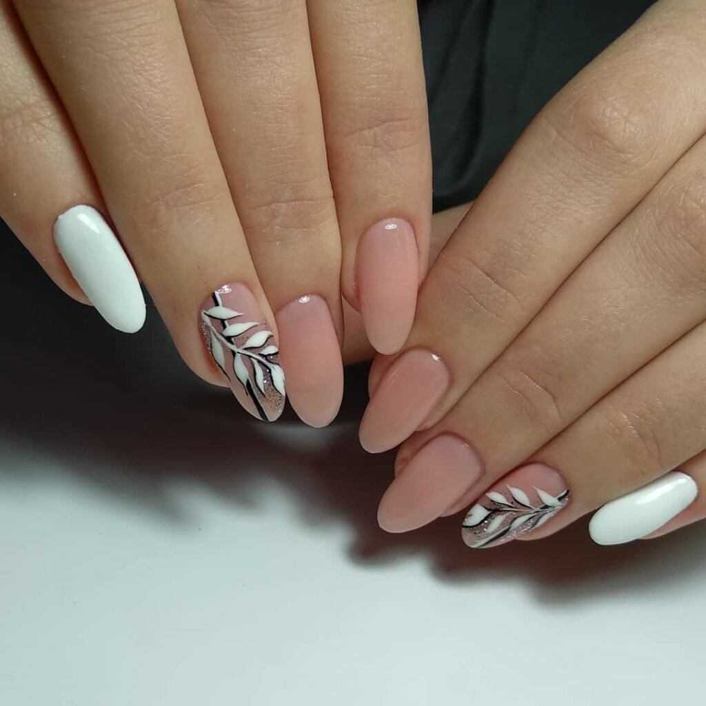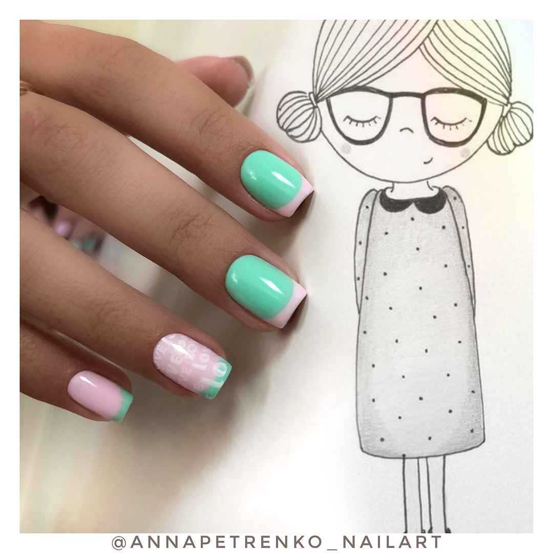 Такое сочетание считается самым гармоничным в нейл-арте. В классическом варианте на ногтях проводится «линия улыбки», а остальное пространство заполняется оригинальными и яркими красками.