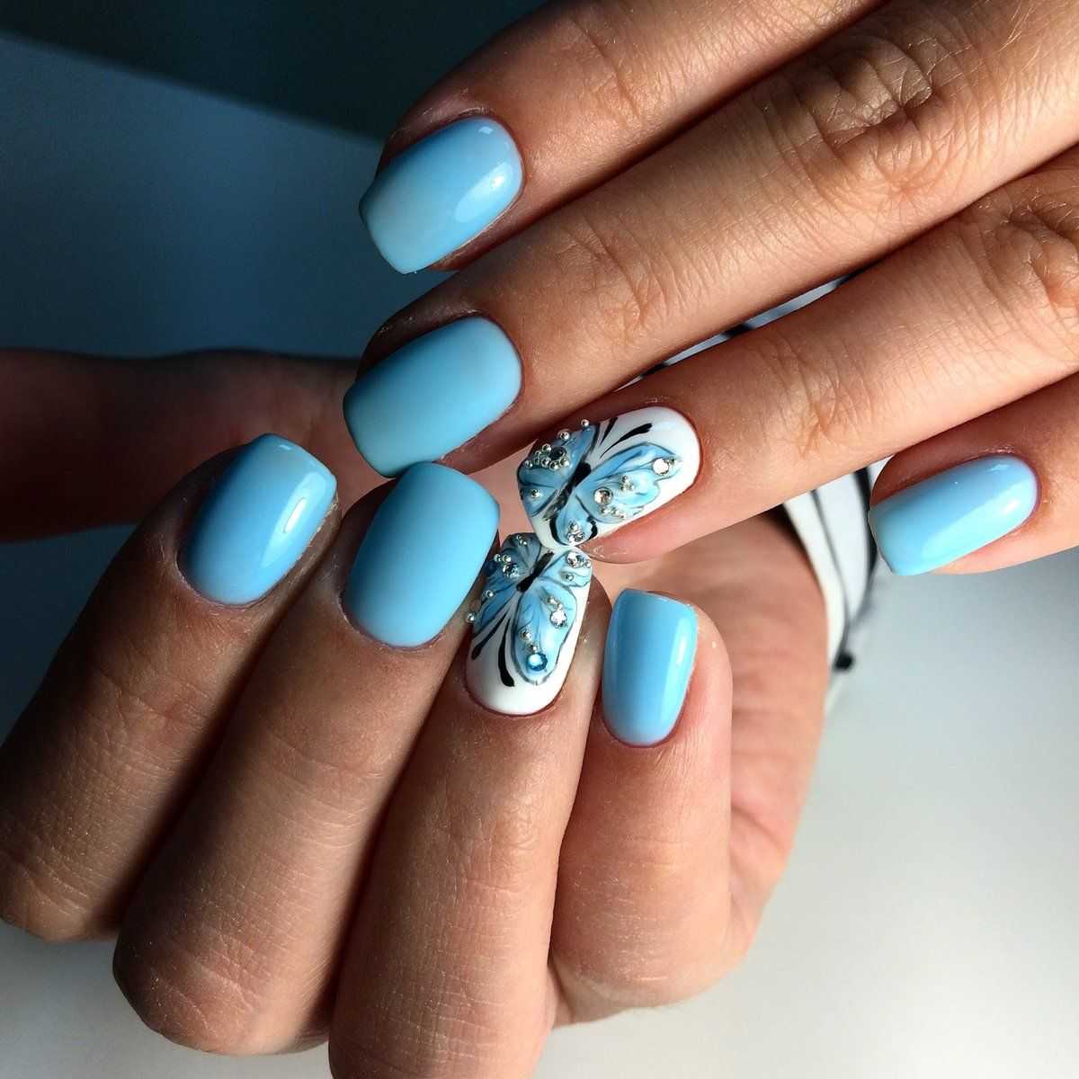 Голубой цвет лака – прекрасная основа для оформления ноготков в любое время года. Каждый рисунок по-своему интересно украшает маникюр. В подборке идей вы найдете множество вариантов в разных стилях. Вдохновляйтесь и смело реализуйте то, что пришлось по душе.