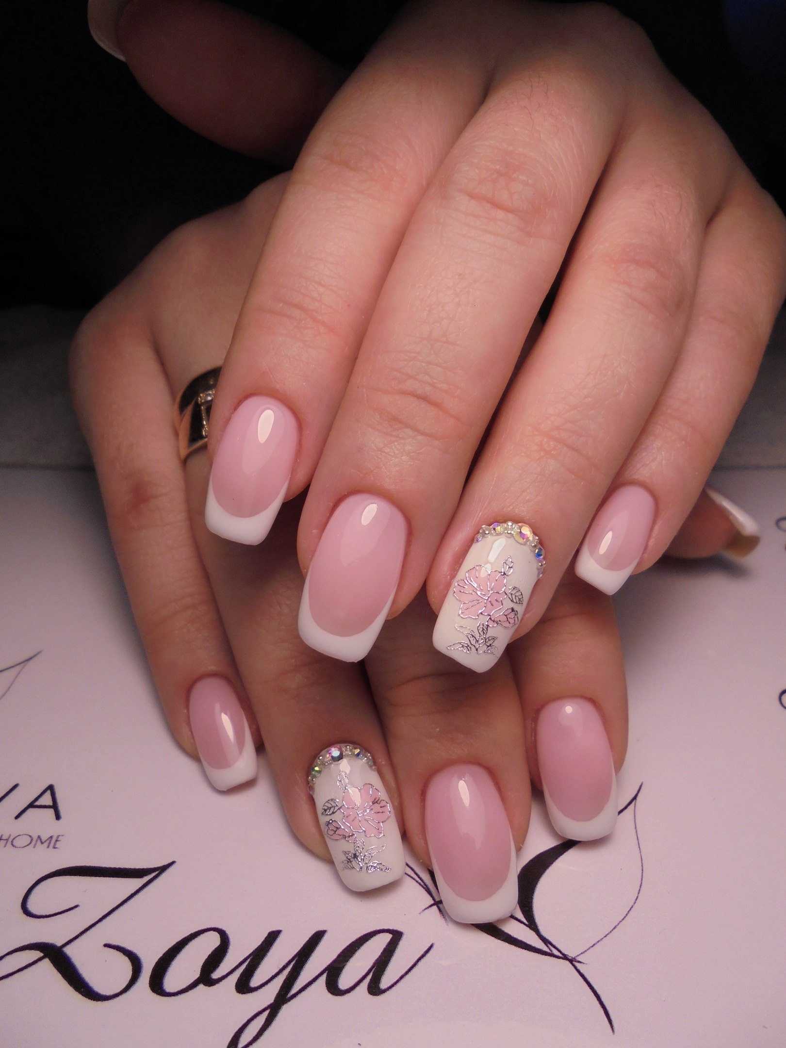 Рисунки при создании нежно-розового френча могут быть самыми разными