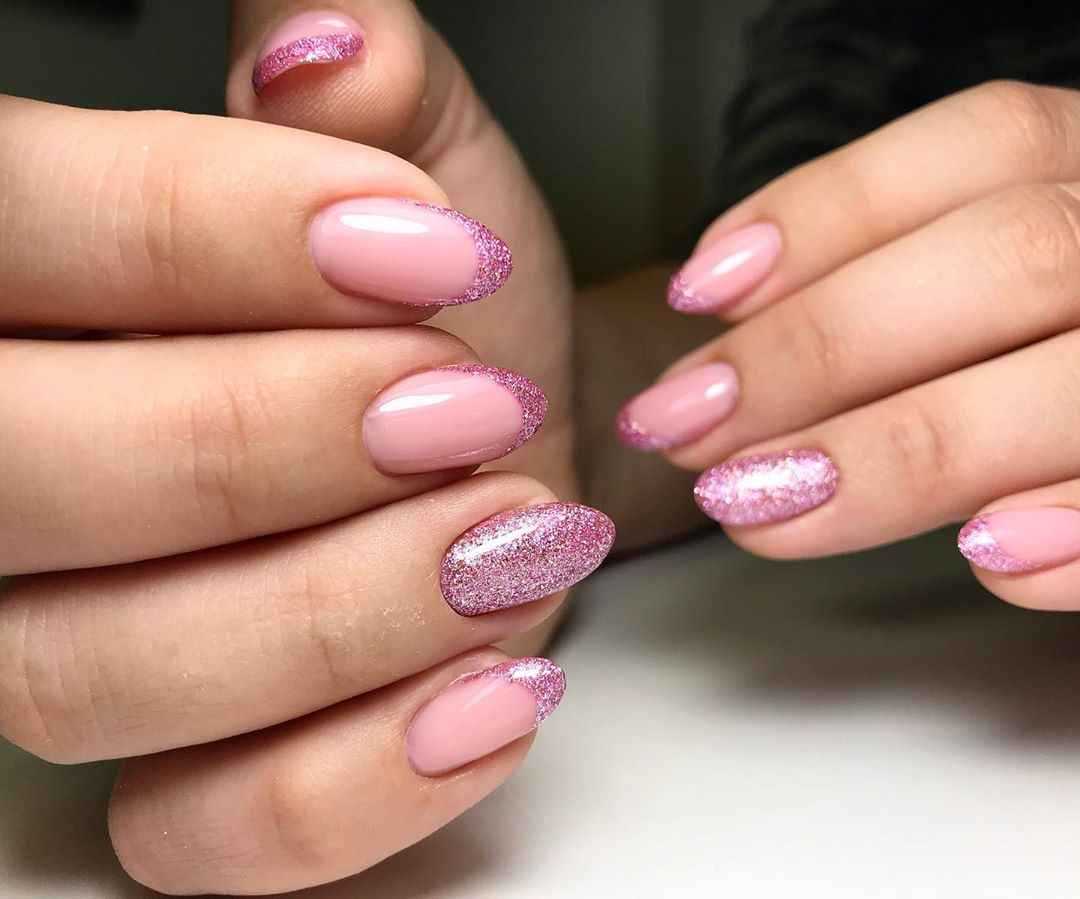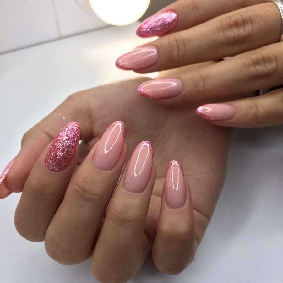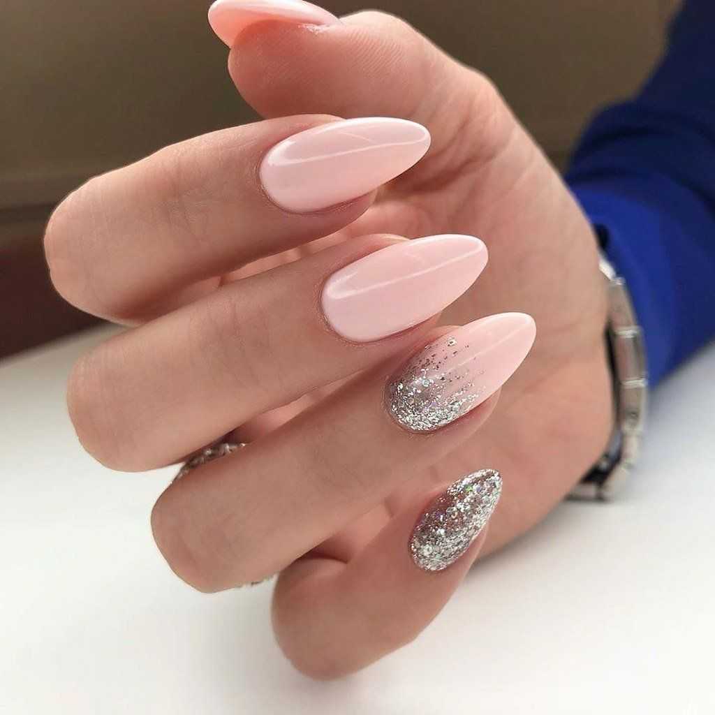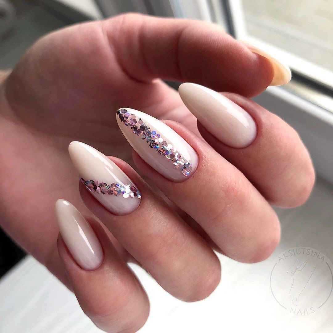 #5 Красивый нежный маникюр с блестками на миндальные ногти