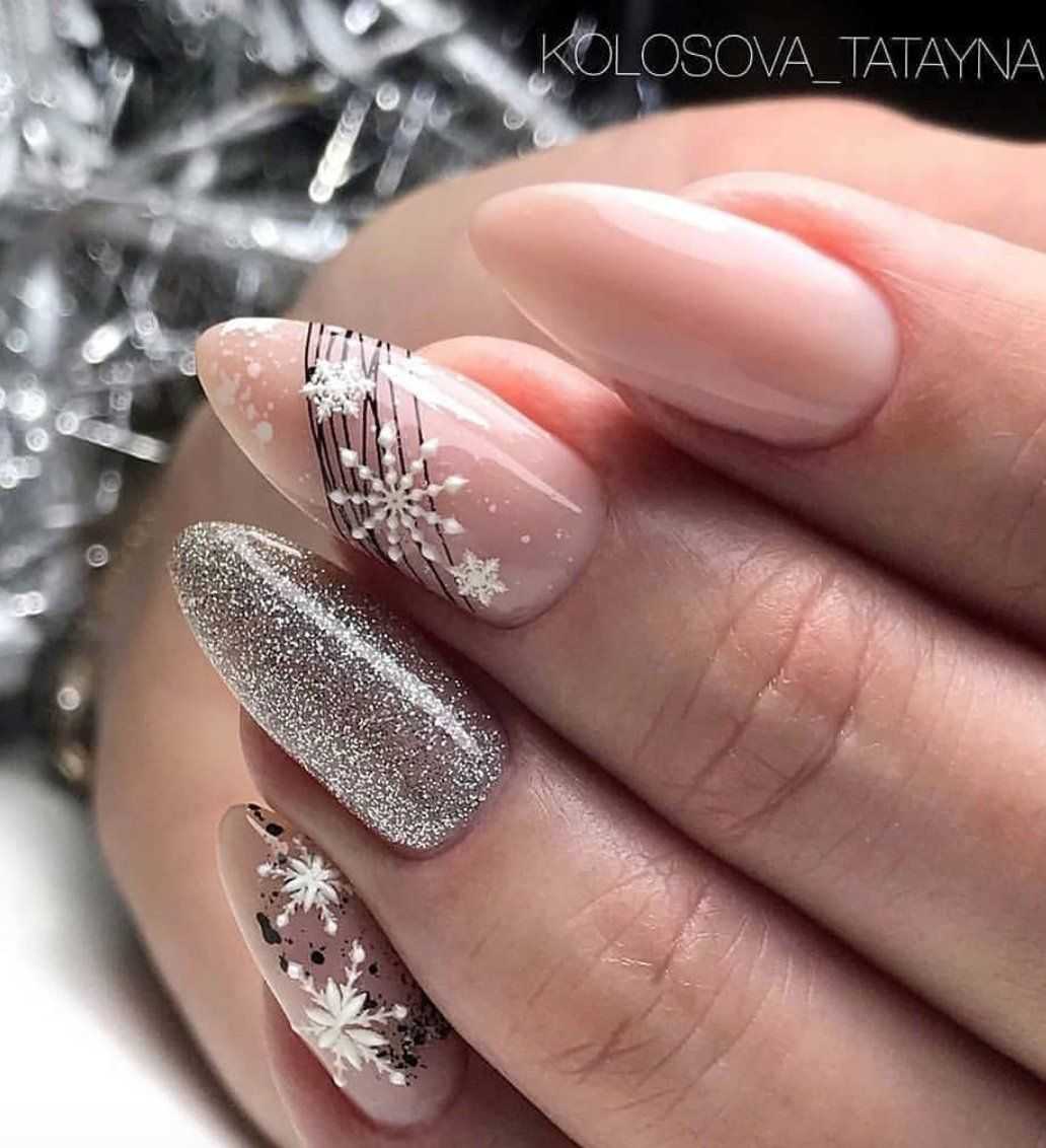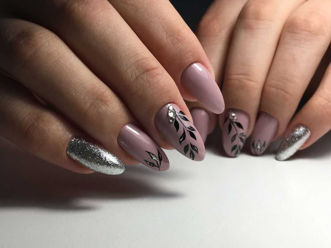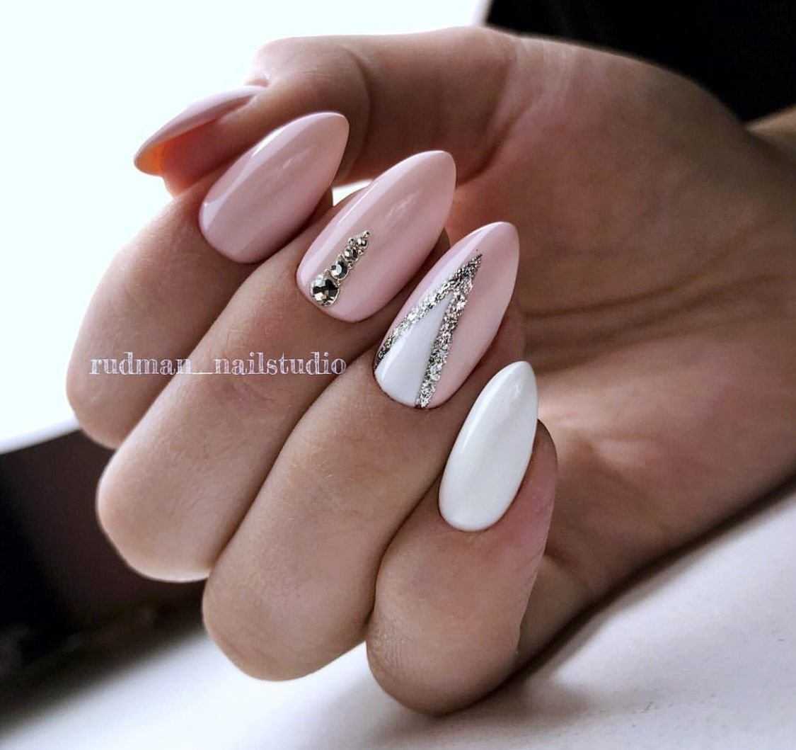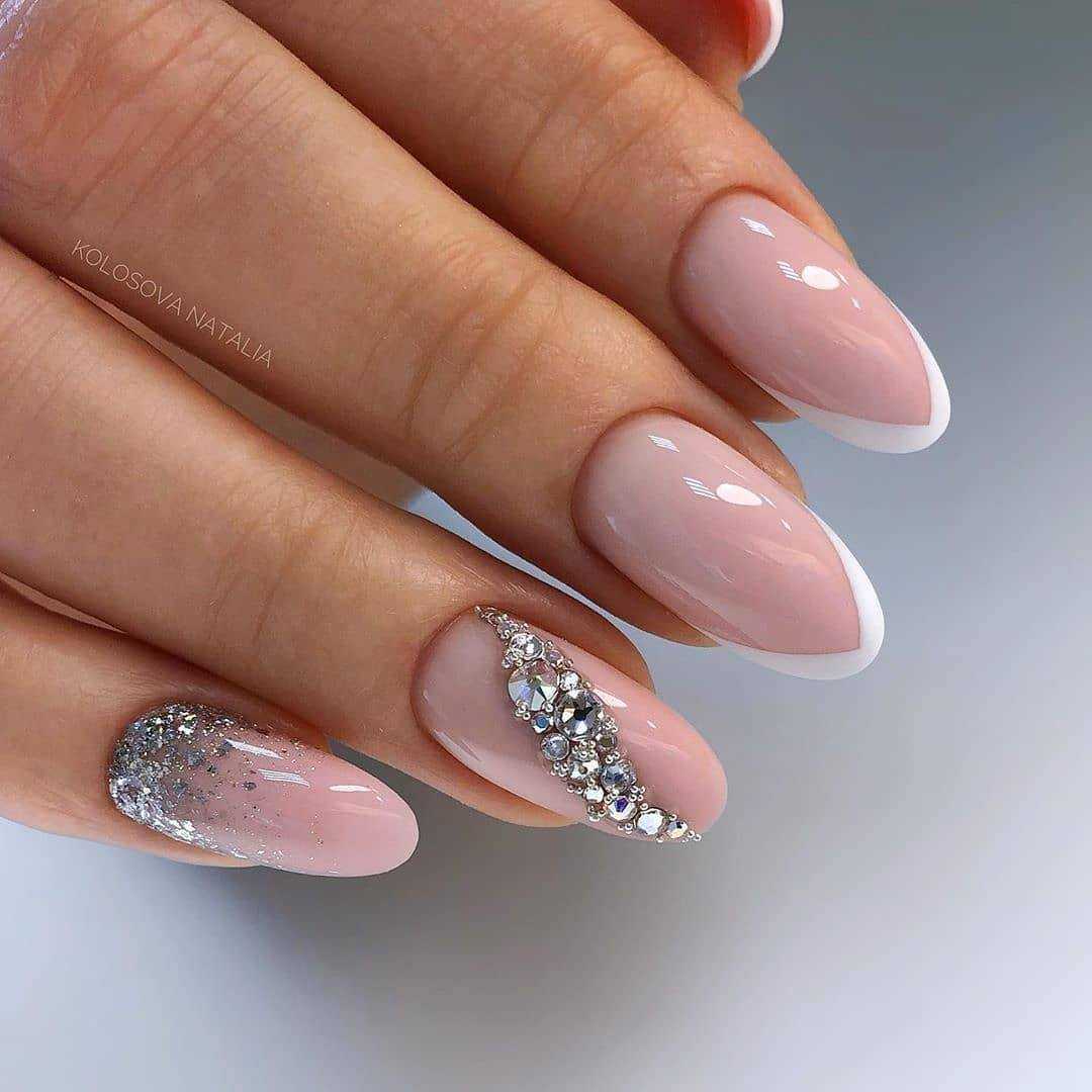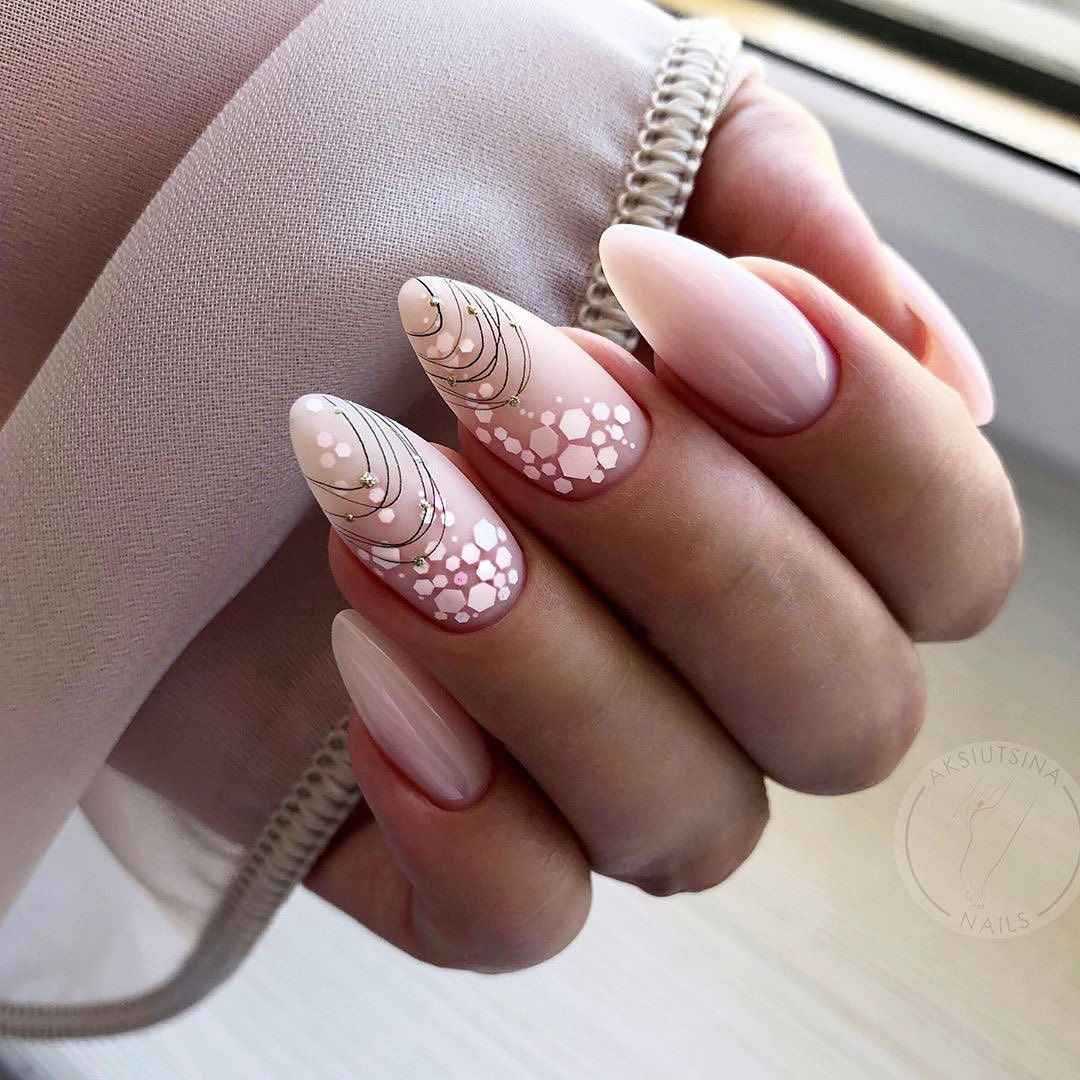 #5 Красивый нежный маникюр с блестками на миндальные ногти