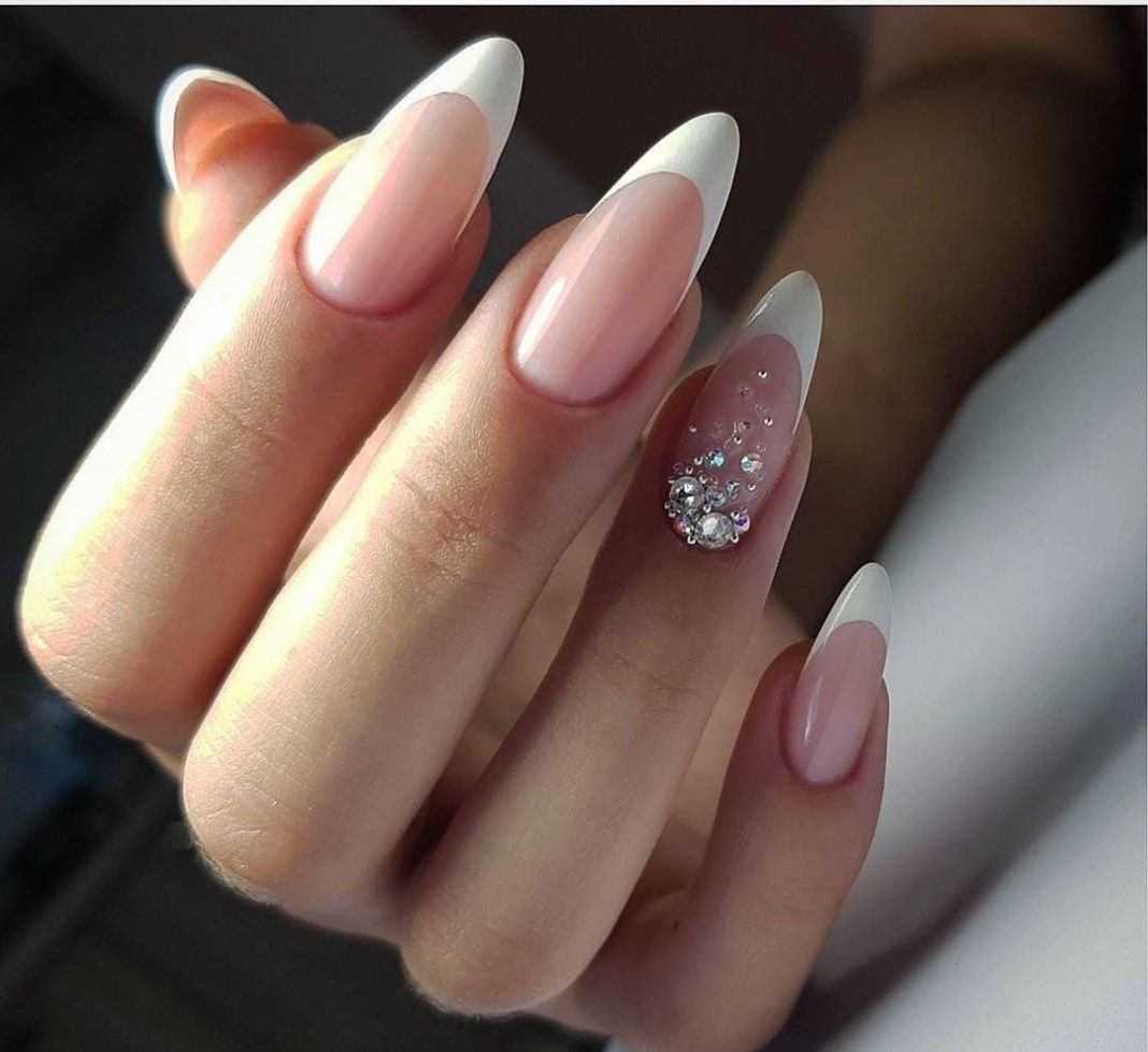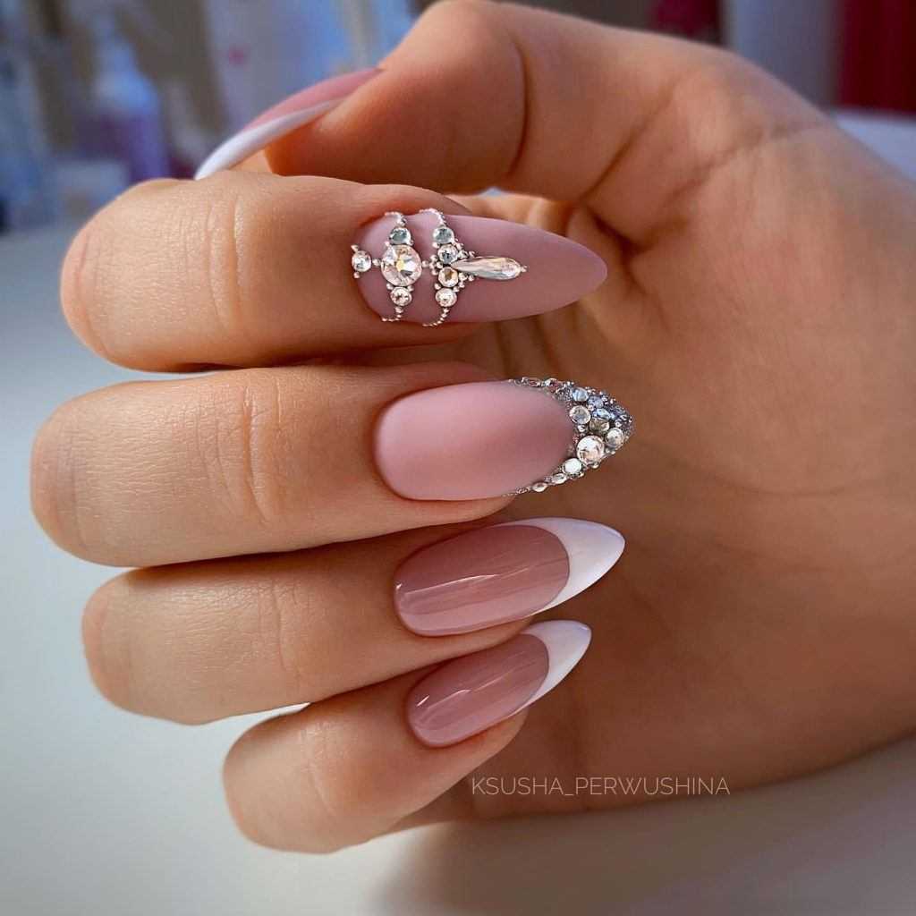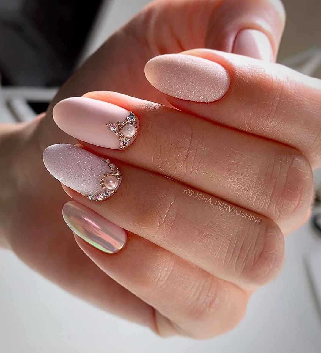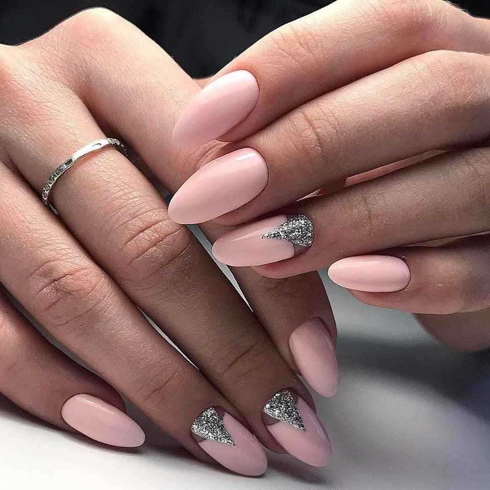 #5 Красивый нежный маникюр с блестками на миндальные ногти