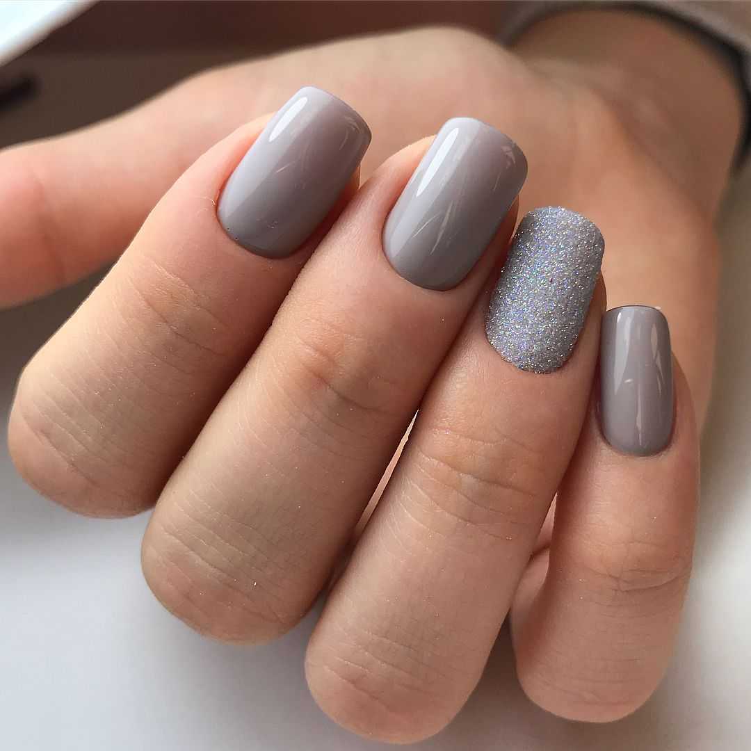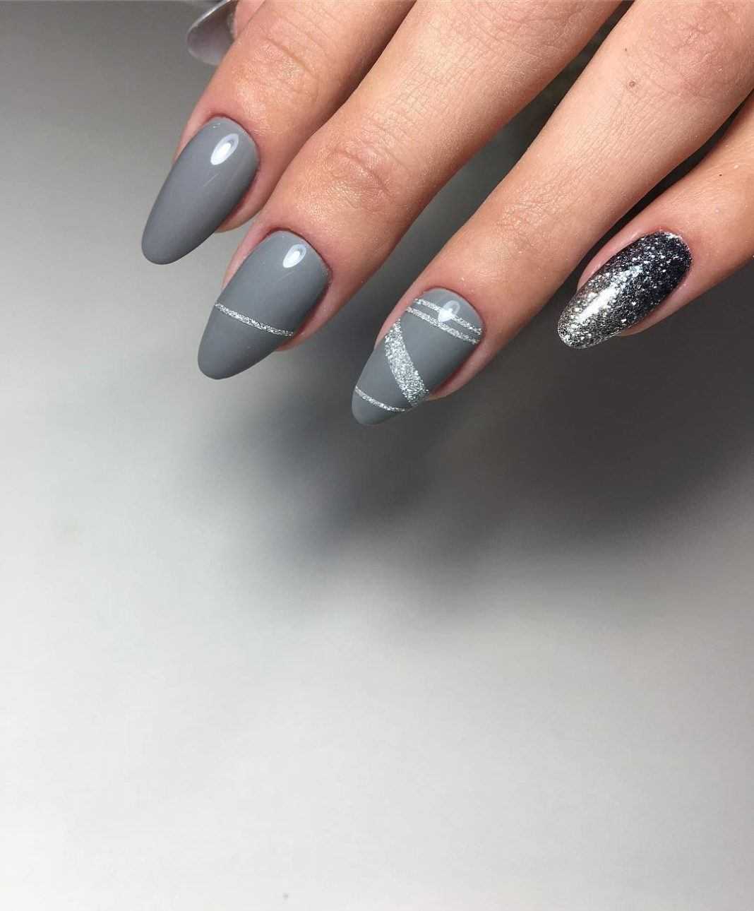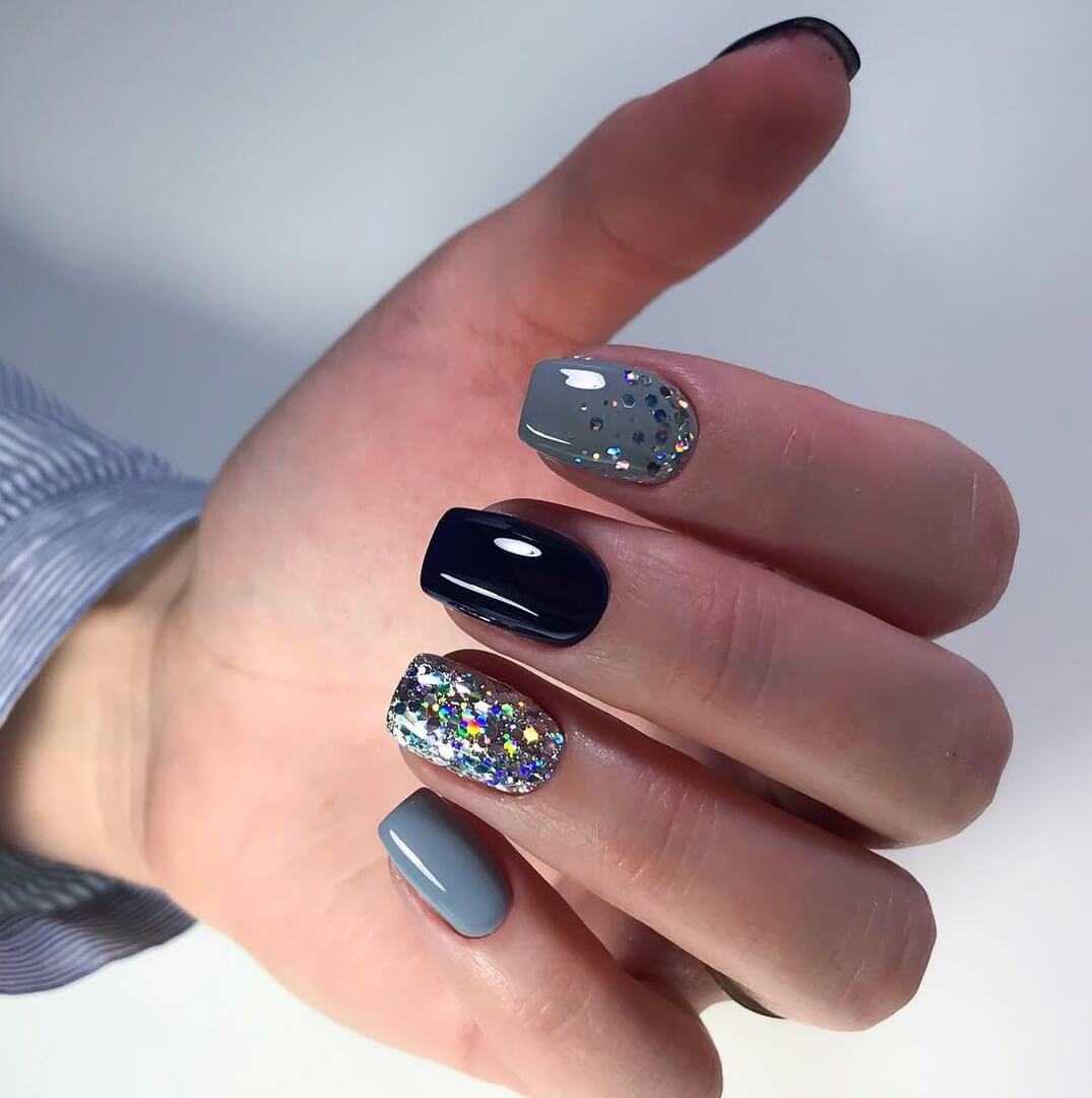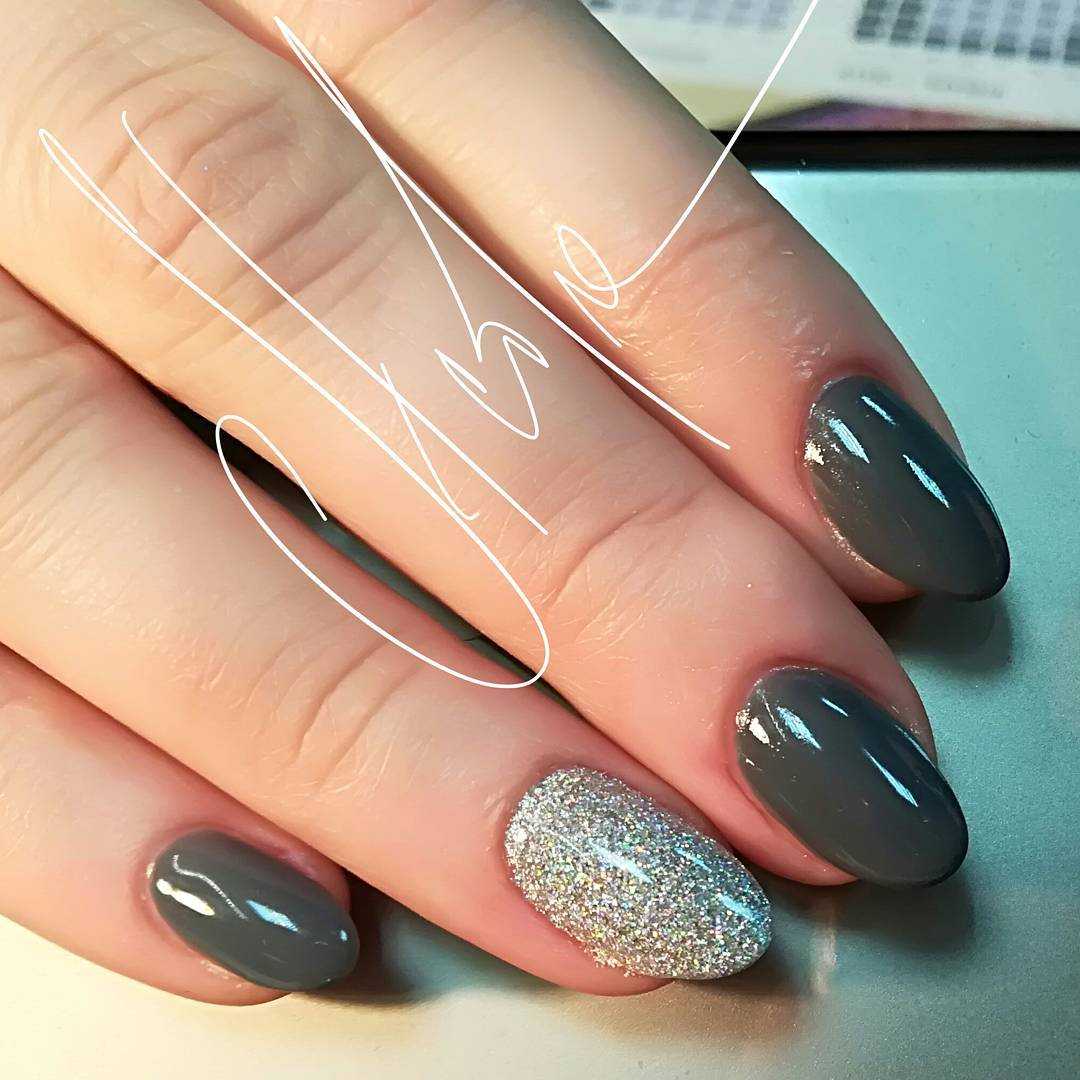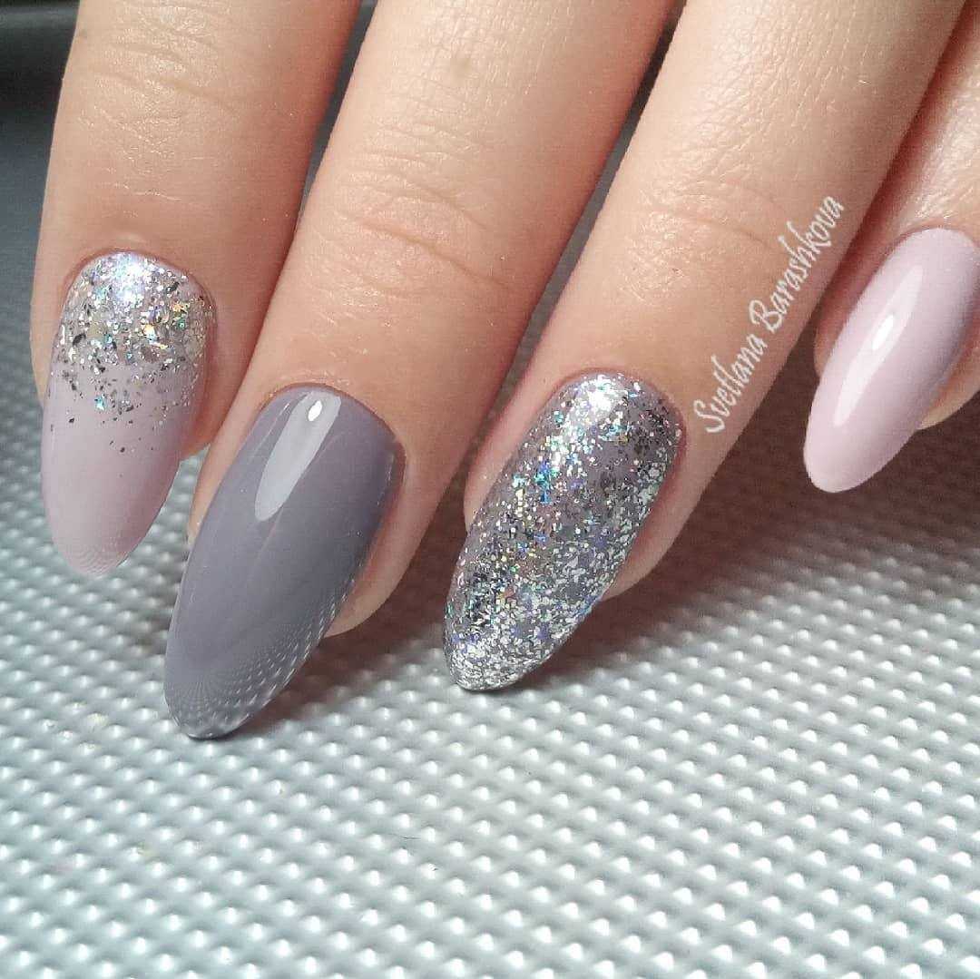 Модные идеи серого нейл-дизайна с блёстками