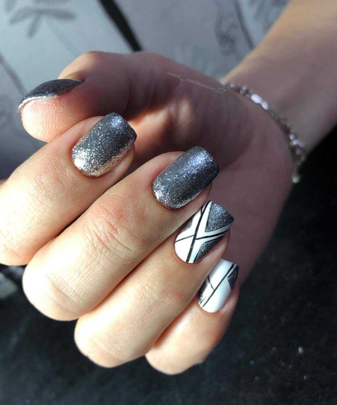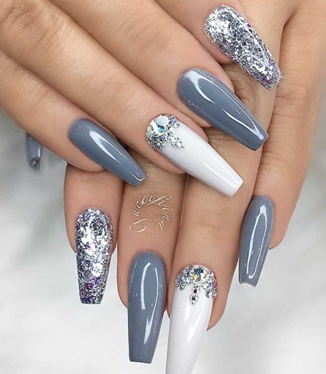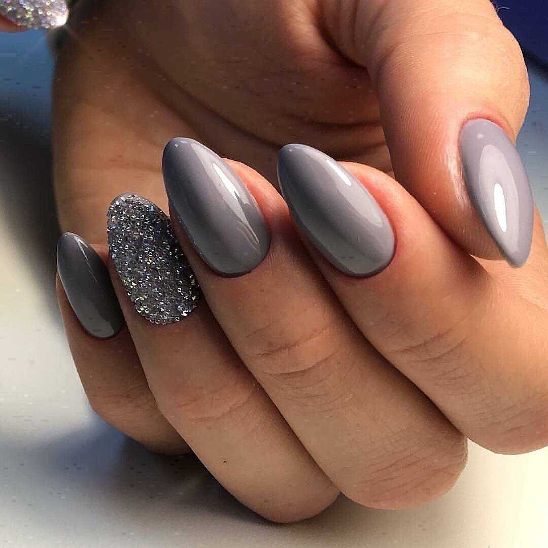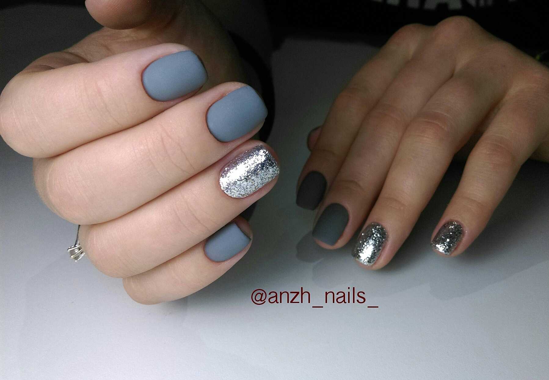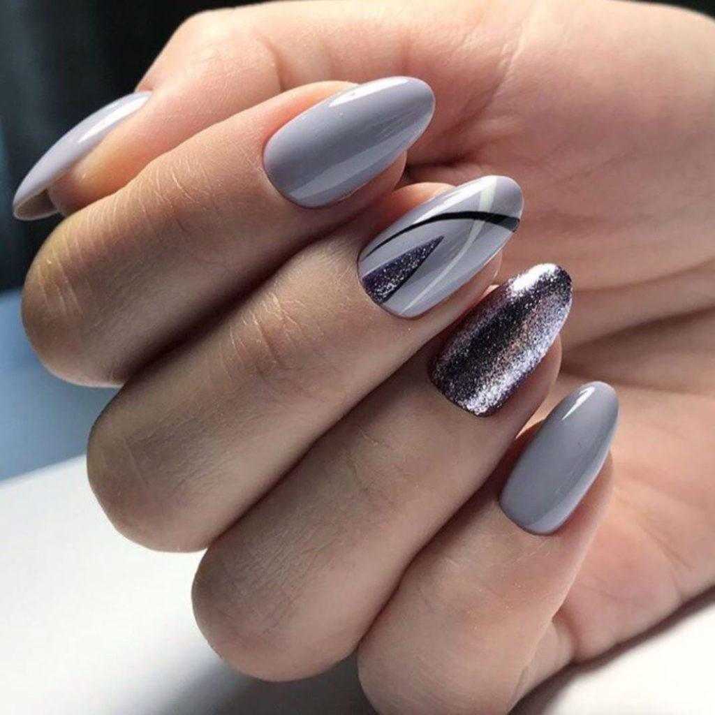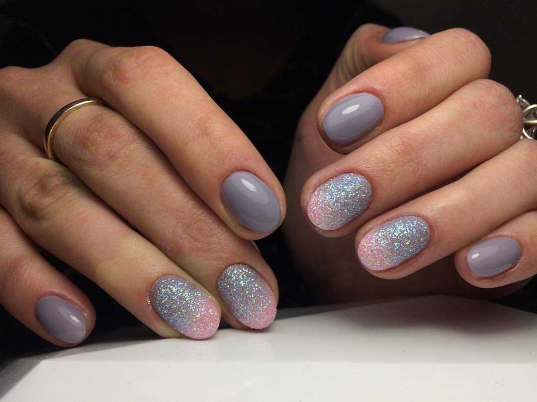 Модные идеи серого нейл-дизайна с блёстками