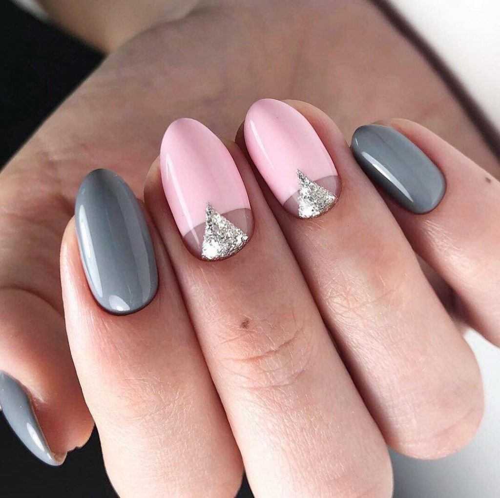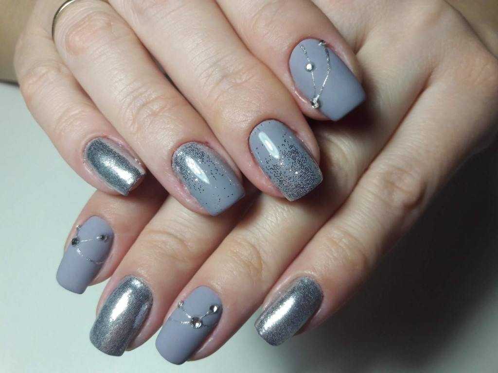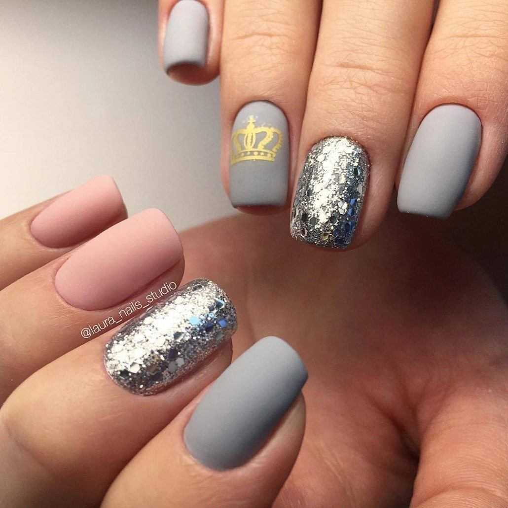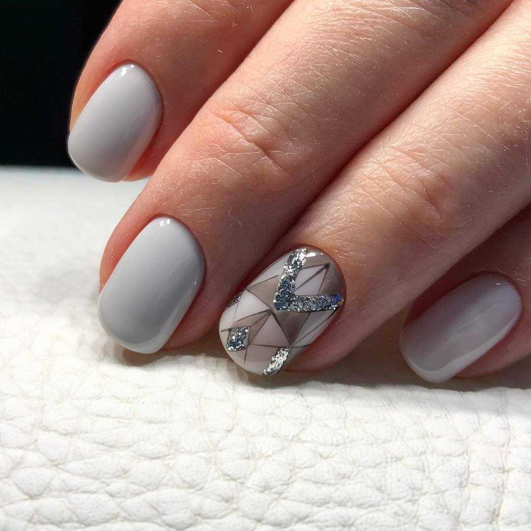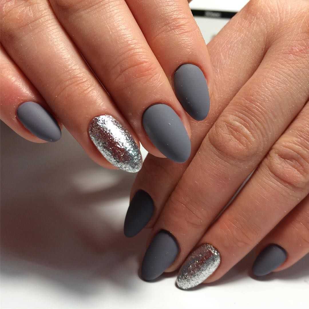 Модные идеи серого нейл-дизайна с блёстками