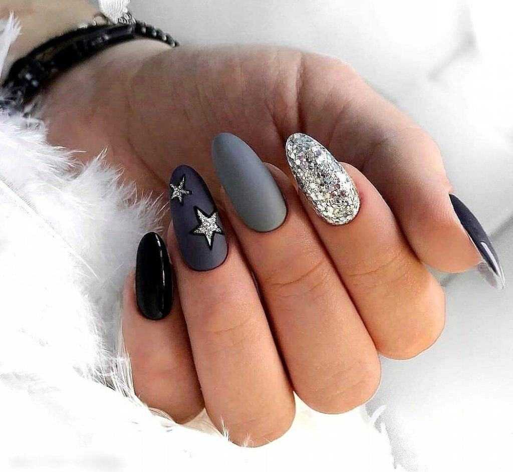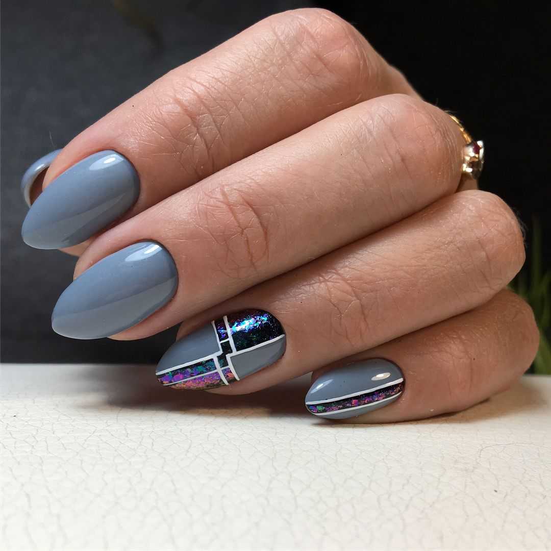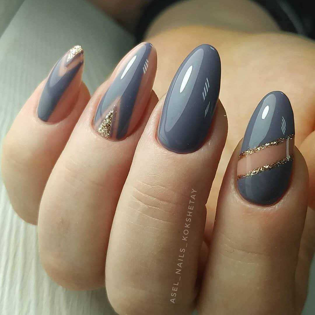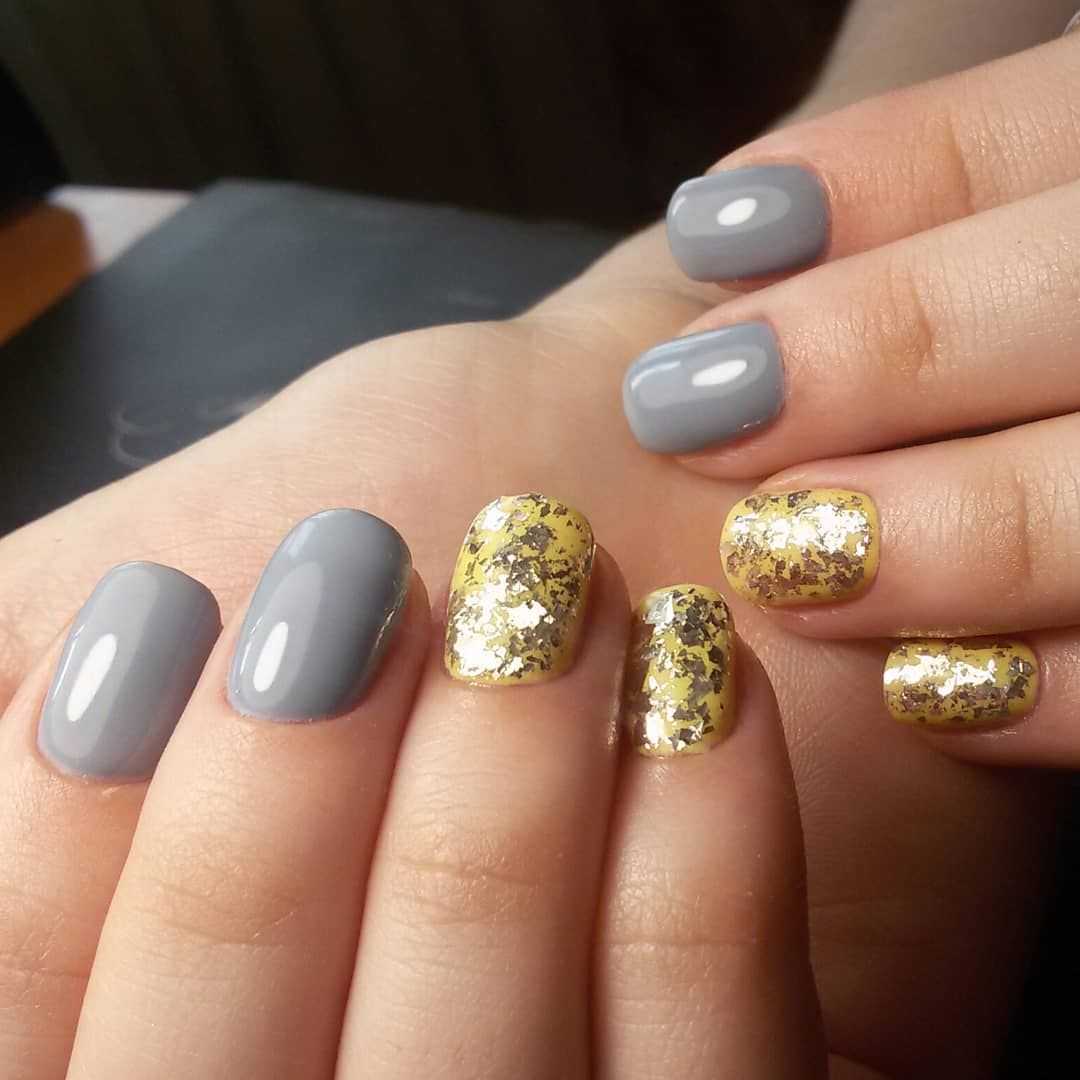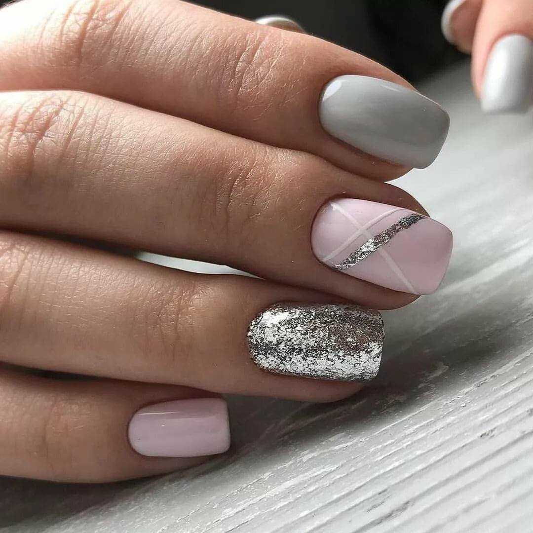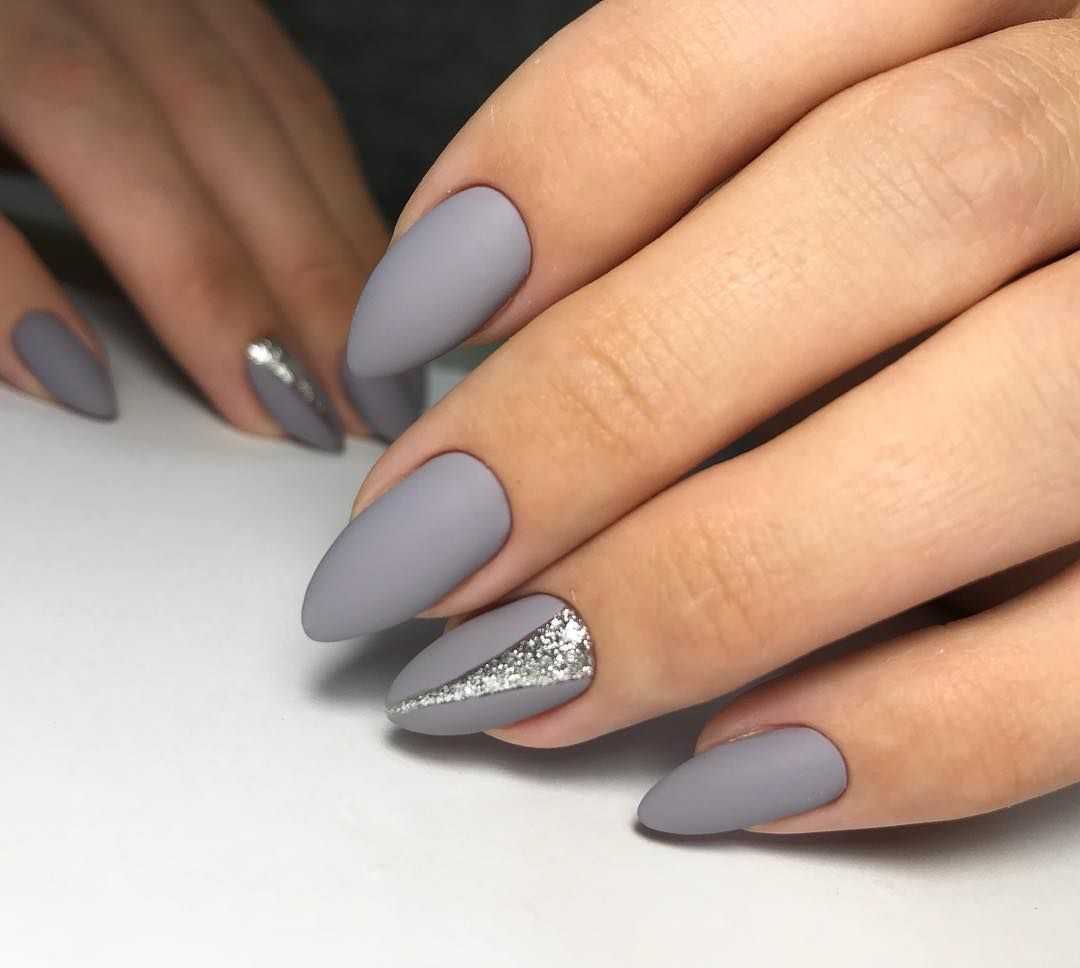 Модные идеи серого нейл-дизайна с блёстками