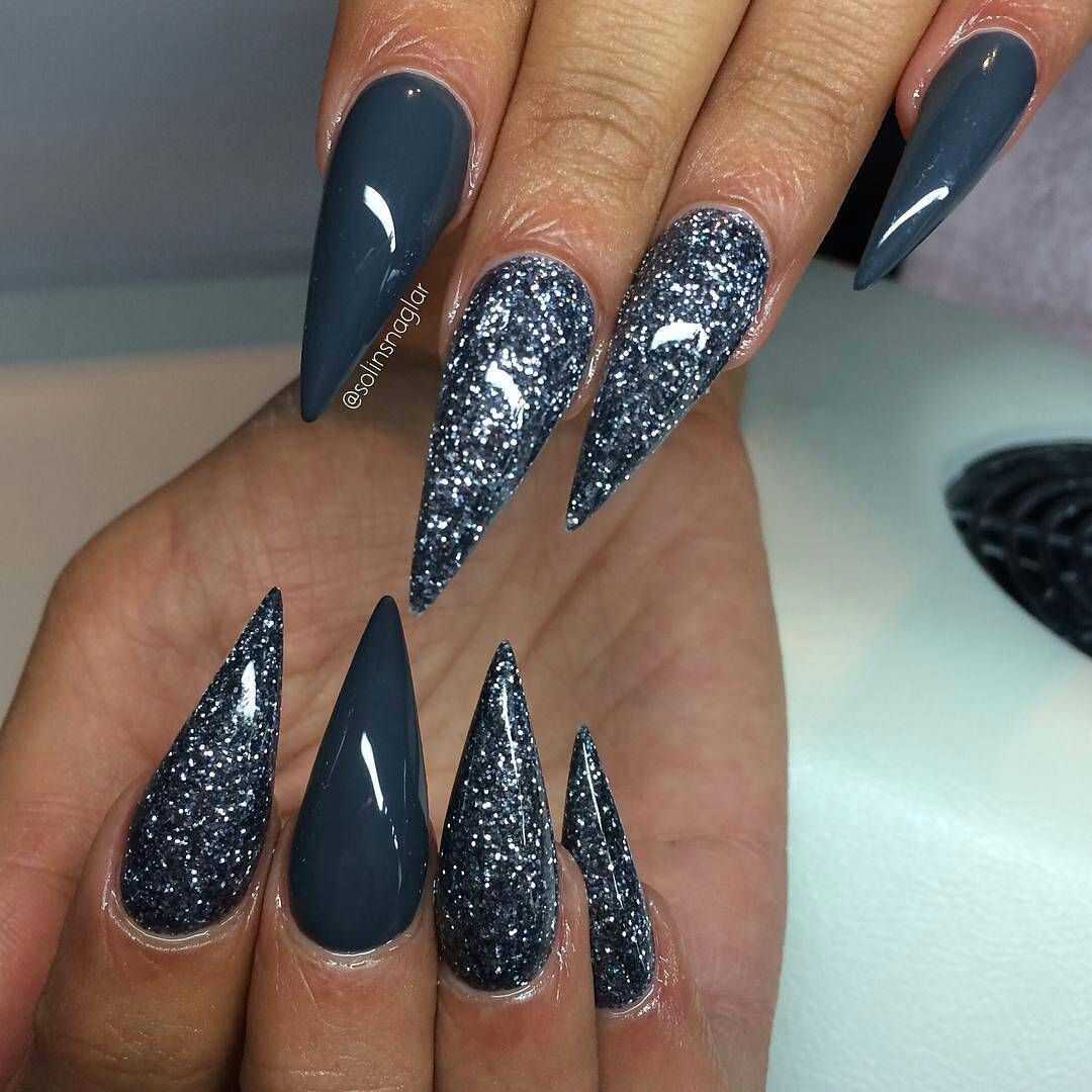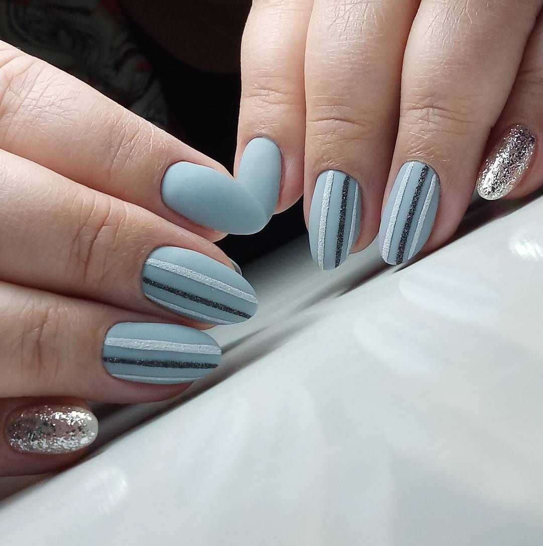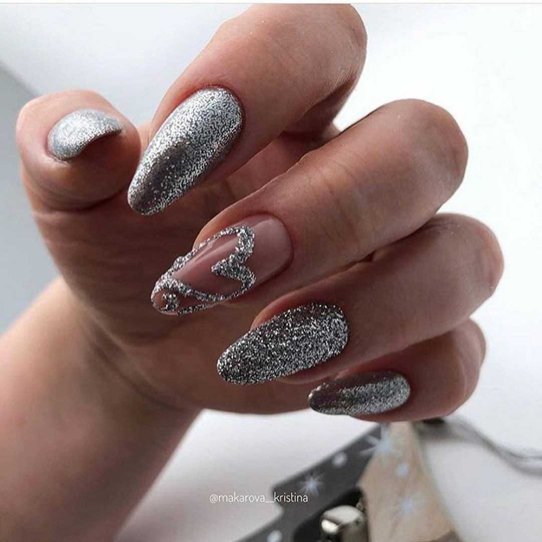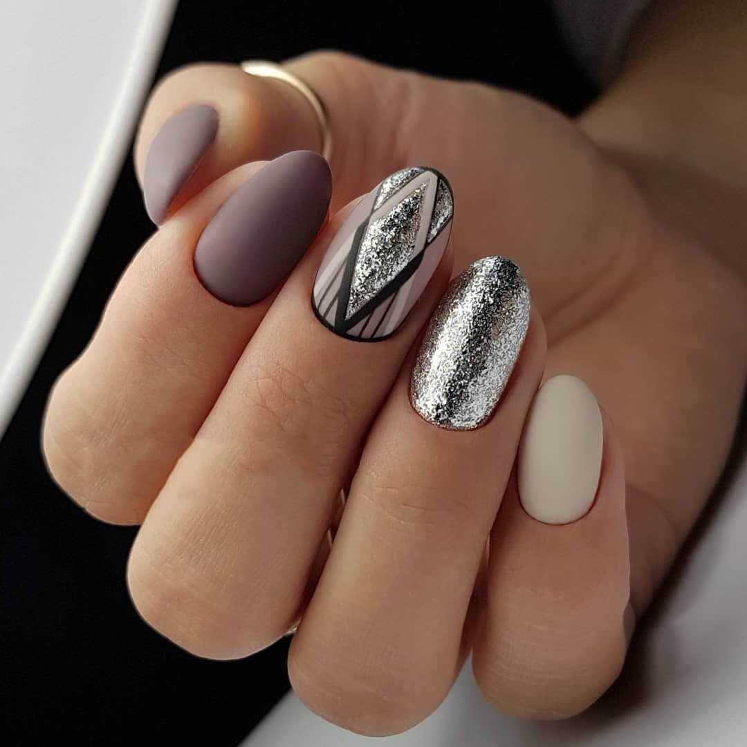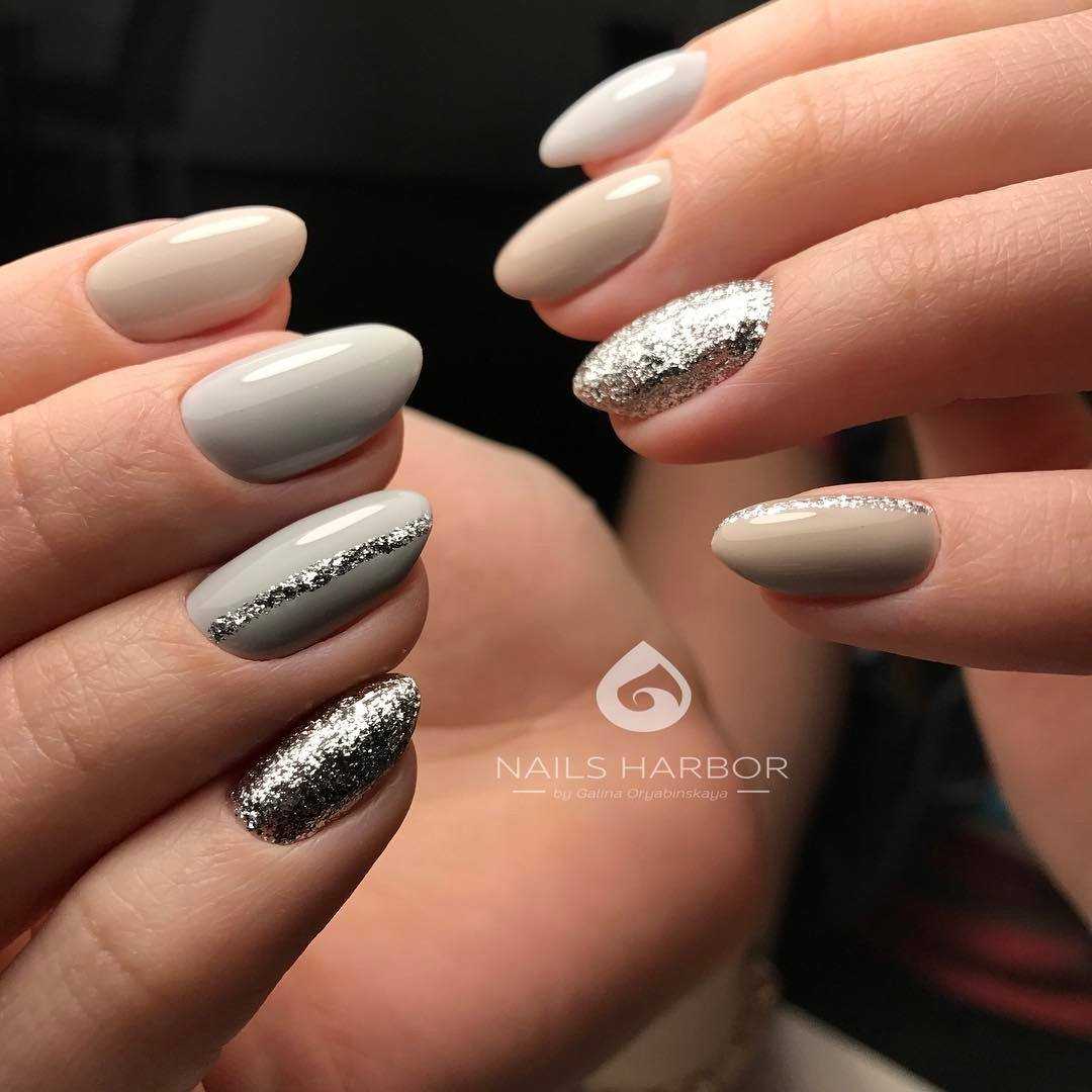 Модные идеи серого нейл-дизайна с блёстками