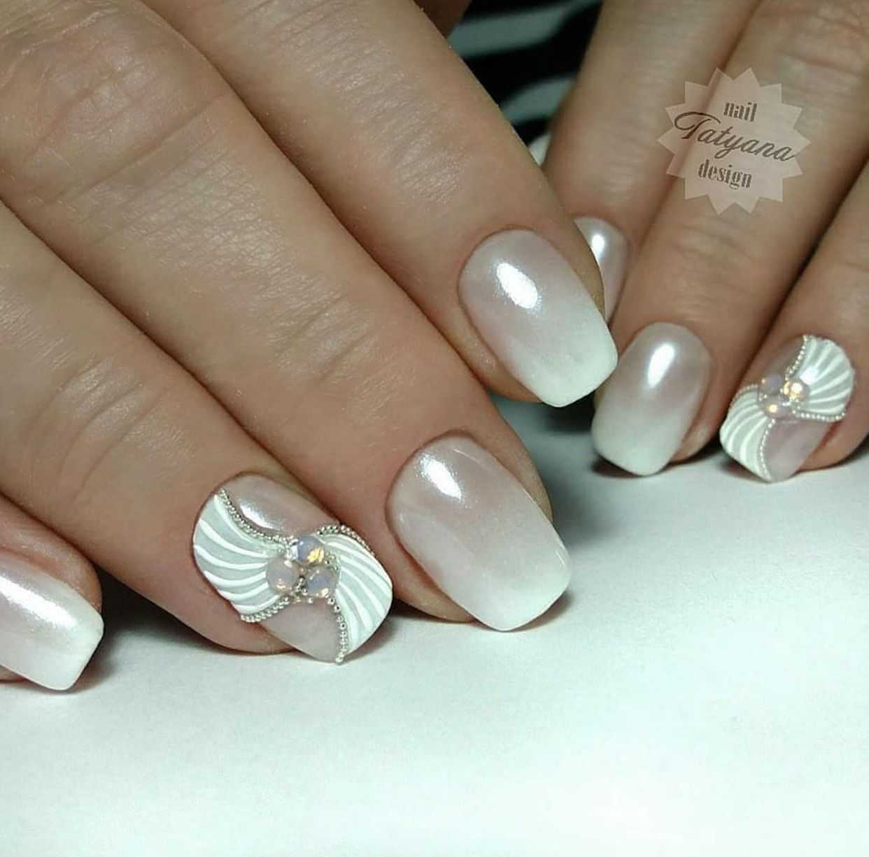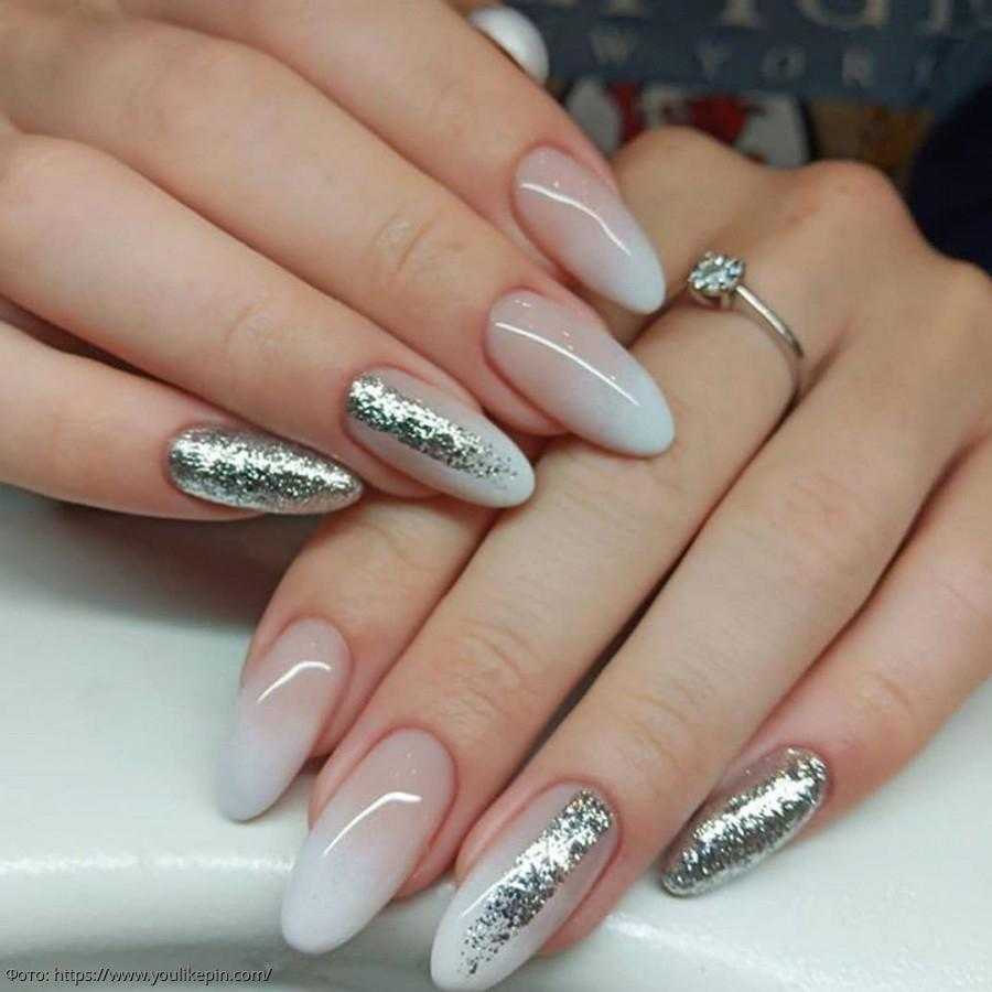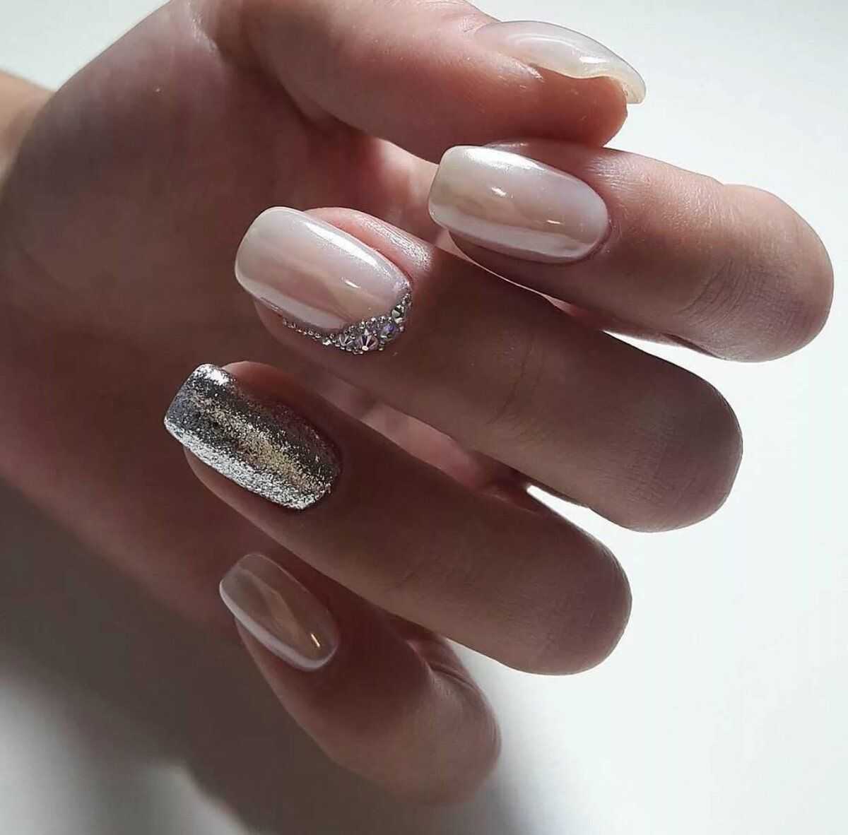 Модный молочный маникюр с блёстками – особенности оформления и стильные тренды