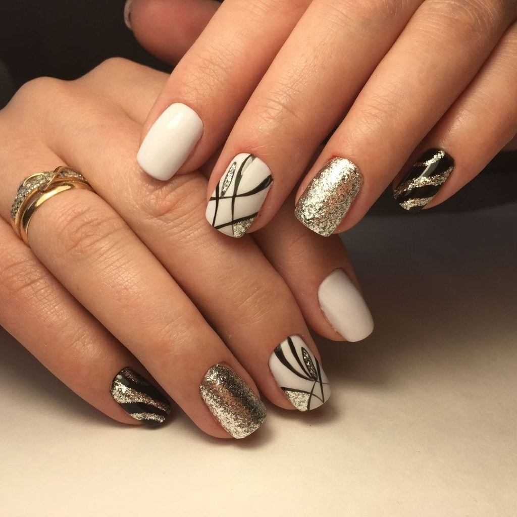 Что касается блёсток, то неизменным лидером считаются серебристые частицы. Однако всегда можно немного поэкспериментировать и украсить ноготки, например, золотистыми или чёрными сверкающими фрагментами. Среди актуальных техник неизменная классика однотонного покрытия, оригинальные вариации френча, лунный дизайн, маникюр с рисунками, стразами и многие другие предложения. Далее обо всем по порядку.
