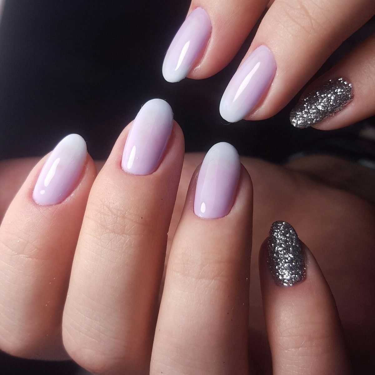 Для однотонный нейл-артов выбирайте мягкие оттенки розового, голубого цветов. Особенно красиво смотрится белый маникюр с серебряными или золотыми блестками. Это тренд последних сезонов, который очень нравится девушкам и не собирается сдавать своих позиций. Под блестящий декор отводите несколько пальцев на руке. Для этого покройте их гель-лаком с блестками в несколько слоев, воспользуйтесь втиркой, пайетками, сухими блестками.