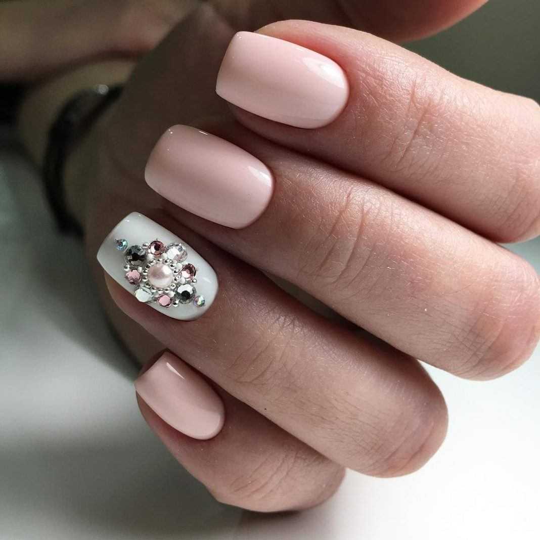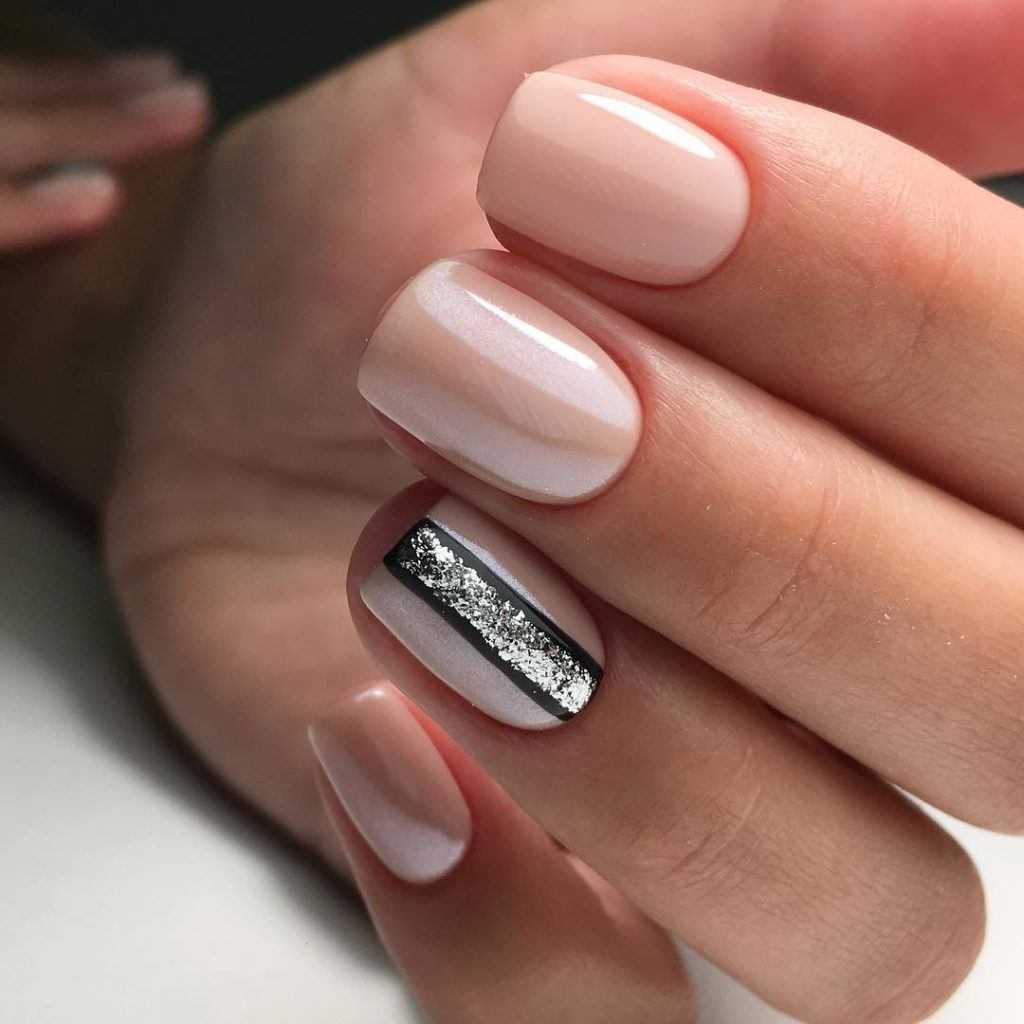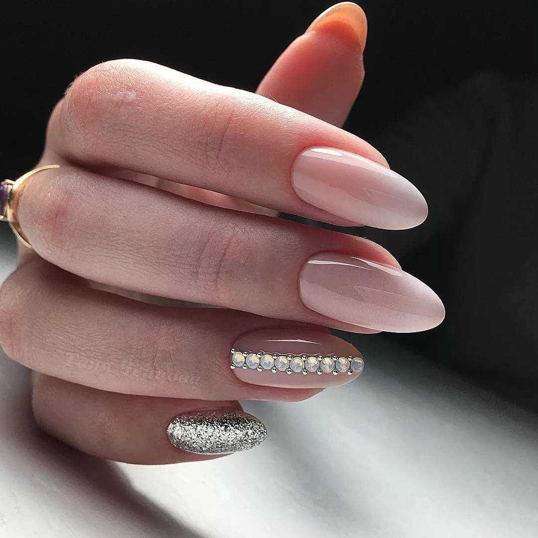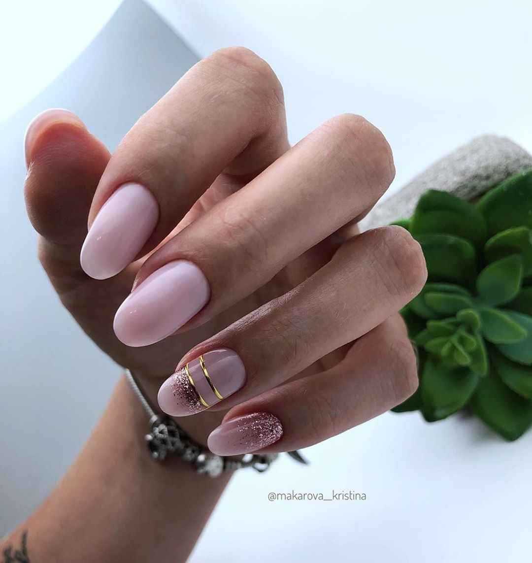 #1 Нежный однотонный маникюр с блестками