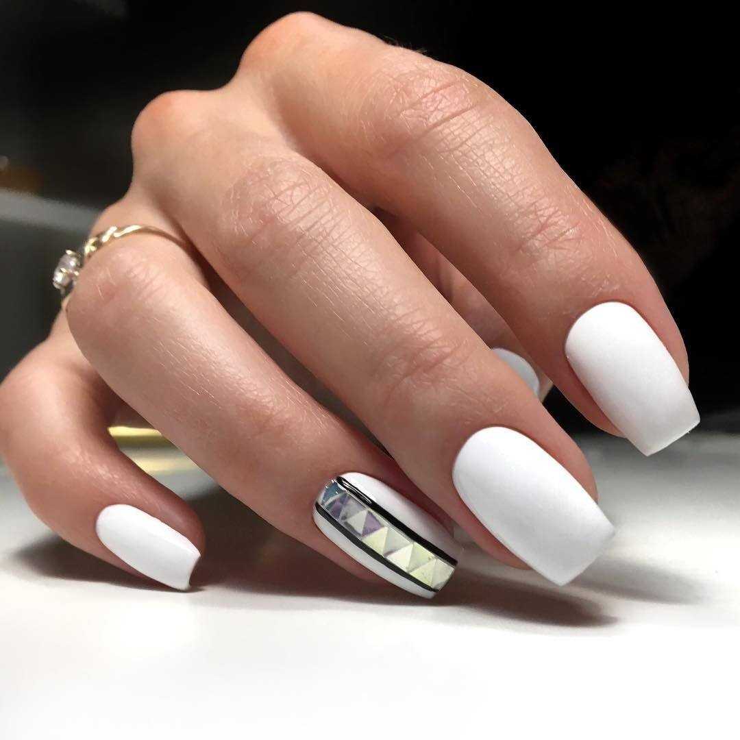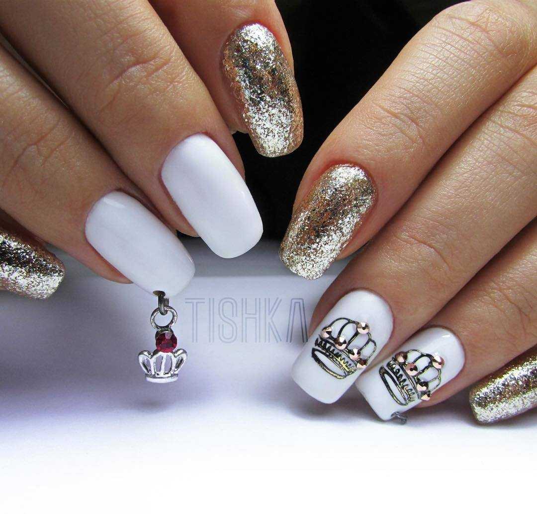 Первым в этом списке стоит «королевский» ноготь, предполагающий инкрустацию стразами на всю ногтевую пластину одного из пальцев. Выглядит такой маникюр очень эффектно и дорого. Именно то, что нужно смелым и уверенным в себе женщинам.