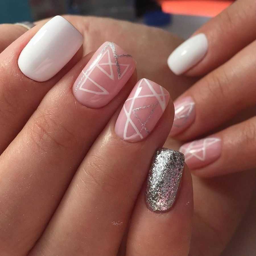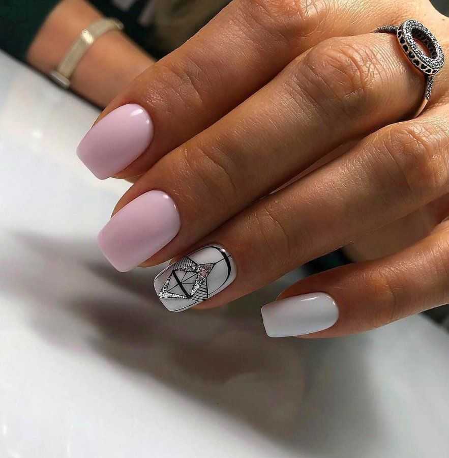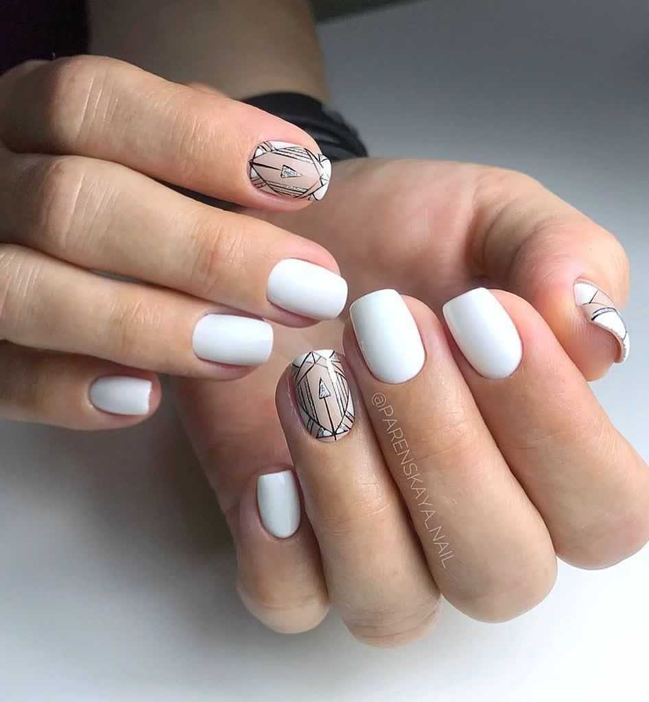 Модный маникюр с использованием геометрии станет отличным дополнением повседневного или праздничного дизайна ногтей. В этом дизайне важен выбранный фон. Поэтому сначала необходимо правильно выбрать оттенок краски для основы. Но дополнительные цвета должны быть контрастными, чтобы в результате получился красивый геометрический узор. Золотые блестки можно использовать для выделения контура рисунка, придавая маникюру яркости и оригинальности.