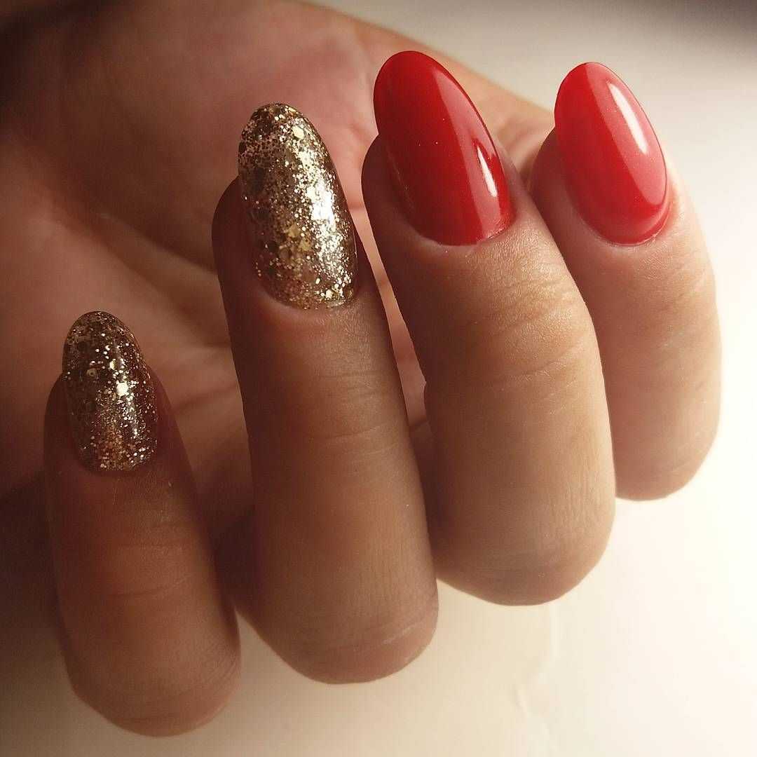 #4 Красный маникюр с золотыми блестками