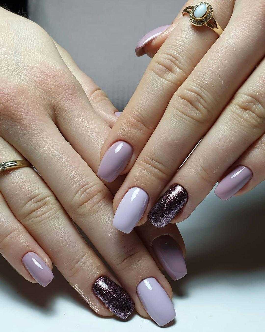 Хотите, чтобы дизайн ногтей всегда вписывался в ваши образы, тогда выполните однотонный маникюр. Сплошное покрытие ногтей одним цветом – простое и бюджетное решение для большинства женщин. Основной цвет гель-лака можно выбрать абсолютно любой. Исключение составляют только едва заметные пыльные оттенки. Их попросту не будет заметно на ногтях, а при соседстве с серебряным глиттером особенно.
