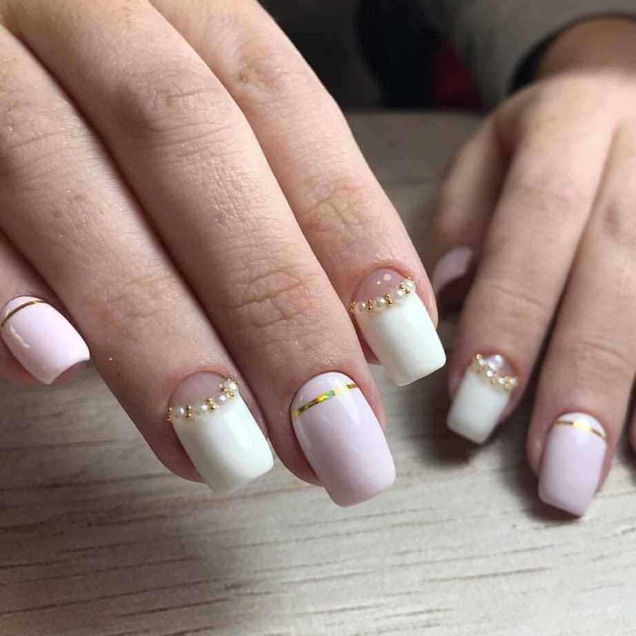 Мода на элементы нейл-арта, напоминающие драгоценные камни, пошла еще дальше. Еще одна актуальная уловка — использовать бусины, имитирующие жемчуг. Украшайте ими лунки или кончики ногтей и выбирайте бежевый, бледно-розовый, прозрачный или любой яркий, но всегда с матовой текстурой в качестве базового лака для создания самого модного нейл-арта.
