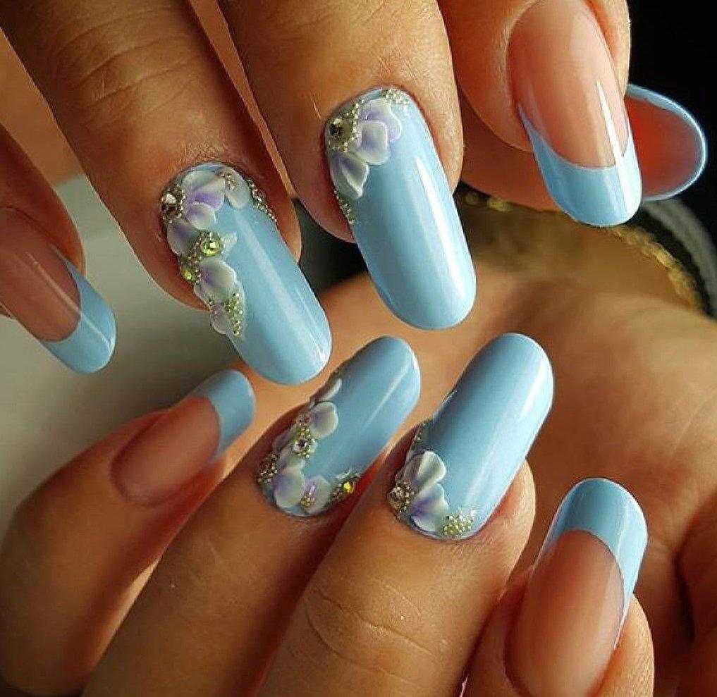 Маникюр френч голубой