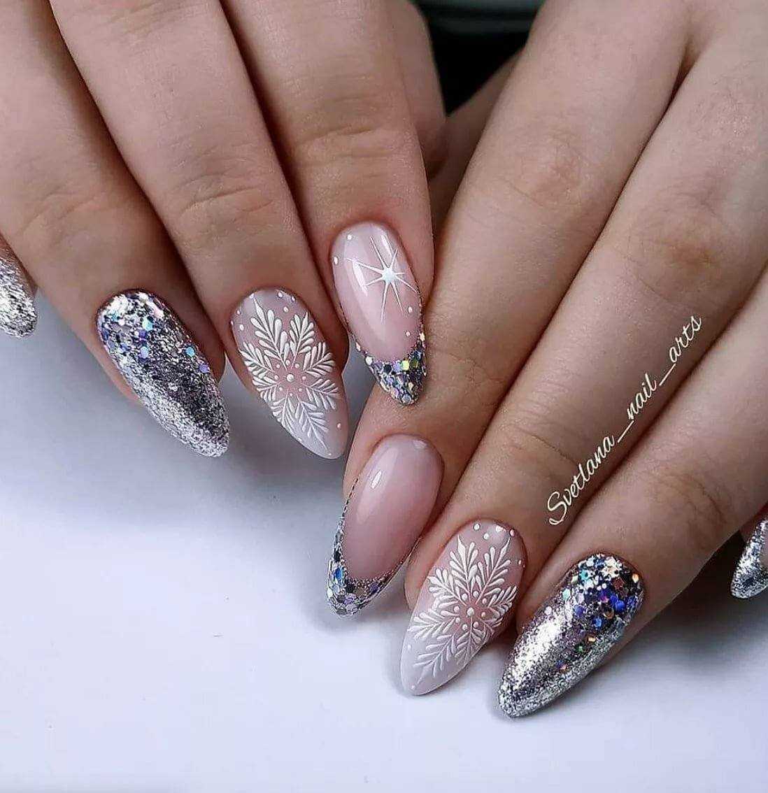 Тренды дизайна маникюра с блестками 2022