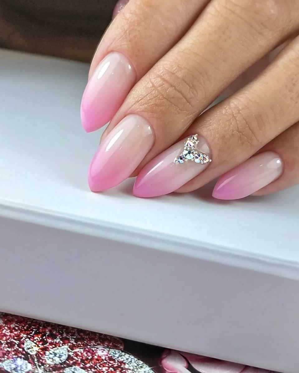 Стразы на розовом подчеркивают игривость и стиль. Пробуйте разные расположения и дополнения для того, чтобы маникюр гармонировал с вашим образом.