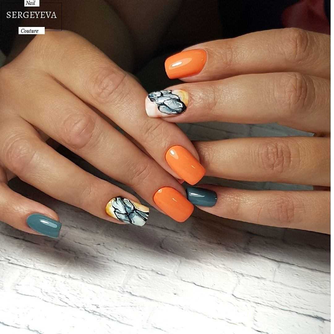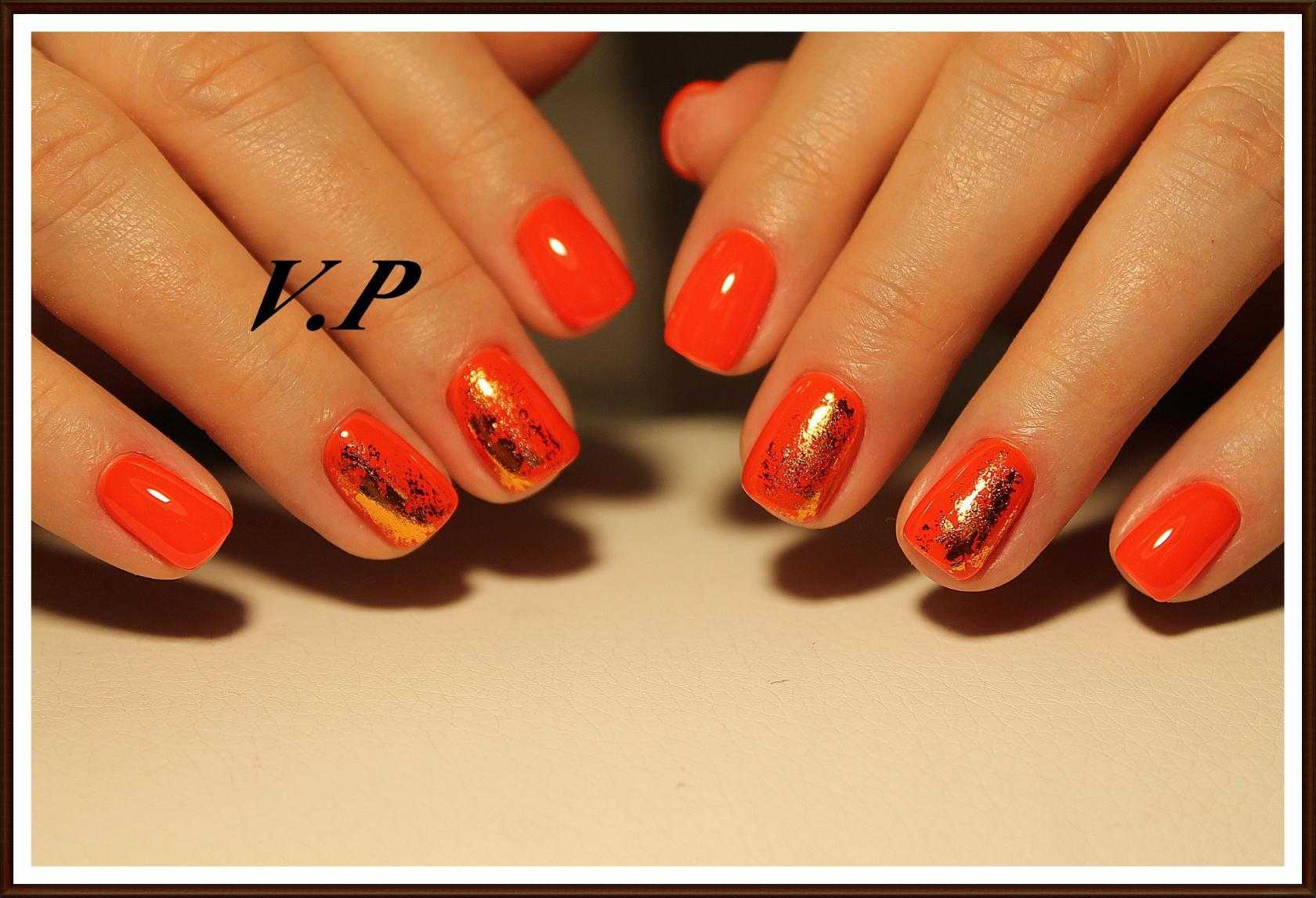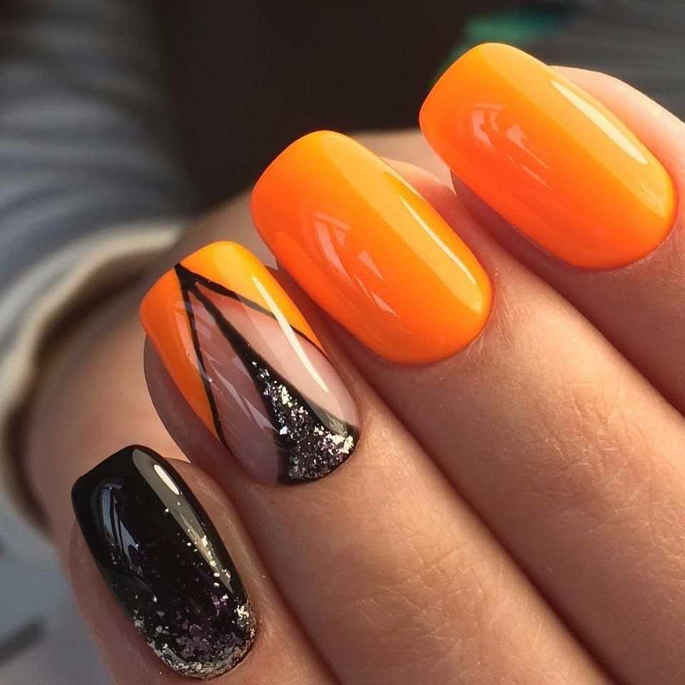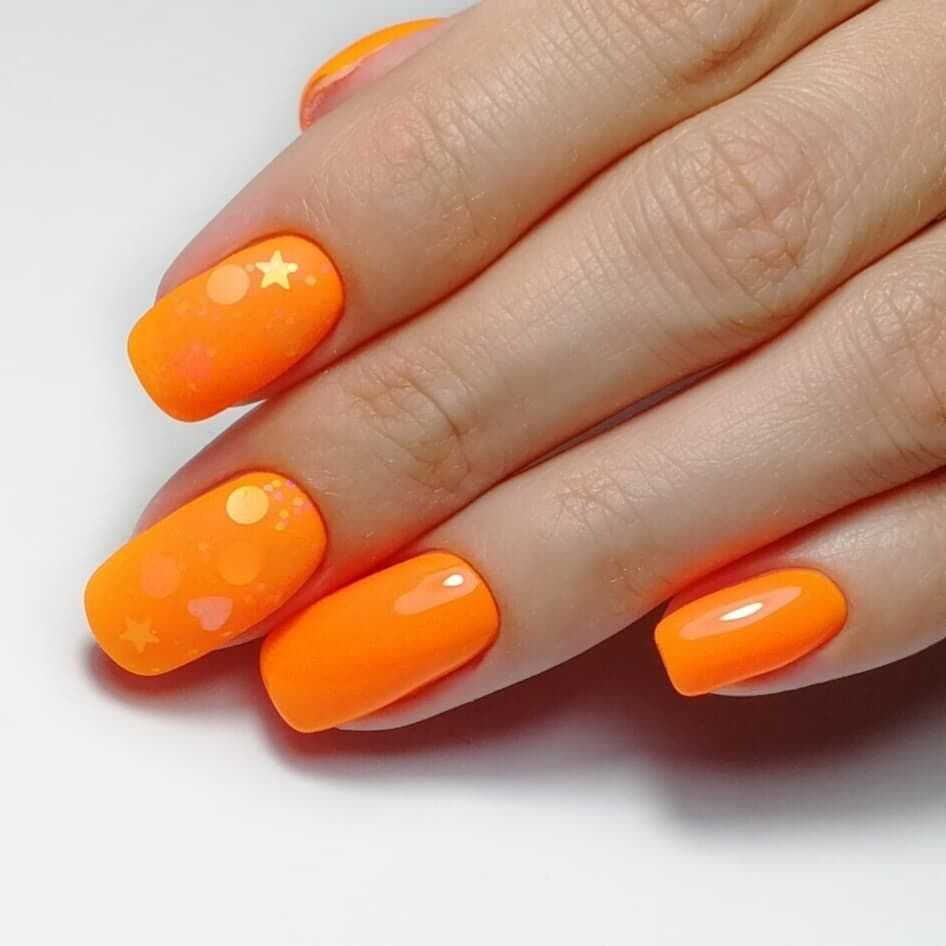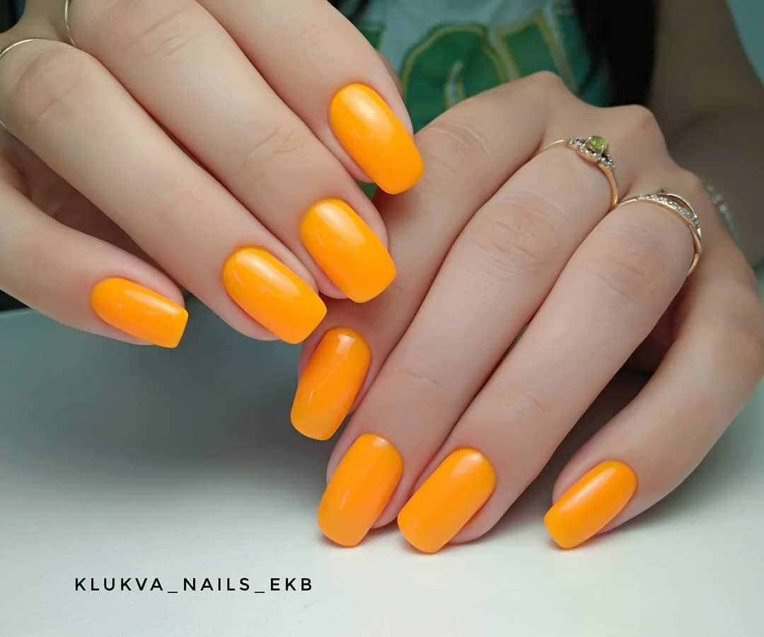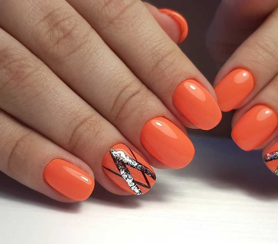 Модный оранжевый маникюр на короткие ногти