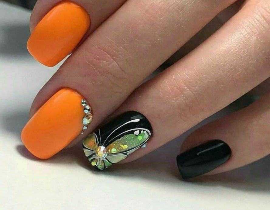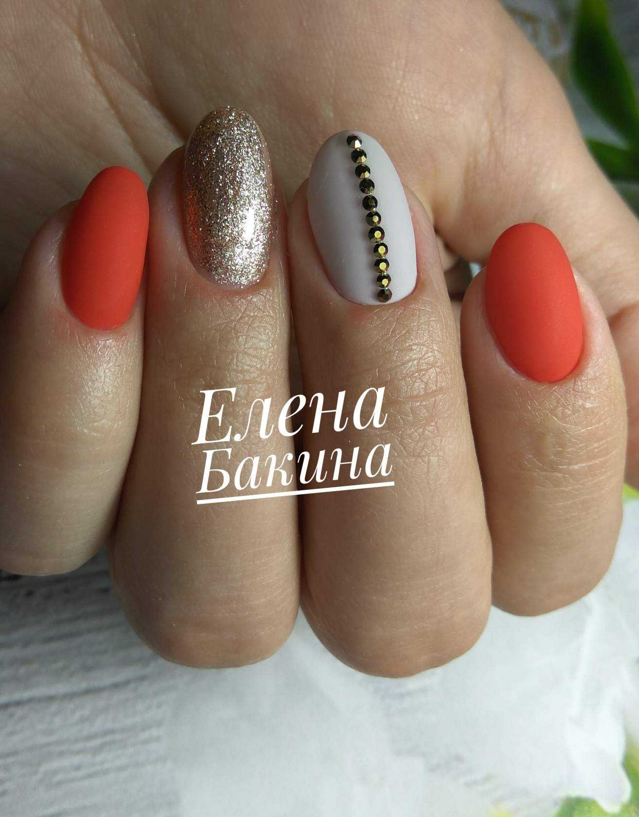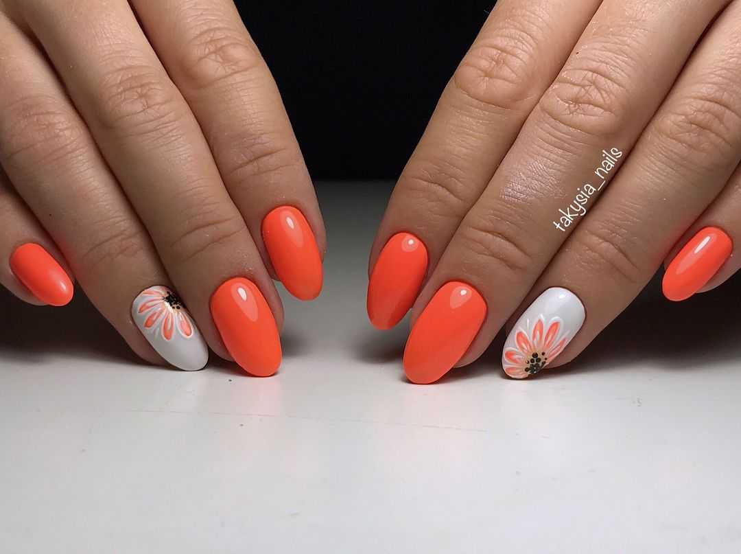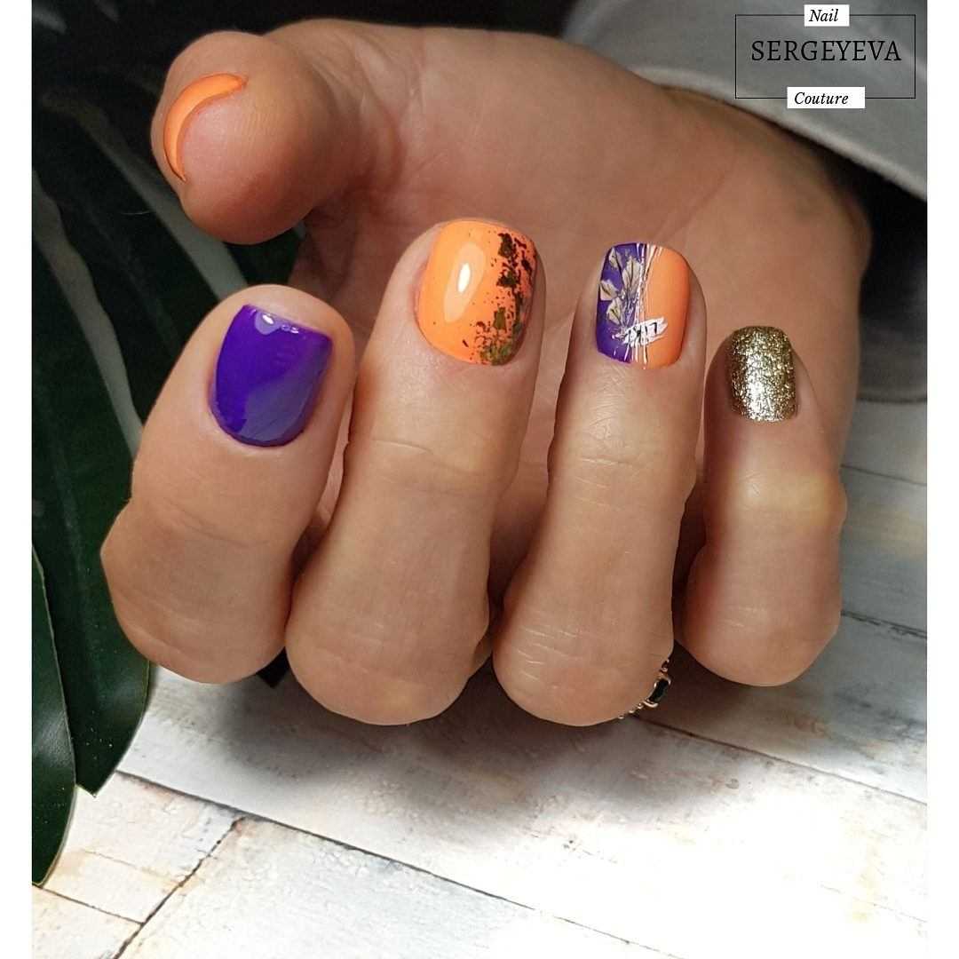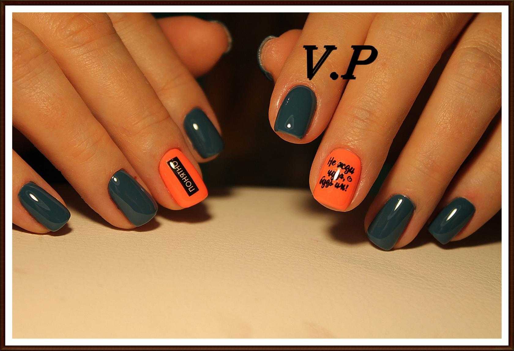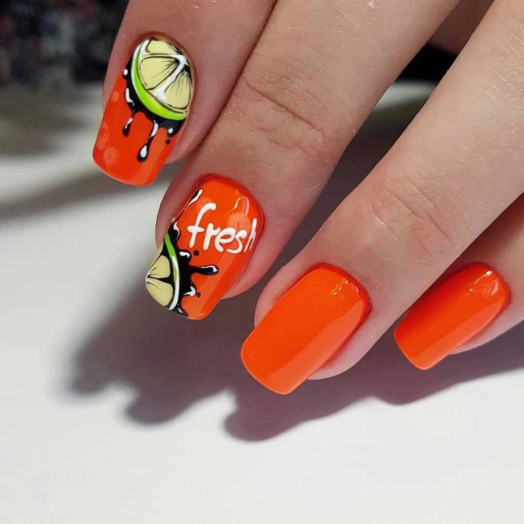 Модный оранжевый маникюр на короткие ногти
