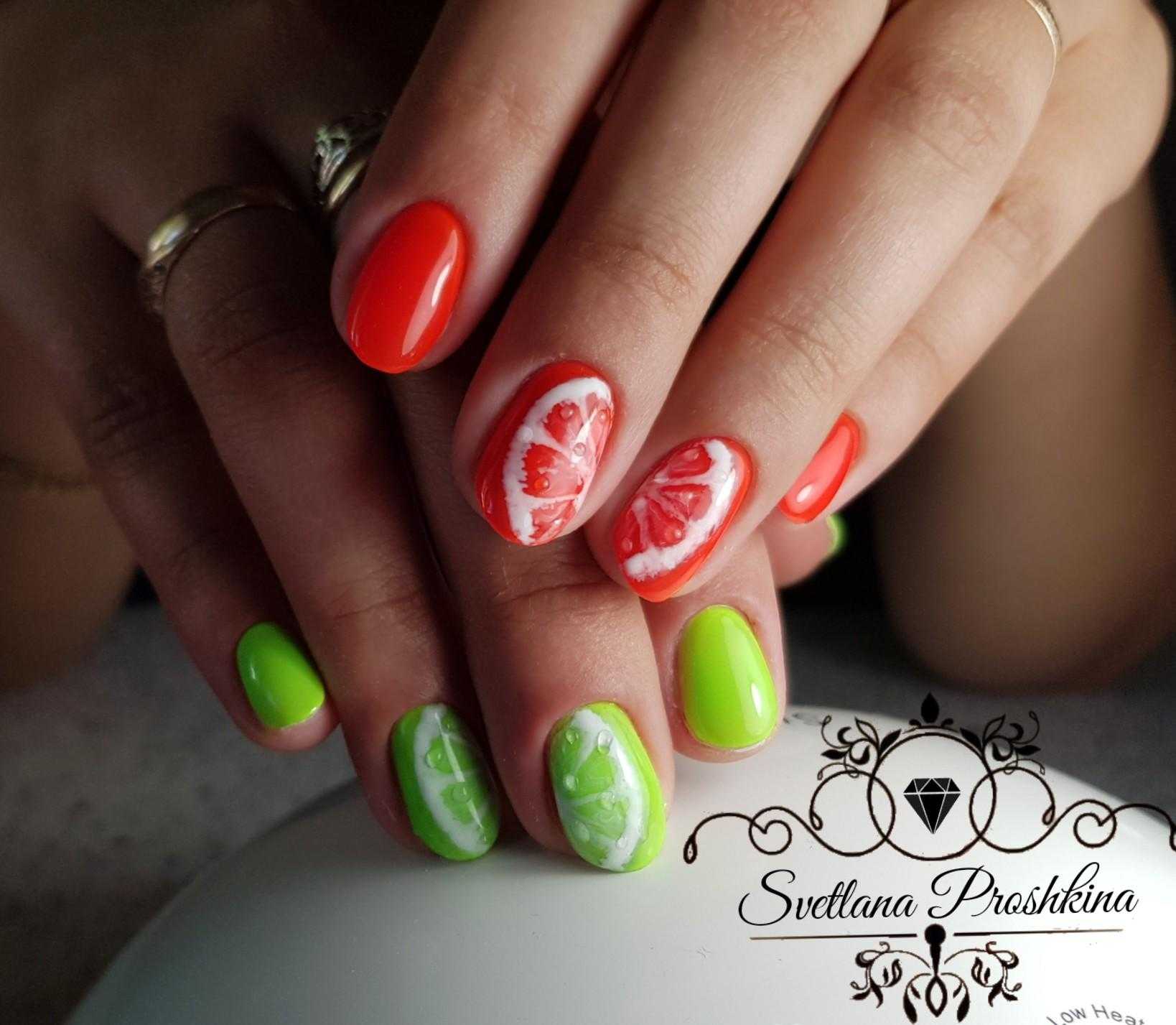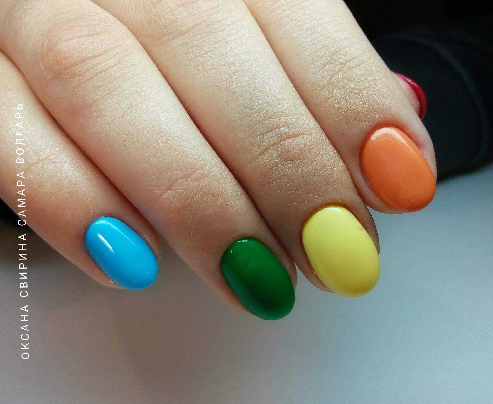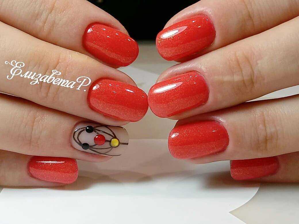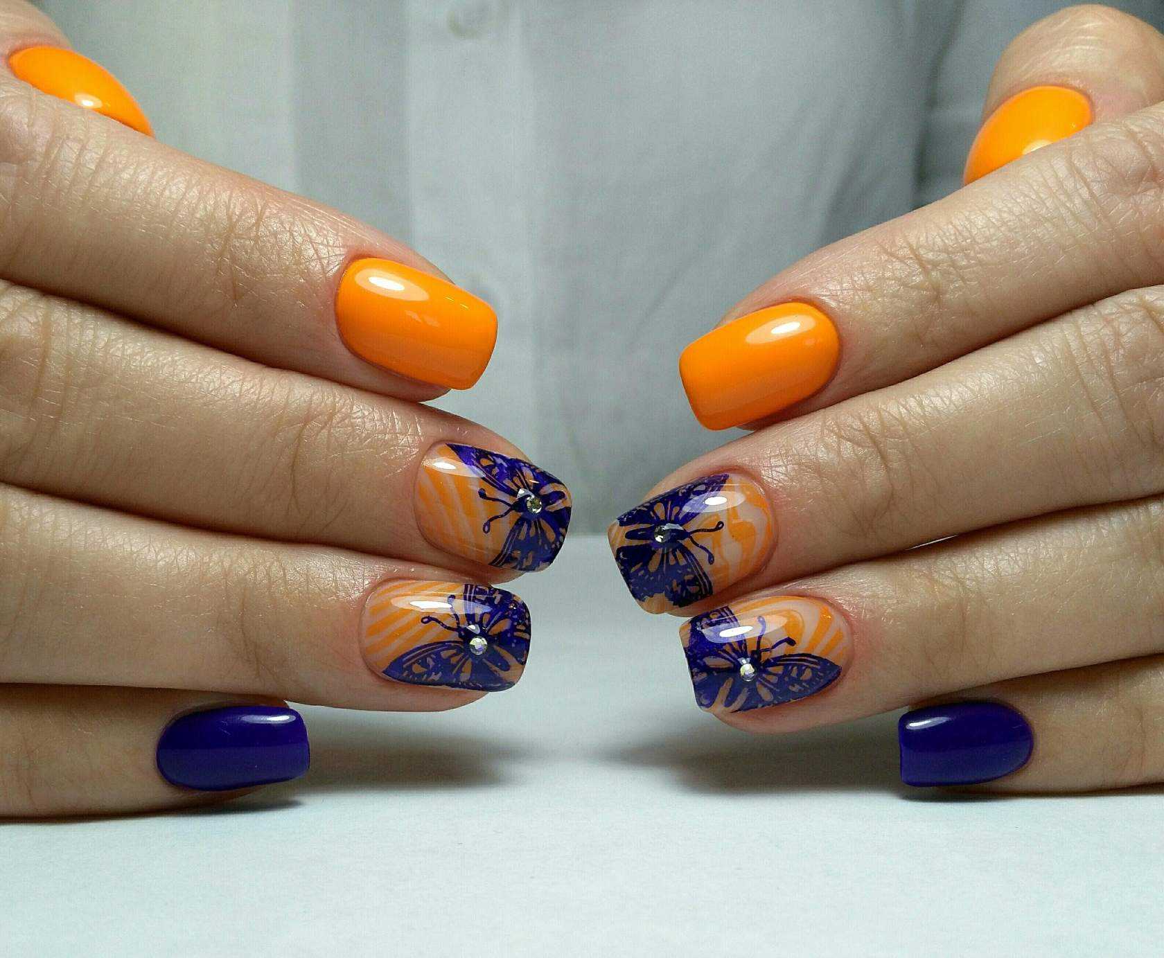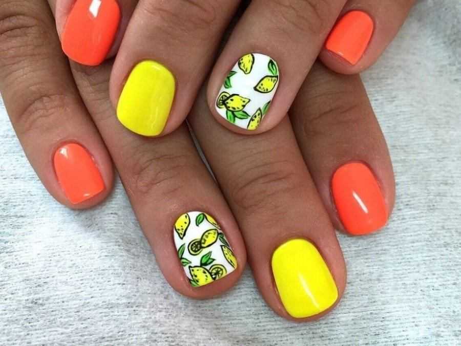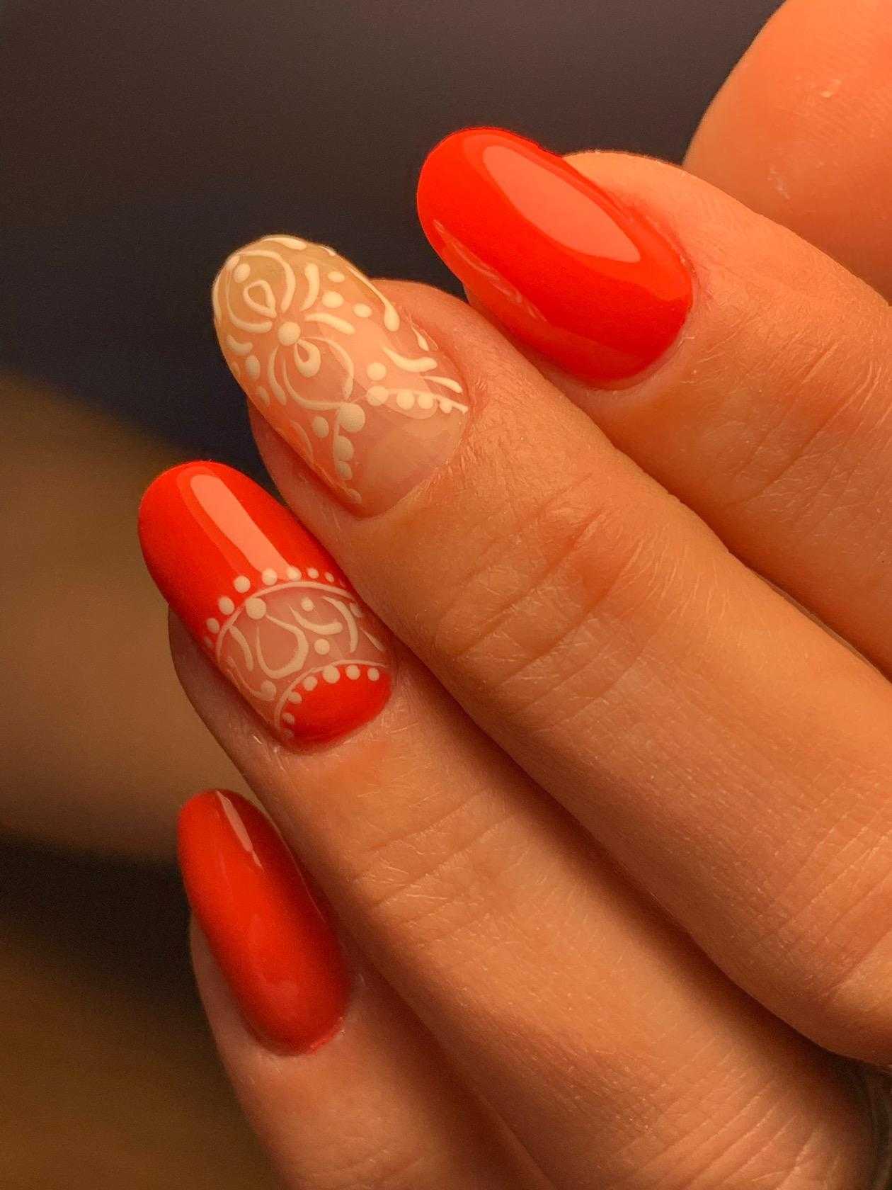 Модный оранжевый маникюр на короткие ногти