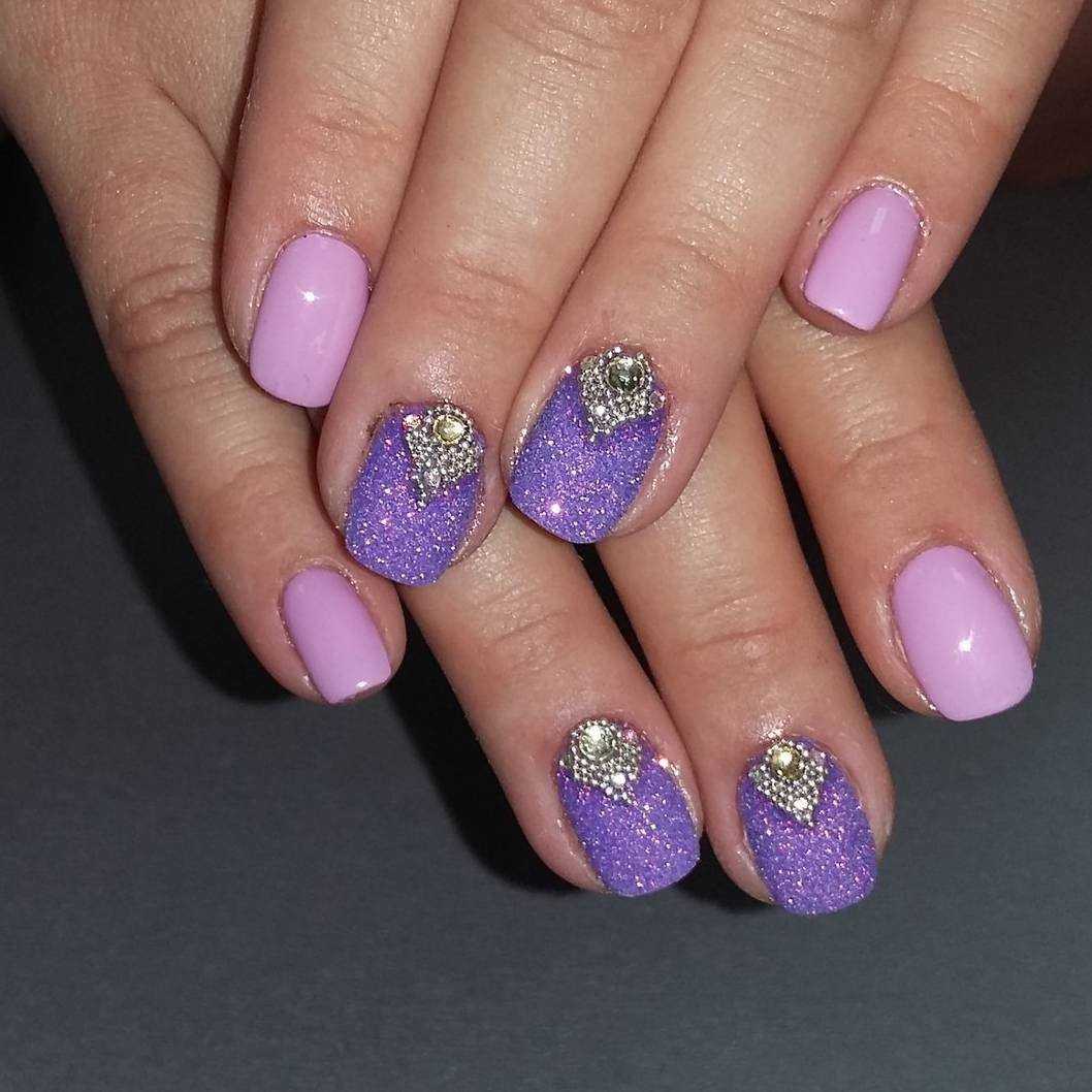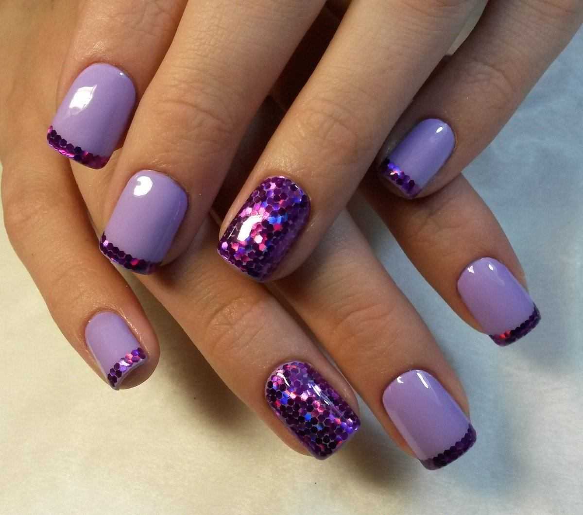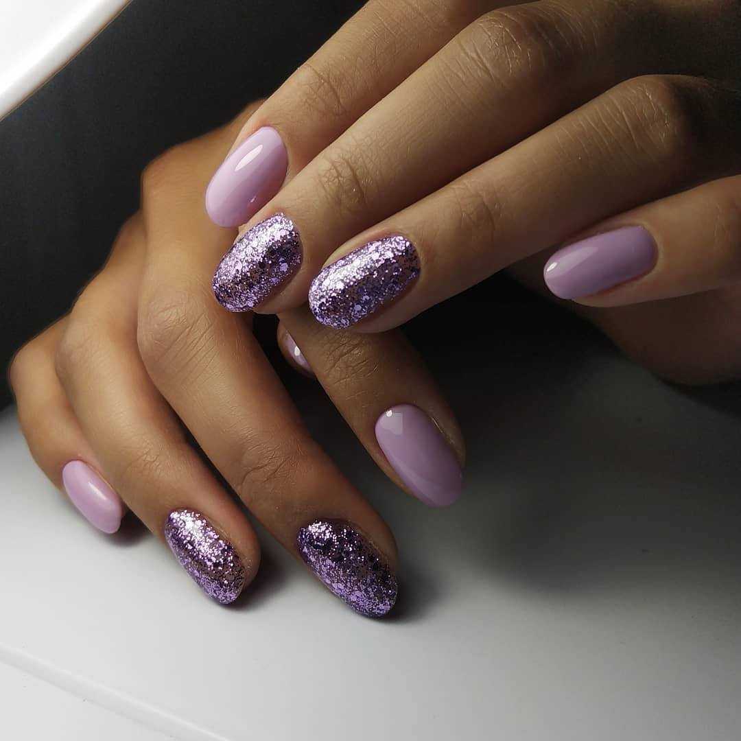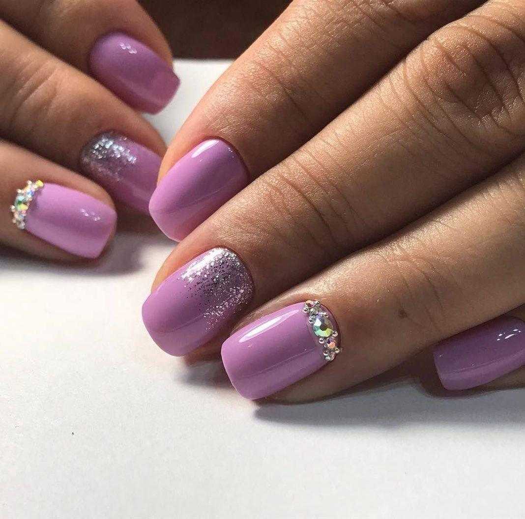 Маникюр сиреневый с блестками на короткие ногти