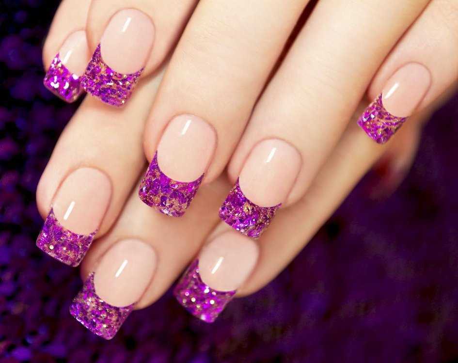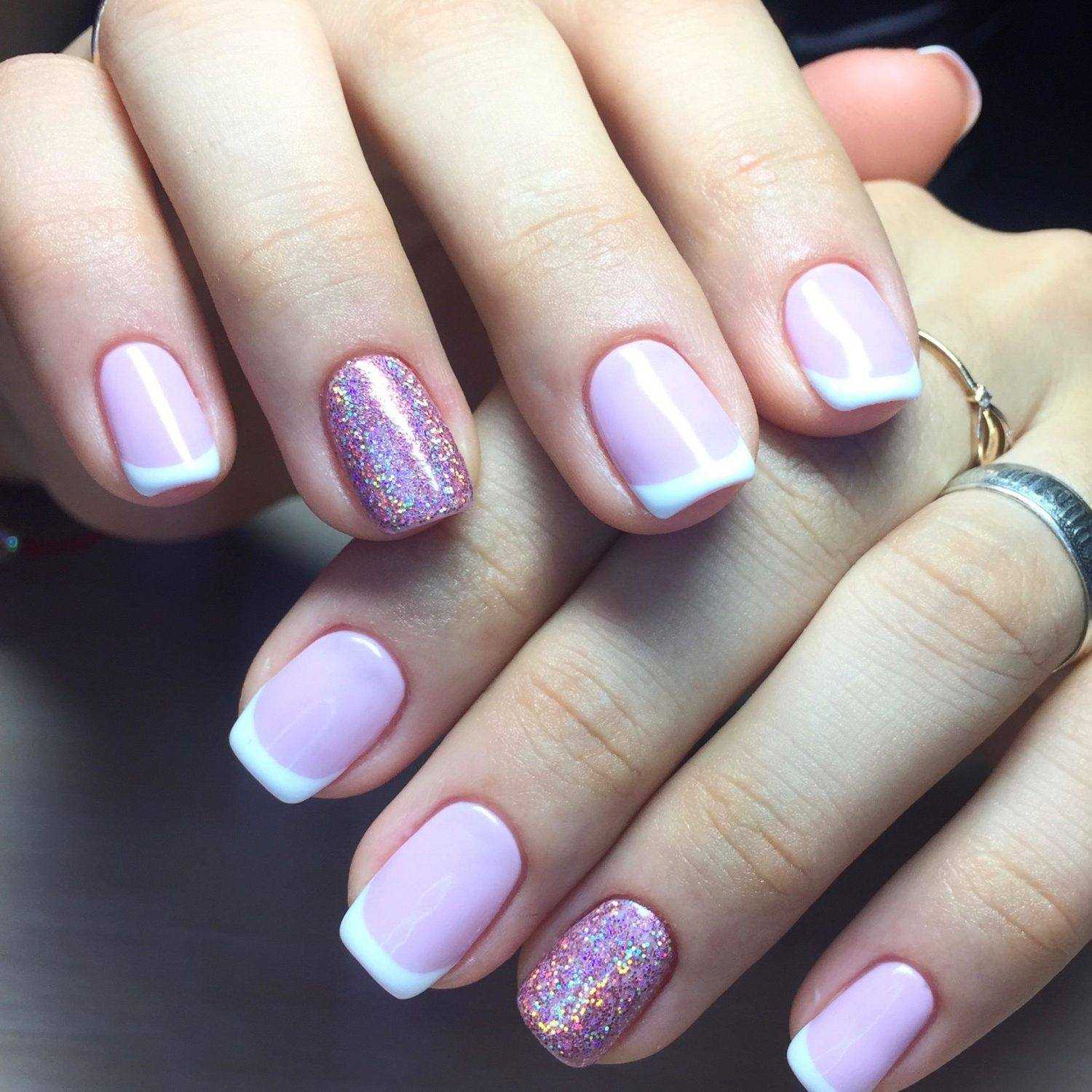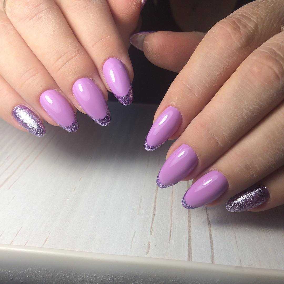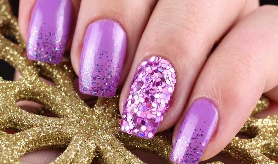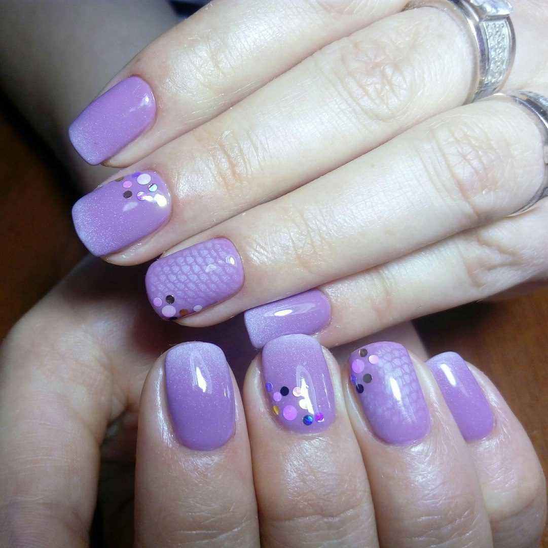 Маникюр сиреневый с блестками на короткие ногти