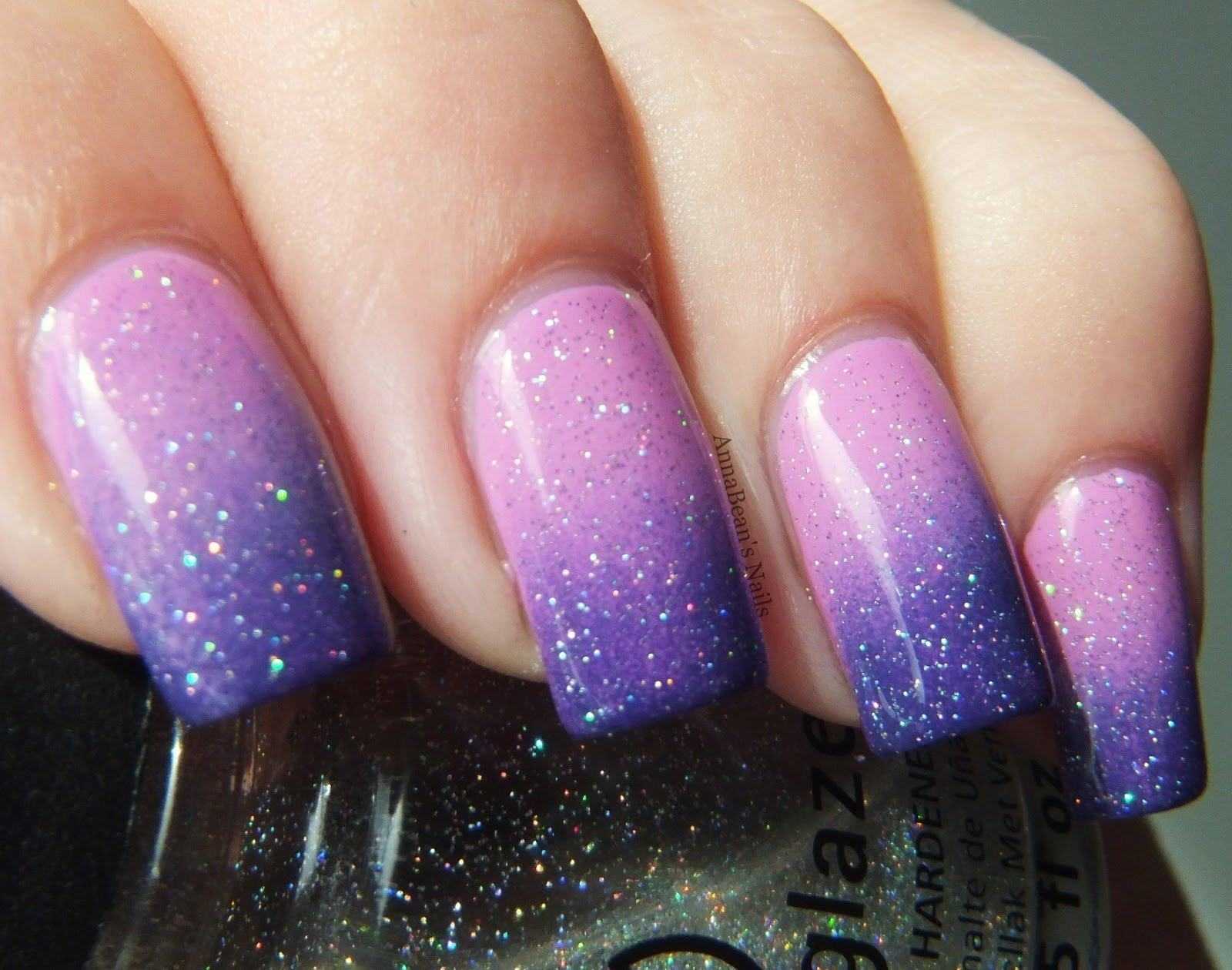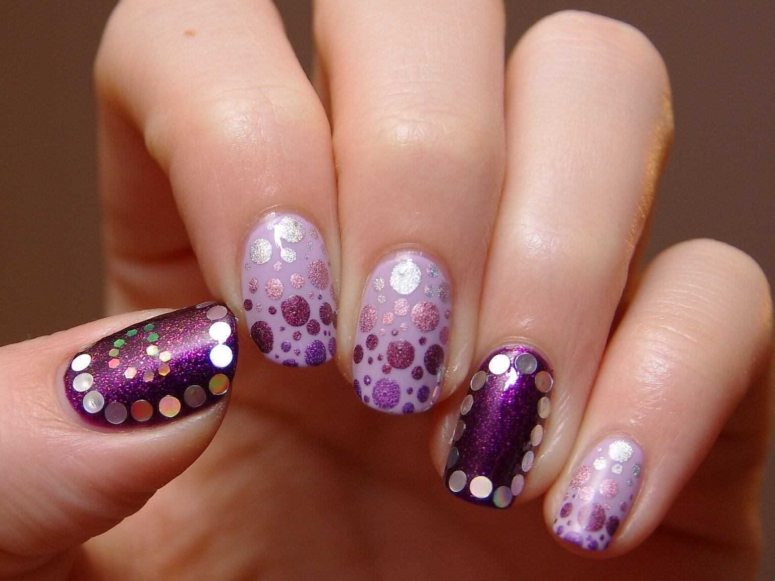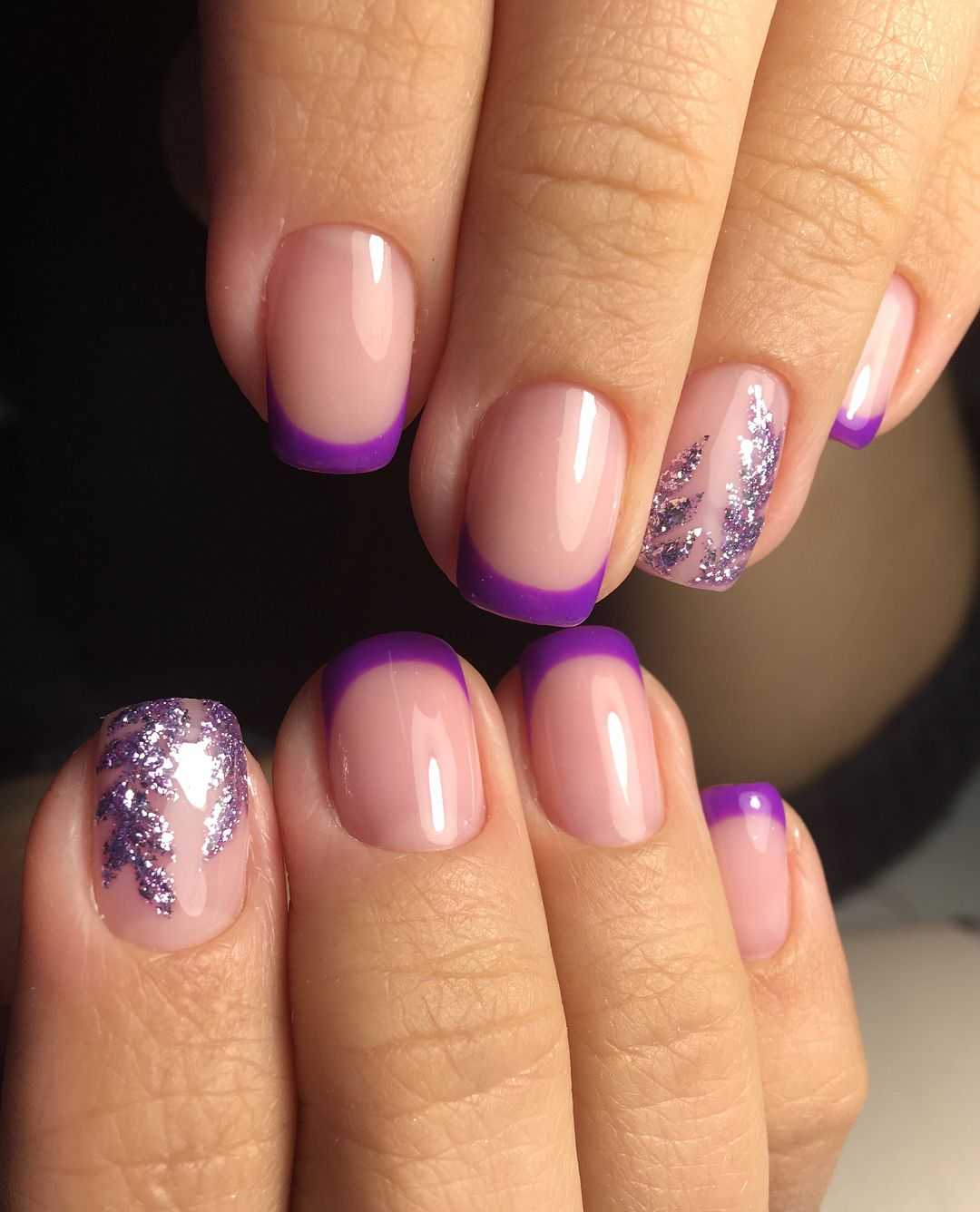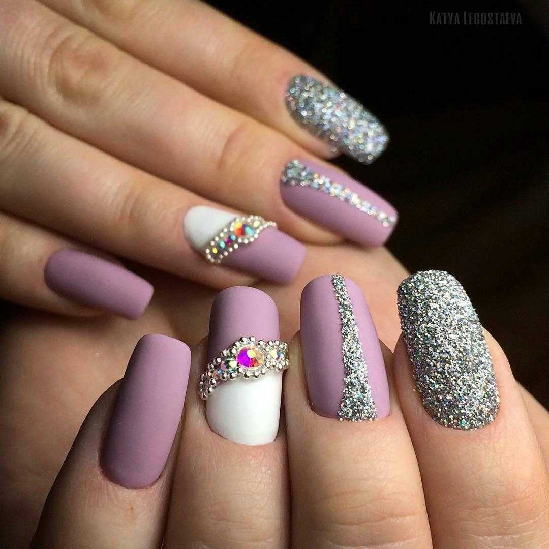 Маникюр сиреневый с блестками на короткие ногти